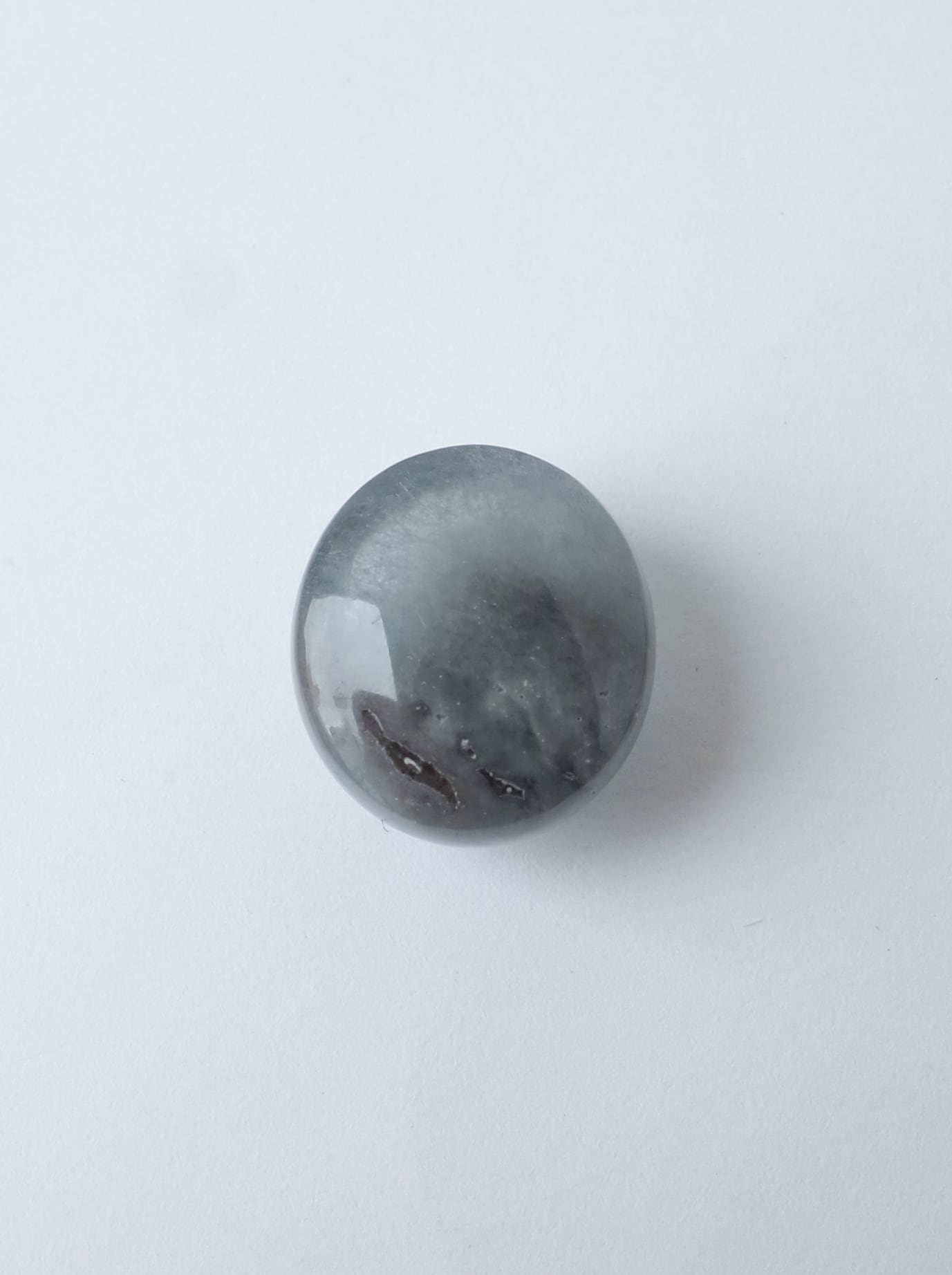 ふわふわとしたインクルージョンと優しい色合いが魅力のアンフィボールインクォーツです。アンフィボールとは「角閃石」のことで、綿毛状、柱状など様々な形状がありますが、中でもこのブルーグレーのタイプは流通量が少なく、独特の色合いと優しい雰囲気が人気の天然石です。