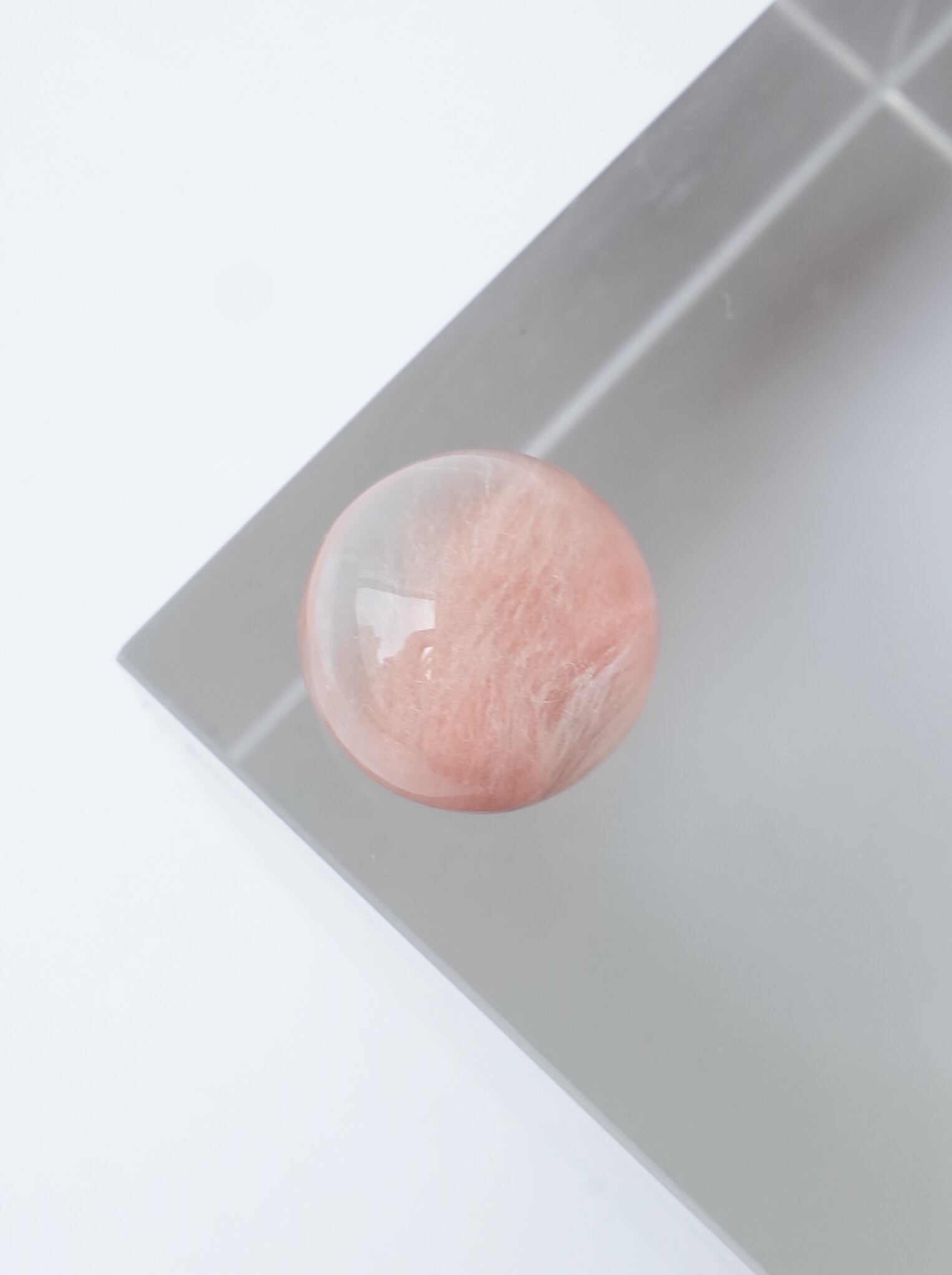 ふわふわとしたインクルージョンと優しい色合いが魅力のアンフィボールインクォーツです。アンフィボールとは「角閃石」のことで、綿毛状、柱状など様々な形状がありますが、中でもこの細い繊維状のタイプは別名「ラビットヘアルチル」として親しまれています。キラキラ反射したり、キャッツアイ効果が見られたりと、沢山の魅力を秘めた天然石です。