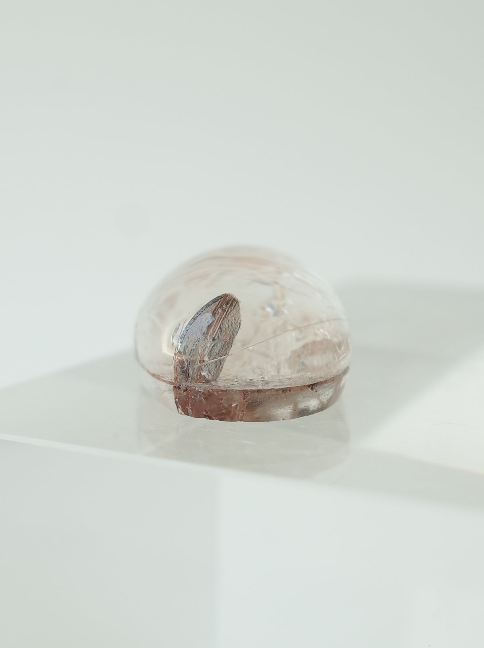 「マイカインルチルクォーツ」とは、針状のルチルと光沢を帯びた雲母(マイカ)が重なるように内包された、珍しいタイプのルチルクォーツです。