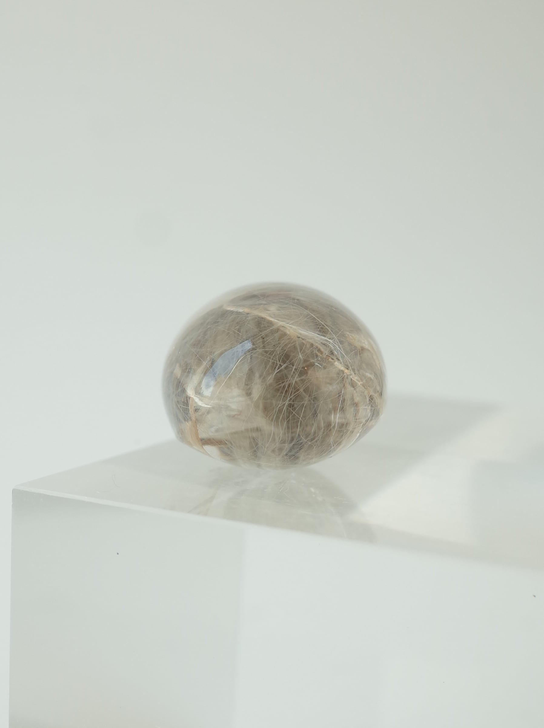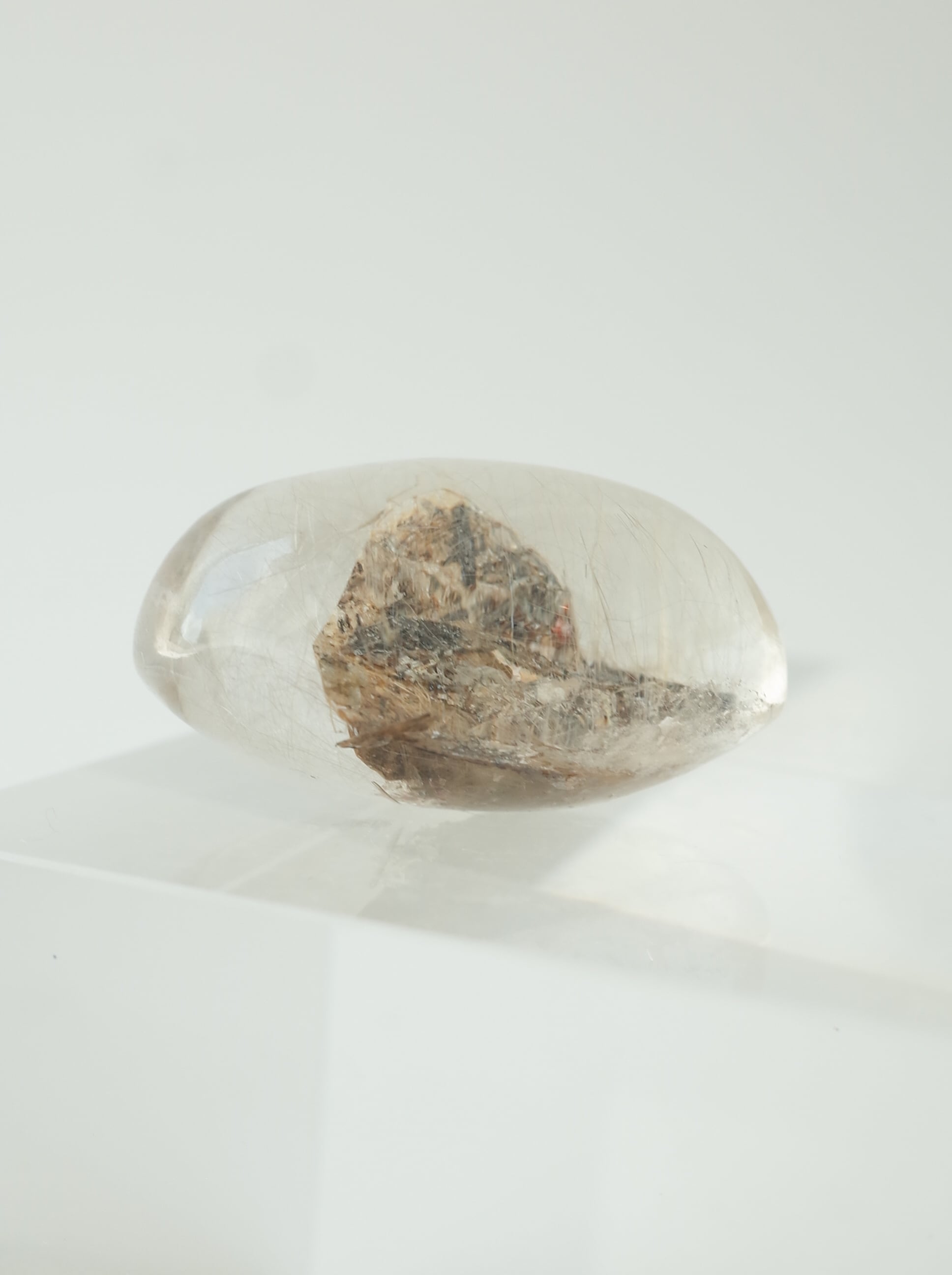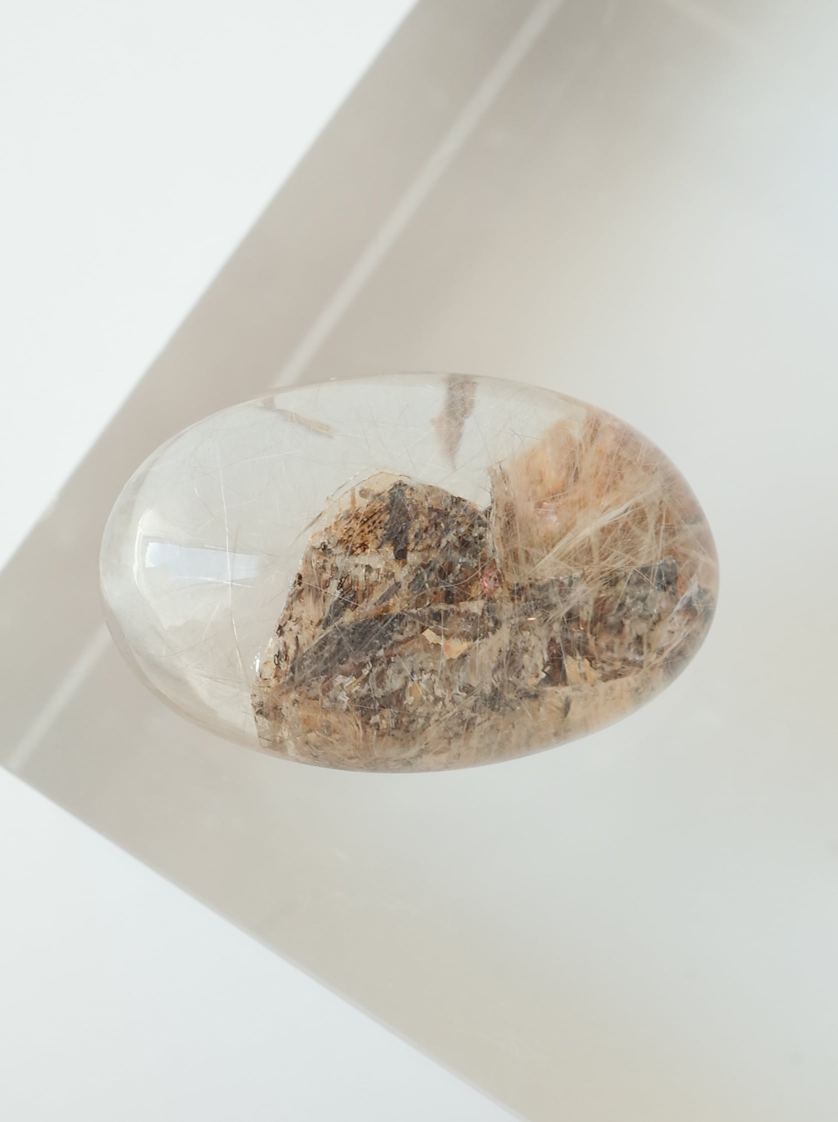 「マイカインルチルクォーツ」とは、針状のルチルと光沢を帯びた雲母(マイカ)が重なるように内包された、珍しいタイプのルチルクォーツです。