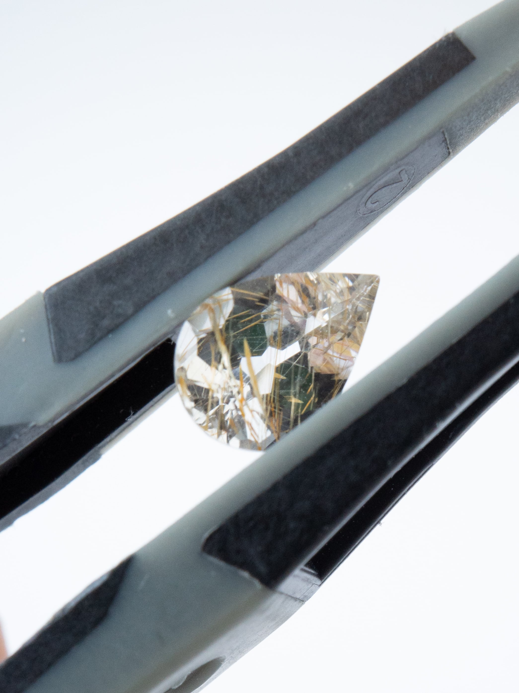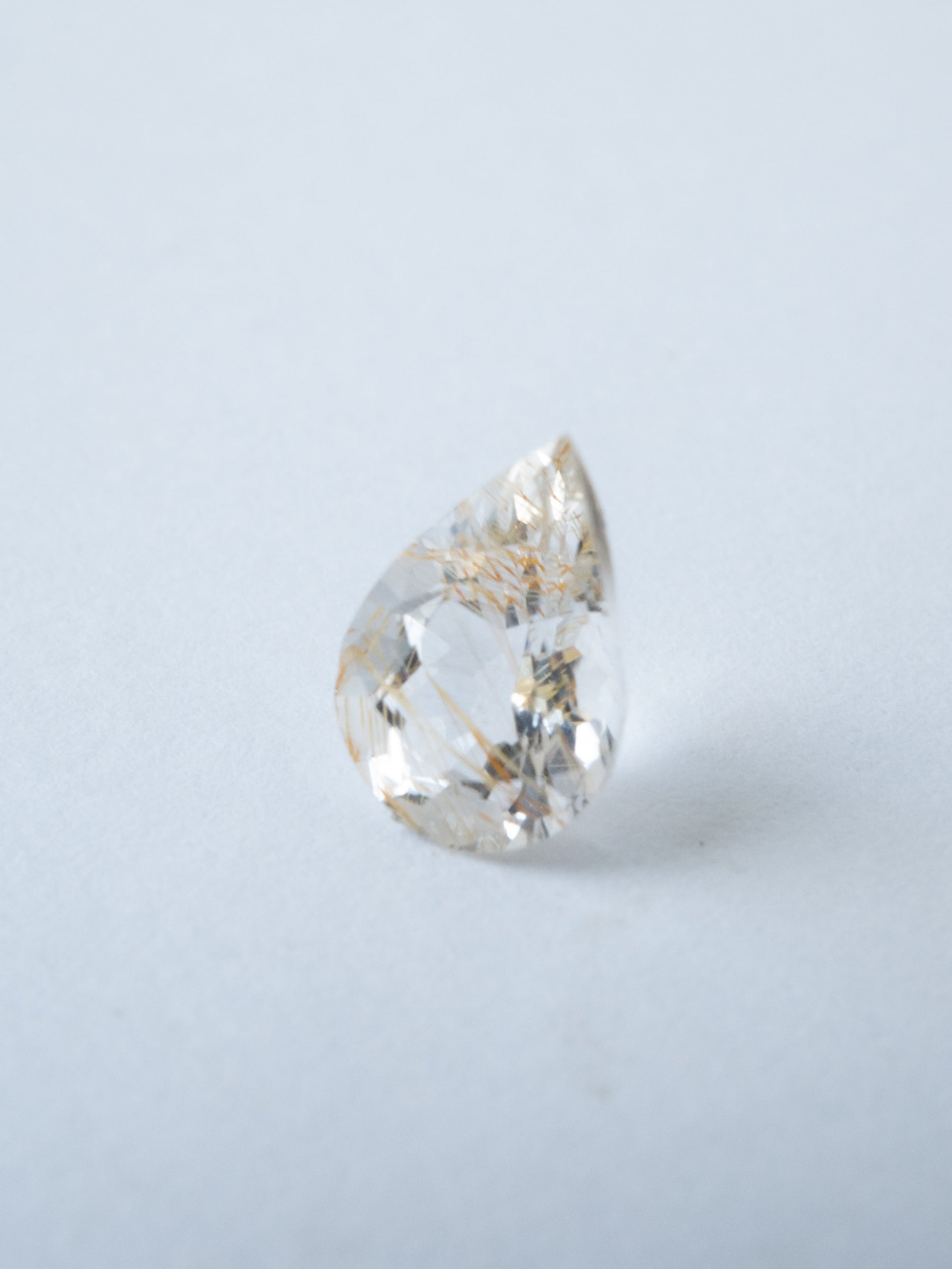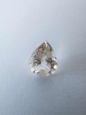 透明度の高いトパーズの中に、黄褐色のライモナイトが内包されたライモナイトイントパーズ。雲一つない空に光が差したような魅力的なルースです。またトパーズは水晶よりも屈折率が高く比重も大きい為、光沢が強く、より艶やかです。