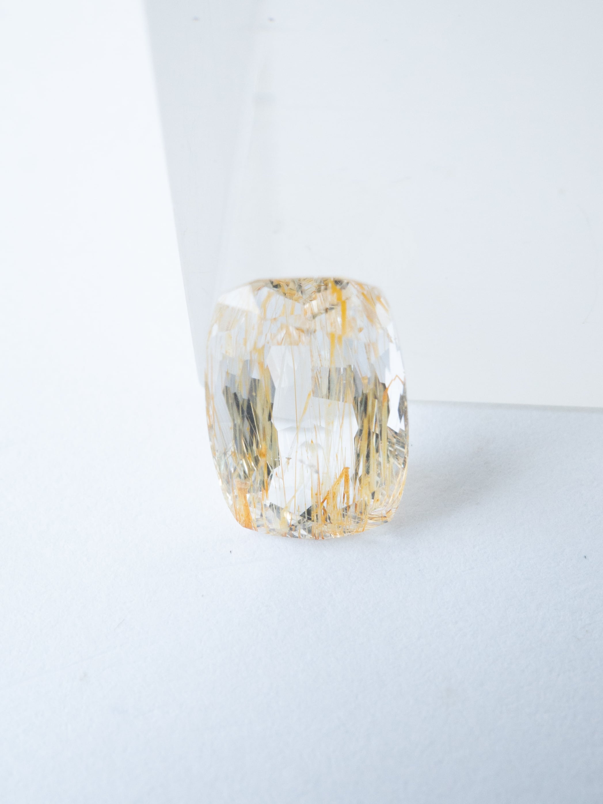 透明度の高いトパーズの中に、黄褐色のライモナイトが内包されたライモナイトイントパーズ。雲一つない空に光が差したような魅力的なルースです。またトパーズは水晶よりも屈折率が高く比重も大きい為、光沢が強く、より艶やかです。
