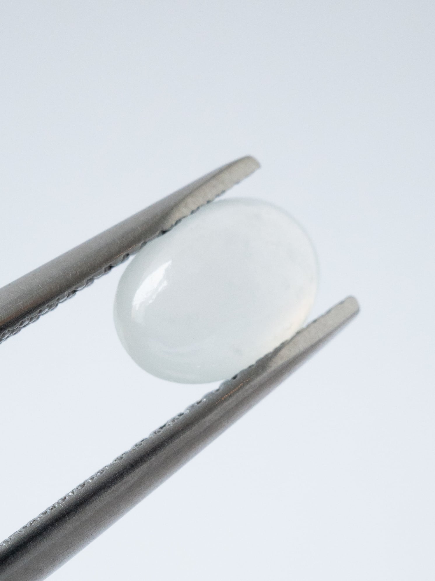 こちらの翡翠は表面の艶を向上させるための通常ワックス加工が施されています。この処理は、ほとんどの翡翠ルースの仕上げとして行われている工程です。内部まで樹脂を浸透させた含浸処理とは異なりますので、安心してご購入ください。