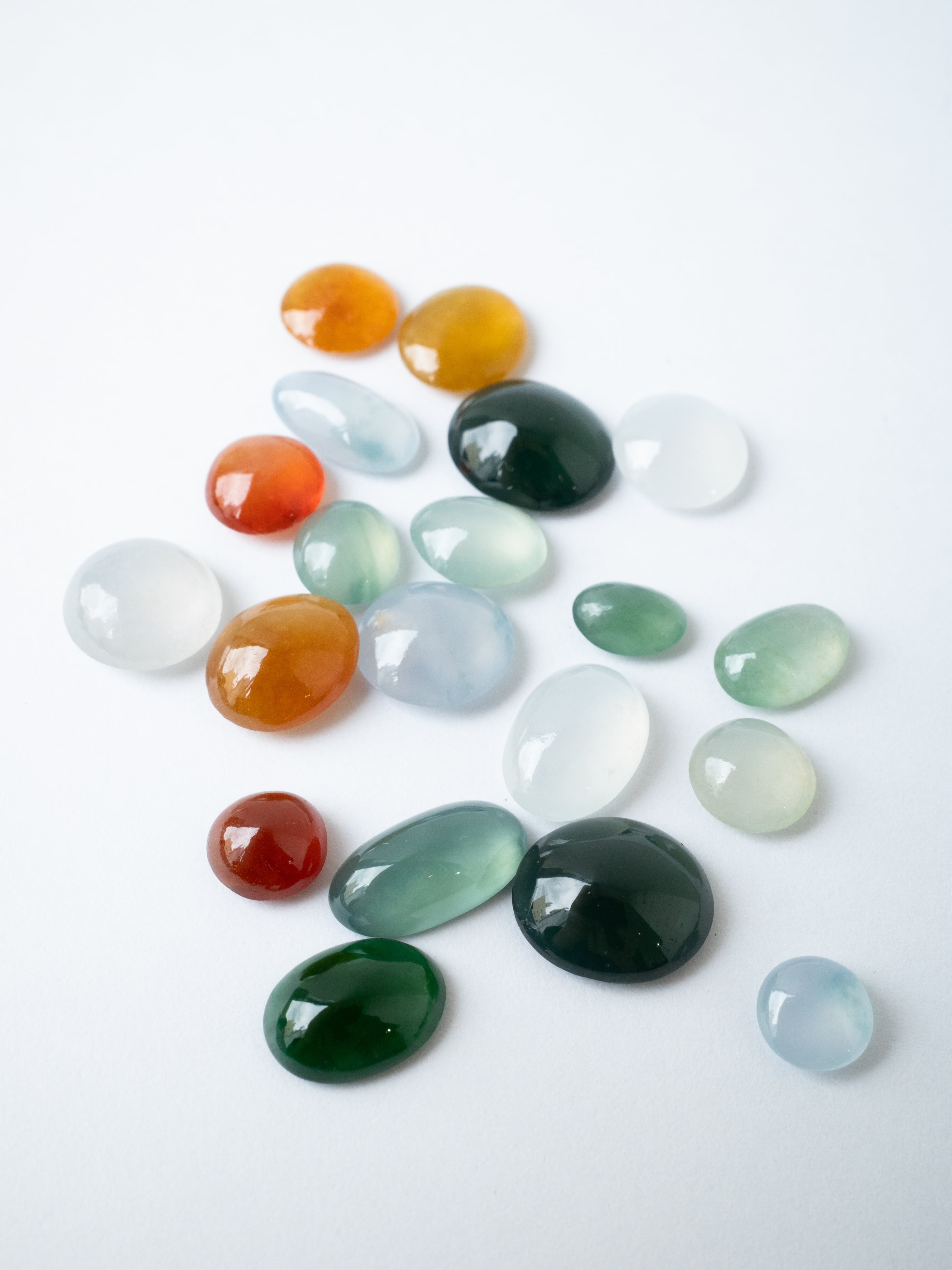これらの翡翠は各種ロットの中から無作為で数ピースずつ、信頼のおける日本の鑑別機関にてソーティンをとっており、全て同じ結果が出ていますが、個別に全ピースを検査しているわけではありません。ご理解の上ご注文ください。