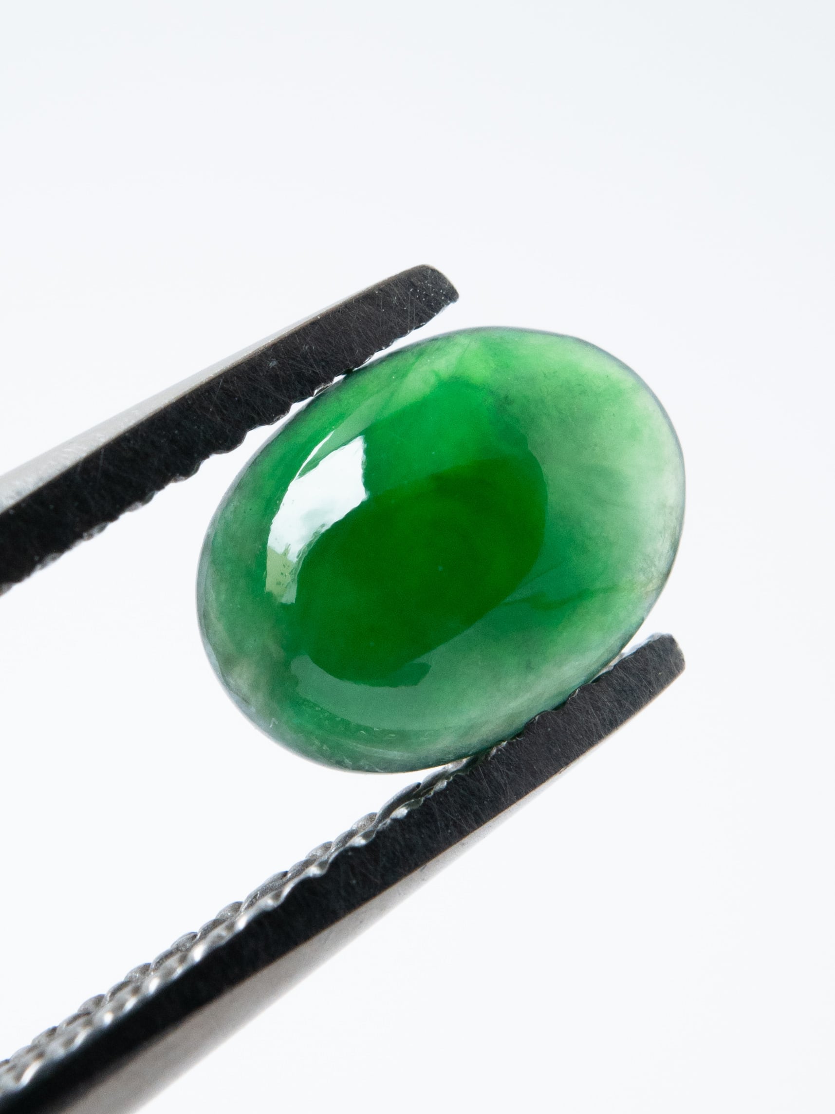 小粒ながら艶感が美しいミャンマー産翡翠のルースです。