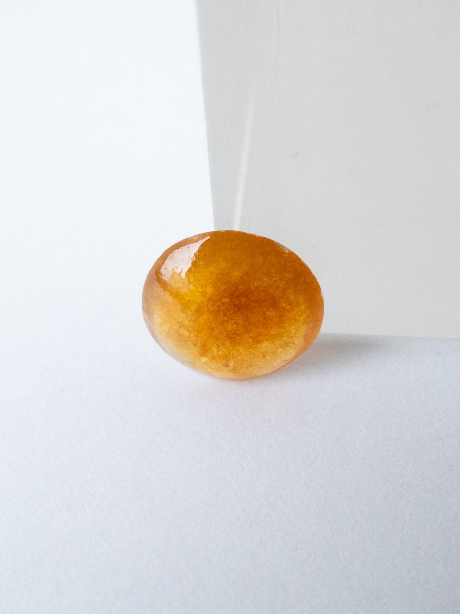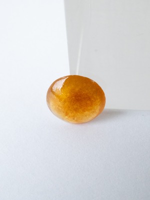 こちらの翡翠は表面の艶を向上させるための通常ワックス加工が施されています。この処理は、ほとんどの翡翠ルースの仕上げとして行われている工程です。内部まで樹脂を浸透させた含浸処理とは異なりますので、安心してご購入ください。