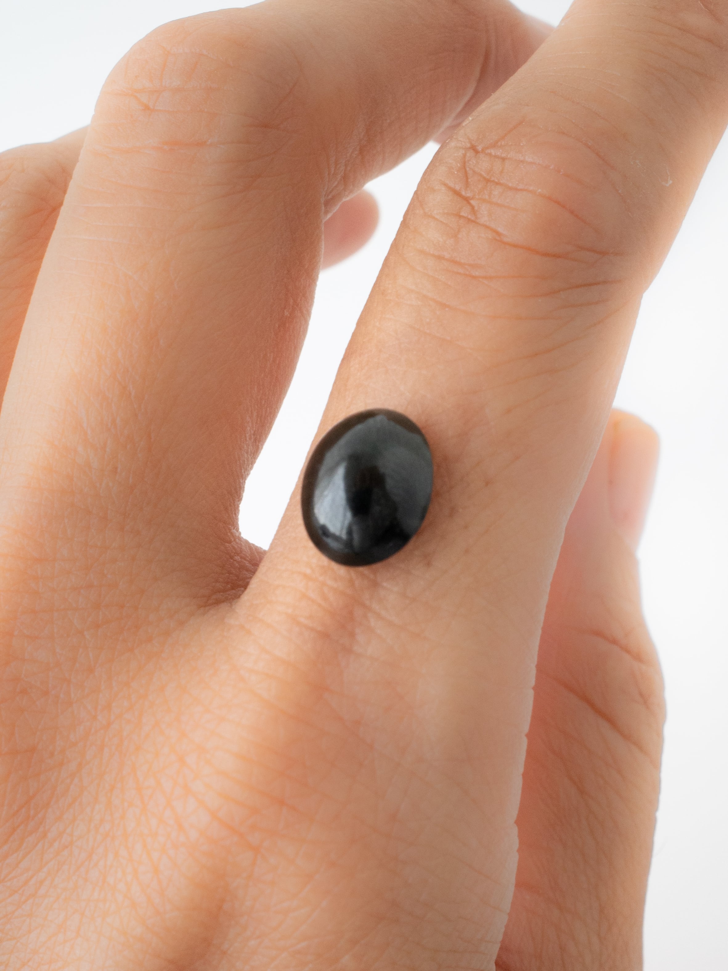 黒翡翠はその名の通り、一見黒色に見える翡翠ですが、オンファサイトを主成分とした黒翡翠の中には、透過光を当てると本来のグリーンが見えるものがあります。全ての黒翡翠にこのような現象が起こるわけではないので、流通量も多くありません。ぜひ変化する姿を楽しんでみてください。