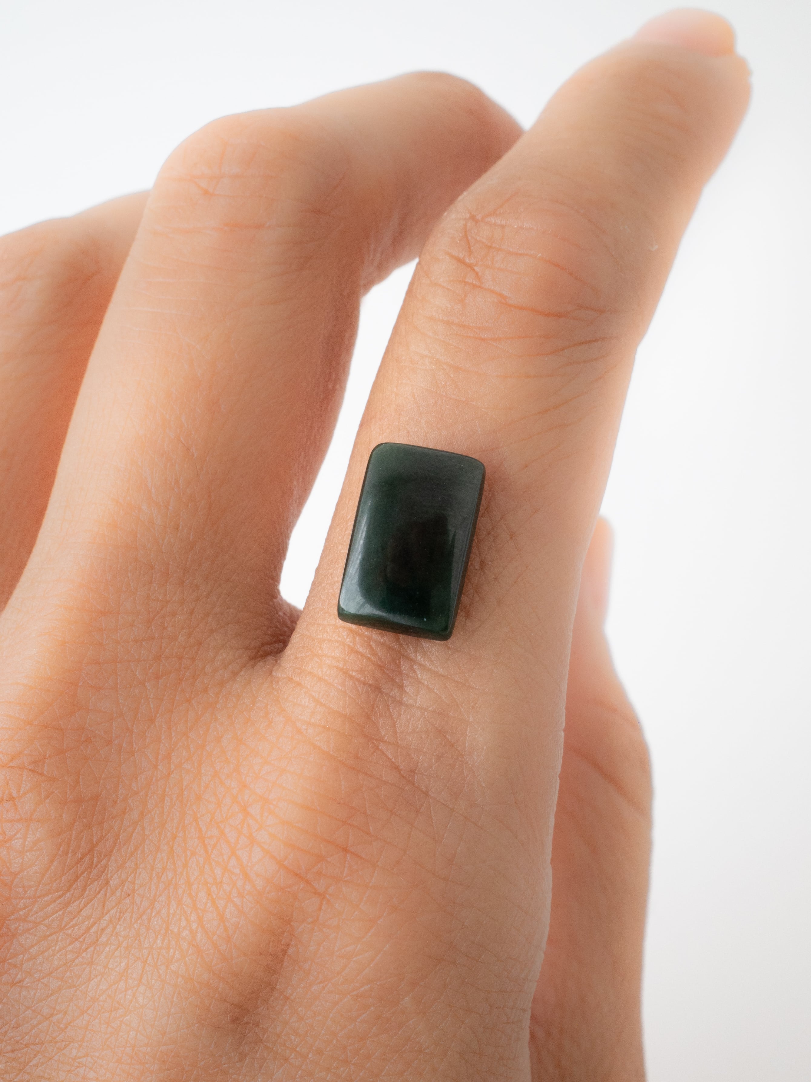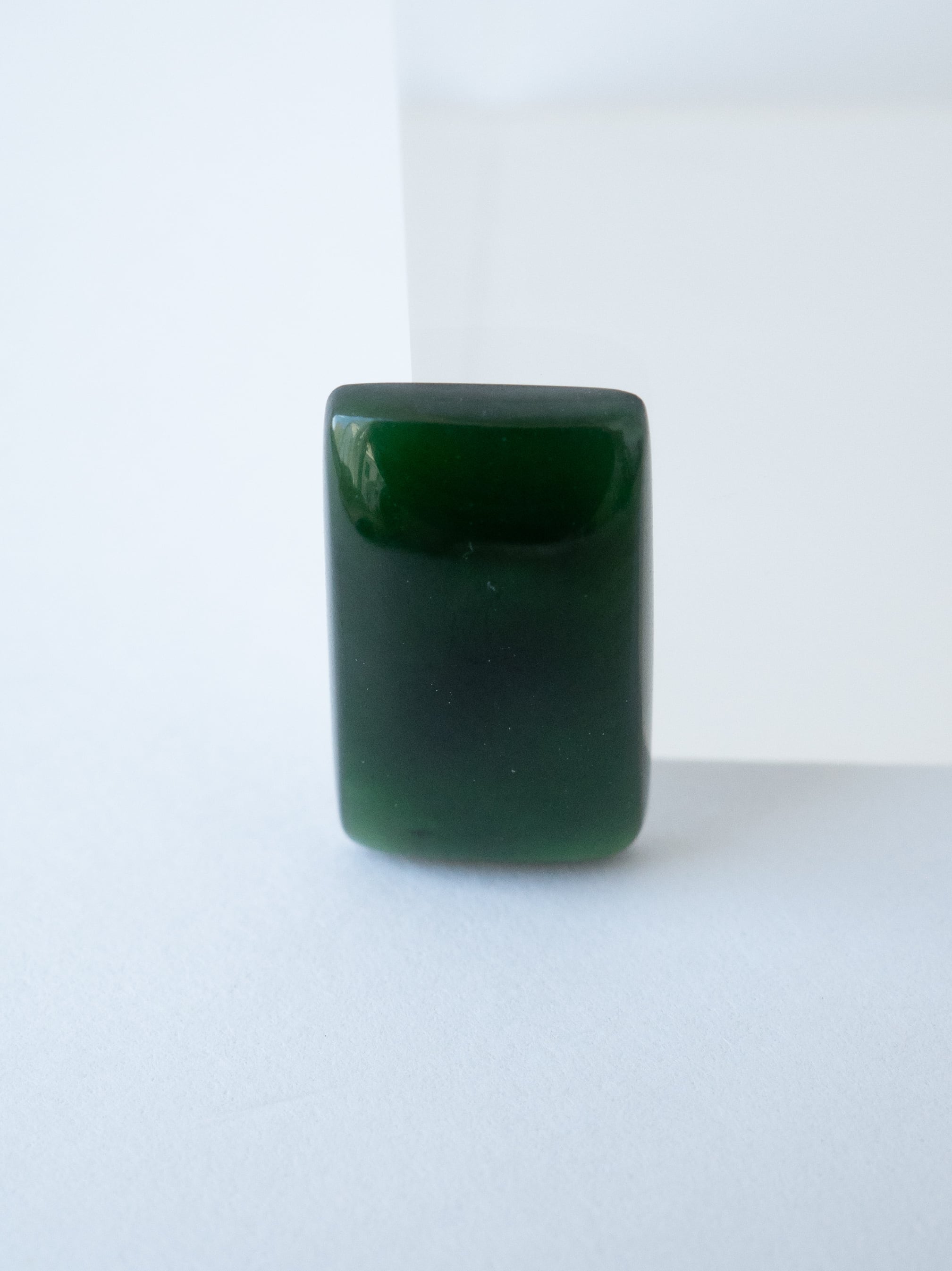 こちらの翡翠は表面の艶を向上させるための通常ワックス加工が施されています。この処理は、ほとんどの翡翠ルースの仕上げとして行われている工程です。内部まで樹脂を浸透させた含浸処理とは異なりますので、安心してご購入ください。