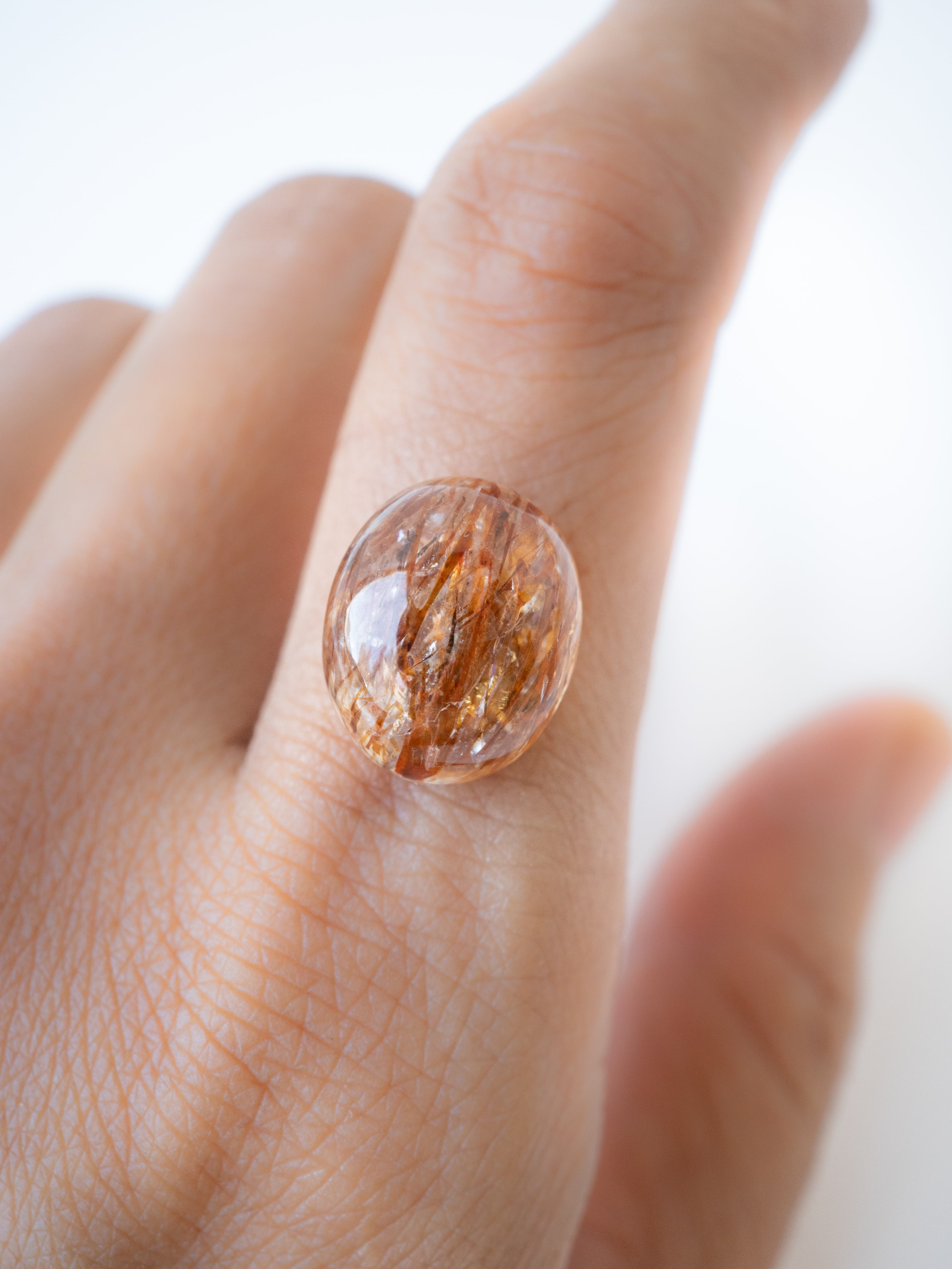 コニャックカラーのような赤みのあるブラウンが魅力のバイオタイトインクォーツ。この茶色いインクルージョンをベースに、まるでサンストーンのようにキラキラとメタリックな輝きを放つ部分は、「ヘマタイト」という鑑別が出ております。