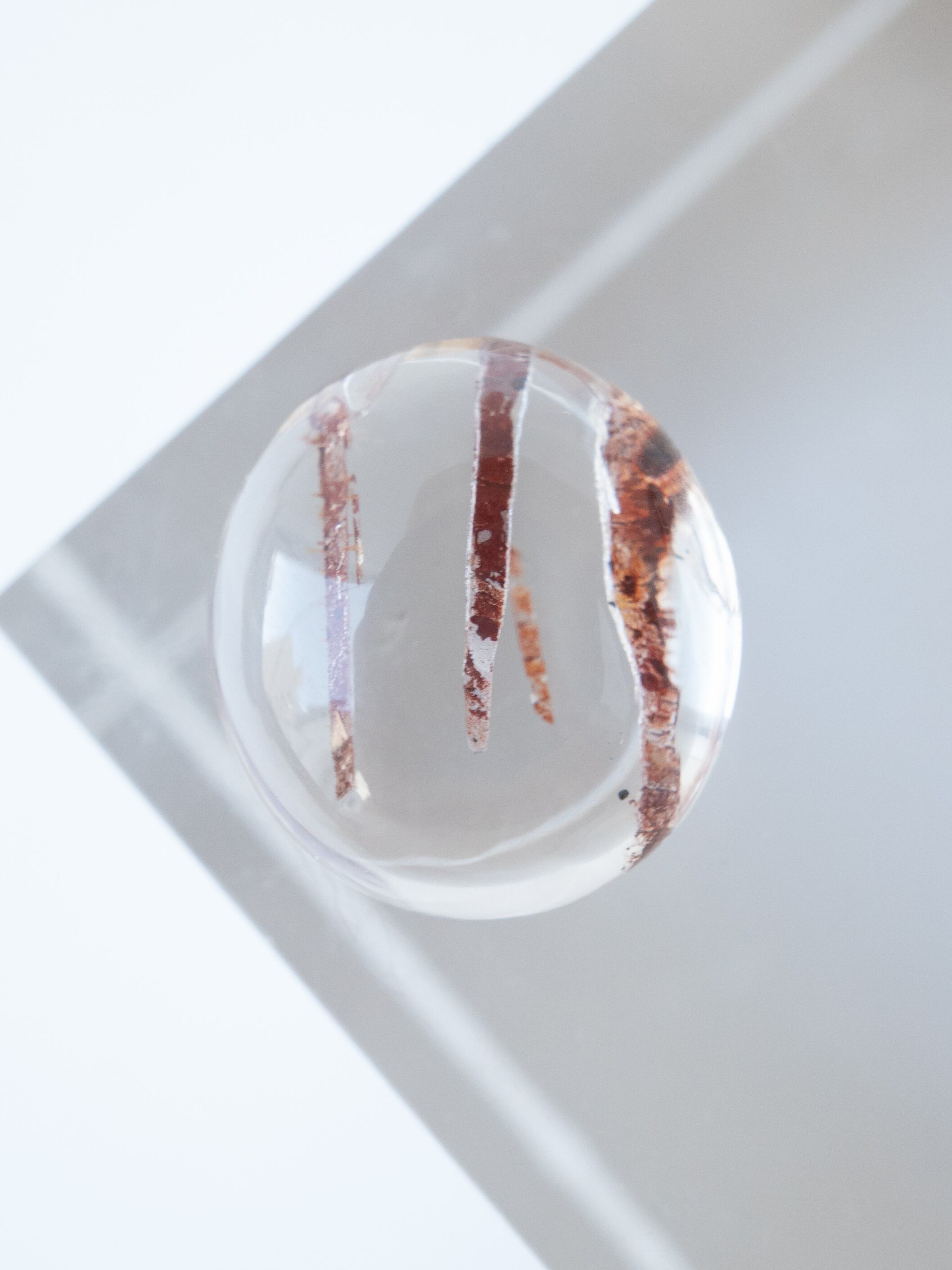 コニャックカラーのような赤みのあるブラウンが魅力のバイオタイトインクォーツ。インクルージョン自体の層が非常に薄く、茶色ながら、重すぎない美しい透け感が楽しめます。