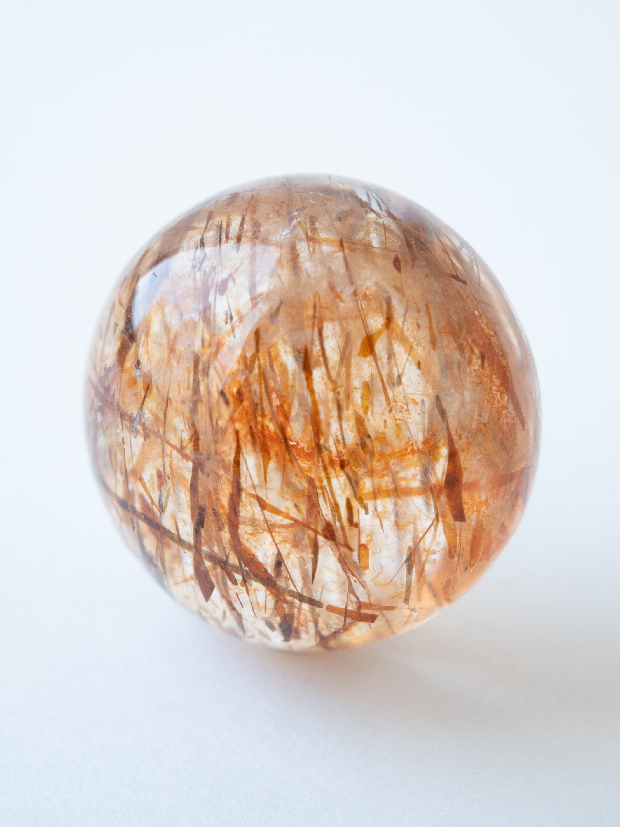 コニャックカラーのような赤みのあるブラウンが魅力のバイオタイトインクォーツ。この茶色いインクルージョンをベースに、まるでサンストーンのようにキラキラとメタリックな輝きを放つ部分は、「ヘマタイト」という鑑別が出ております。
