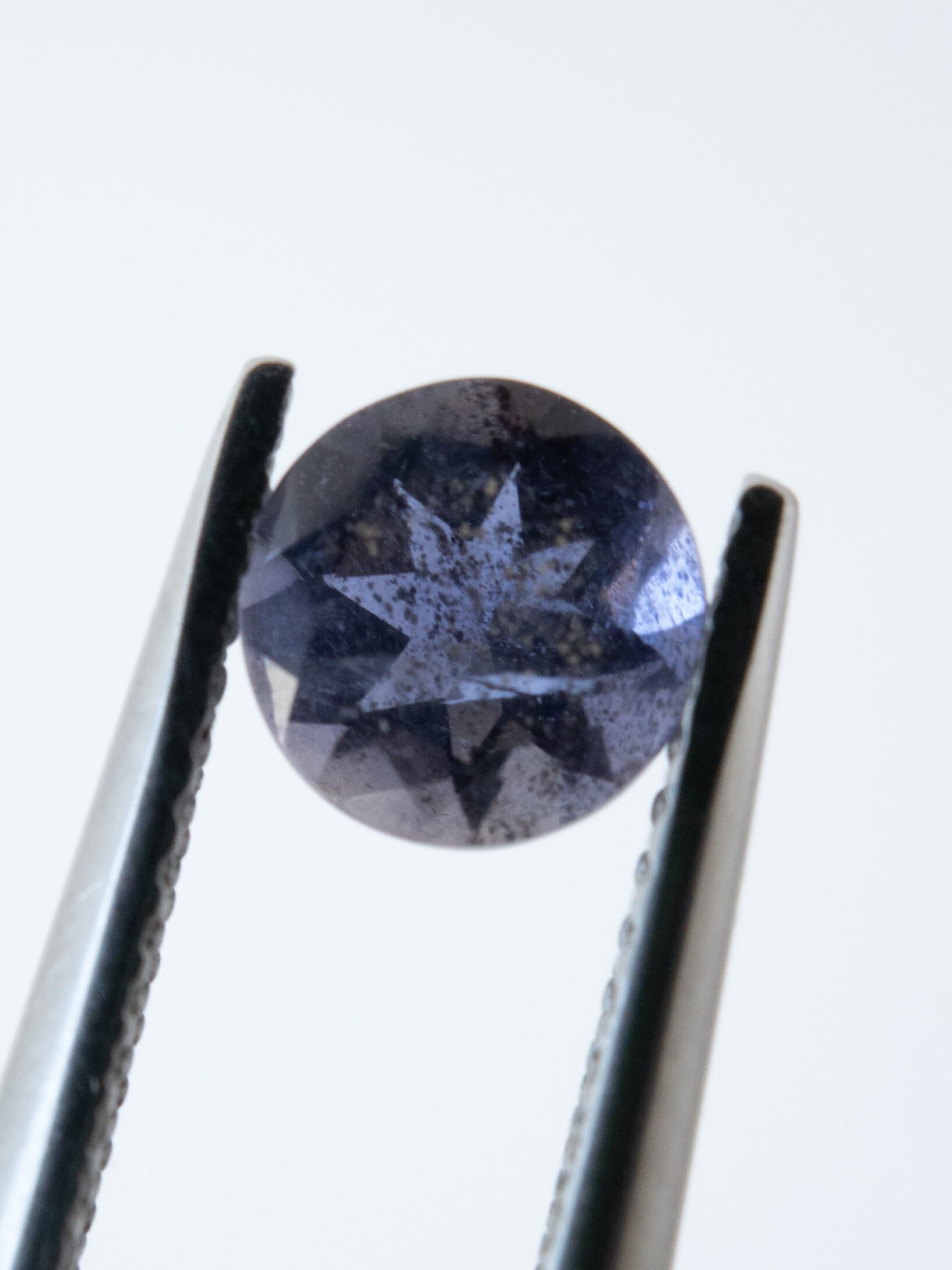 Aventurine Iolite is a stunning natural gemstone where fine hematite crystals sparkle against a deep ultramarine backdrop.