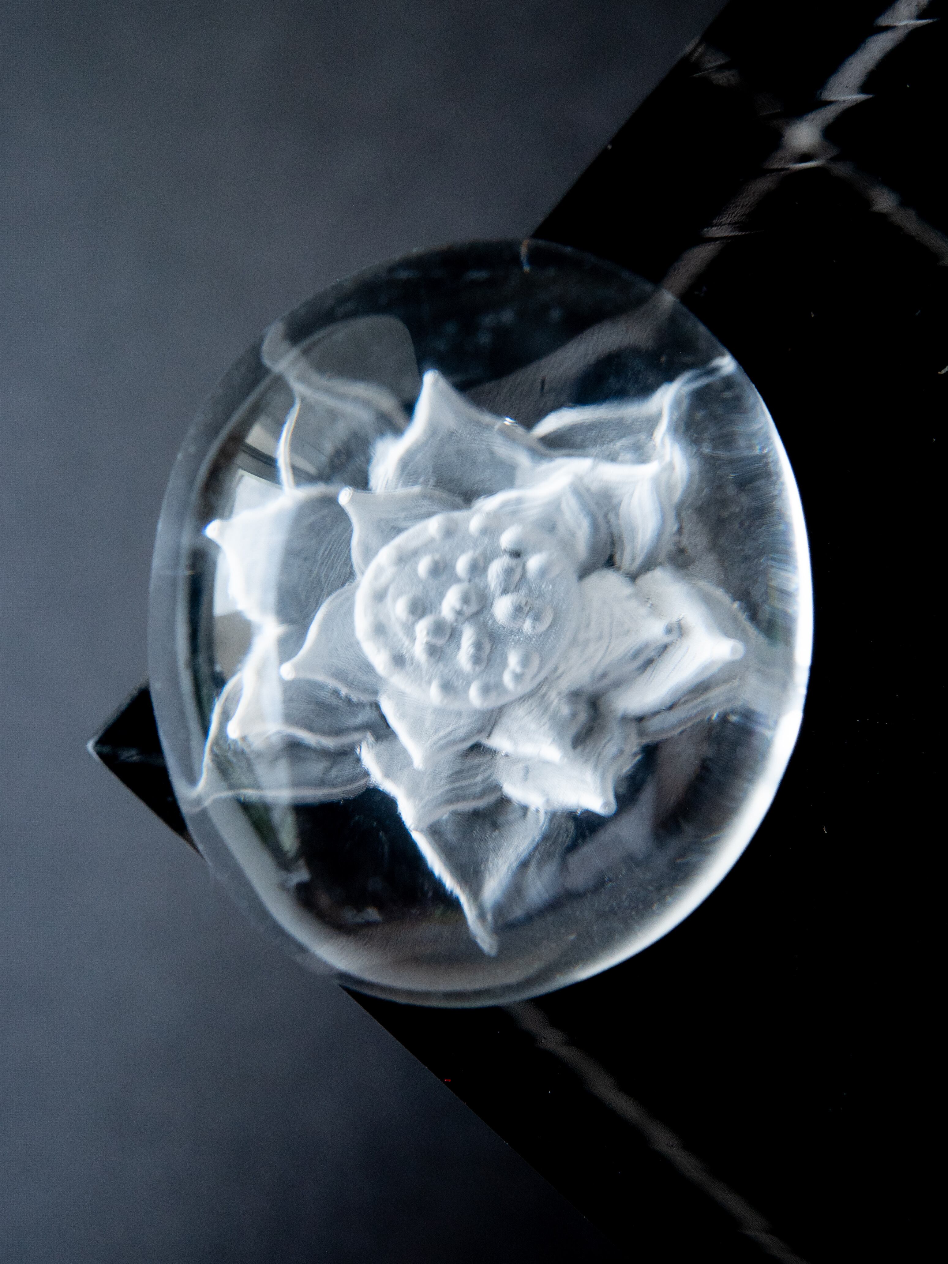 SELSHA では天然石の仕入れだけでなく、行く先々で出会った職人さんたちと一緒にものづくりをすることにも力を入れてきました。この花模様は SELSHA から図案を依頼し、一つ一つ彫ってもらっています。 手仕事の味わいをぜひお楽しみください。