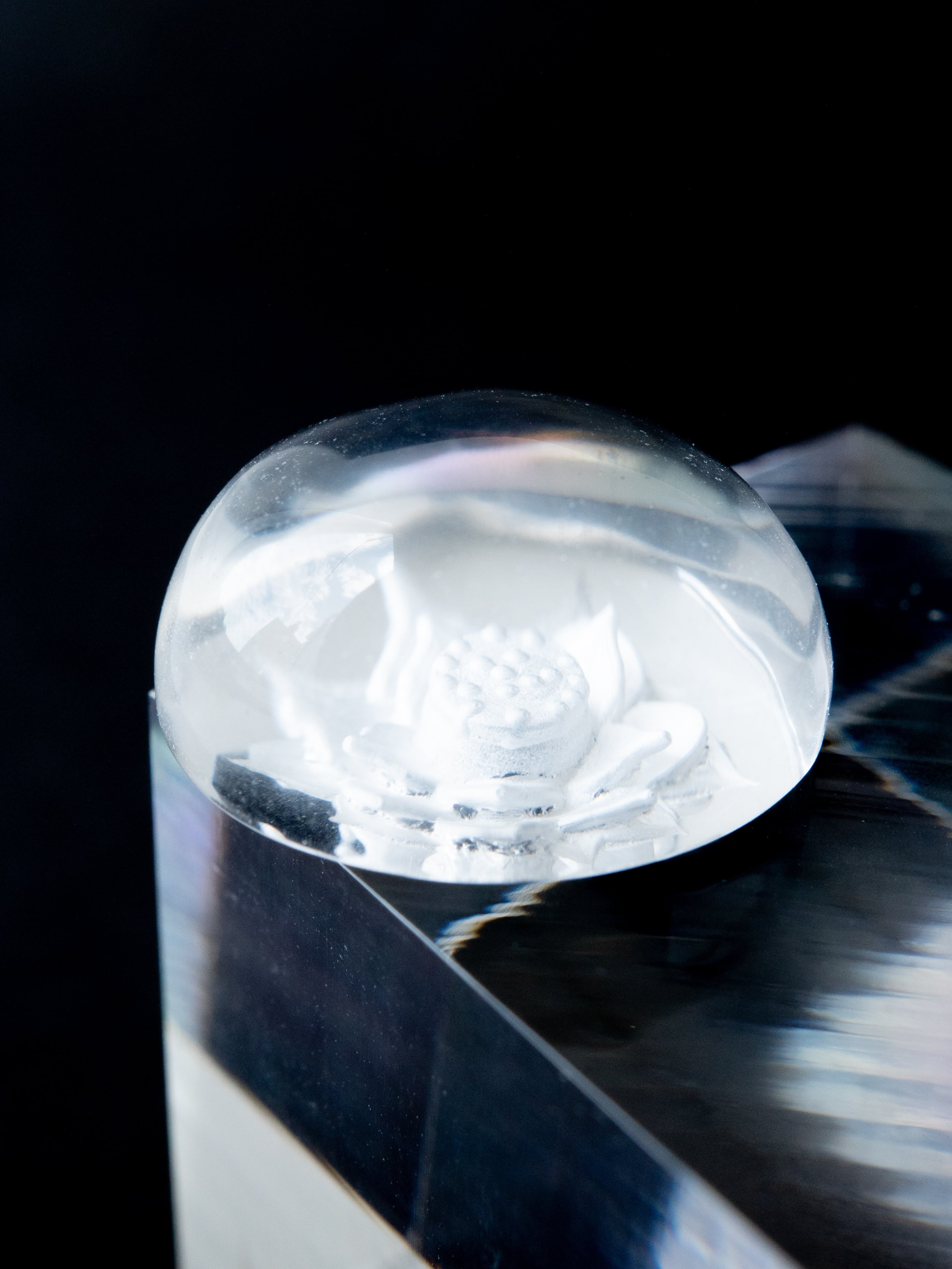 SELSHA では天然石の仕入れだけでなく、行く先々で出会った職人さんたちと一緒にものづくりをすることにも力を入れてきました。この花模様は SELSHA から図案を依頼し、一つ一つ彫ってもらっています。 手仕事の味わいをぜひお楽しみください。