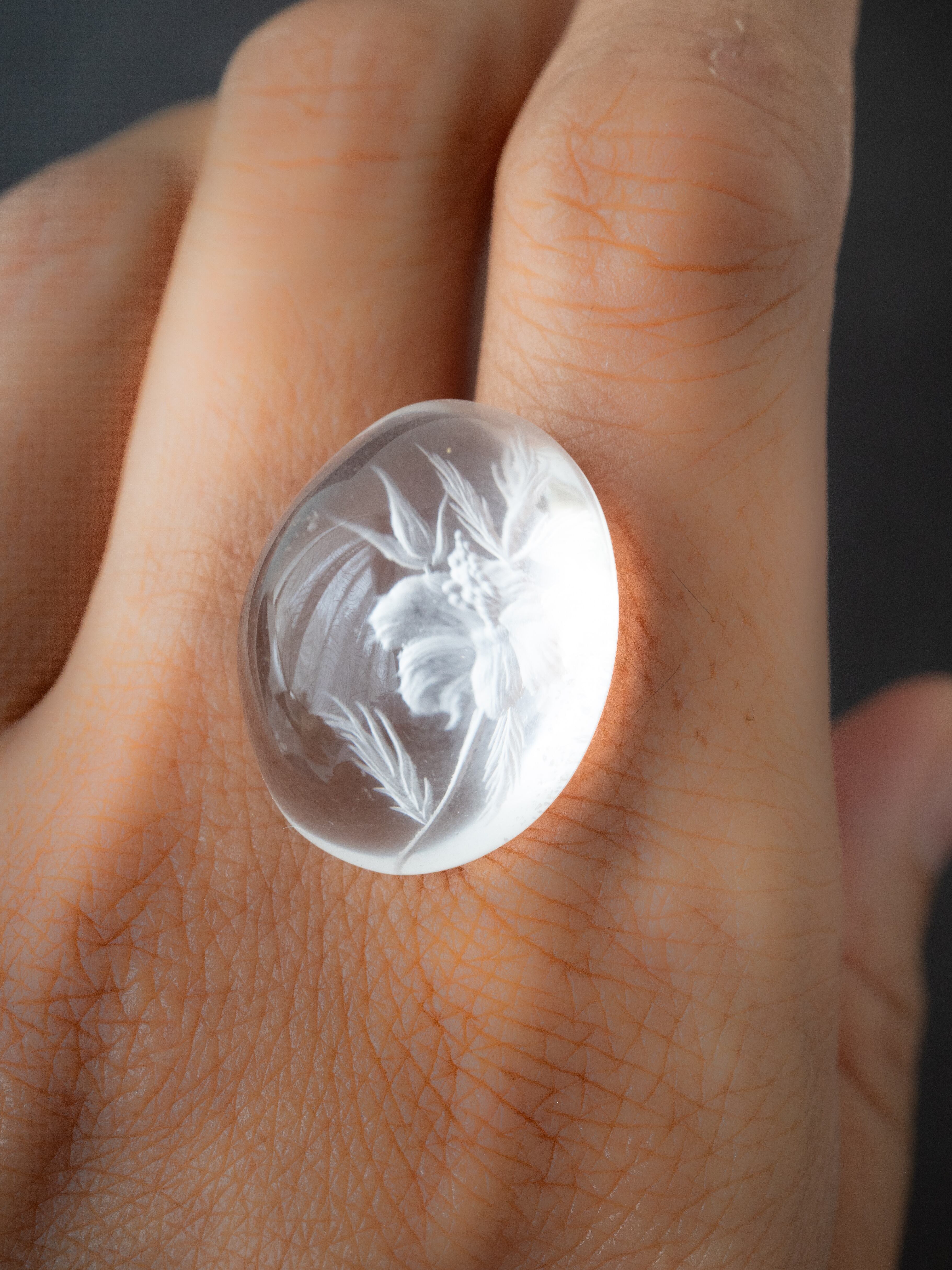 SELSHA では天然石の仕入れだけでなく、行く先々で出会った職人さんたちと一緒にものづくりをすることにも力を入れてきました。この花模様は SELSHA から図案を依頼し、一つ一つ彫ってもらっています。 手仕事の味わいをぜひお楽しみください。