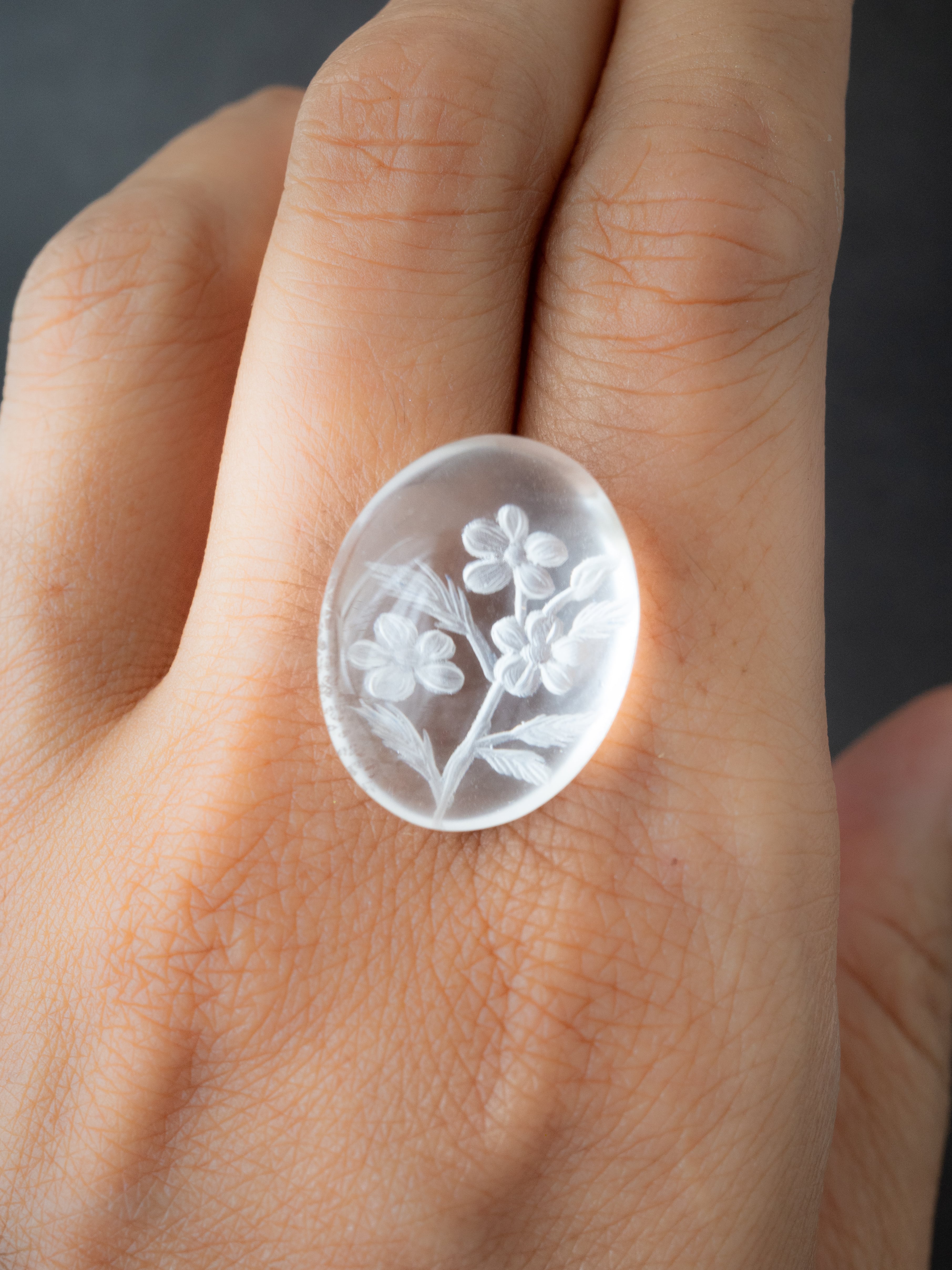 熟練の職人による手彫りの水晶カービングルースです。