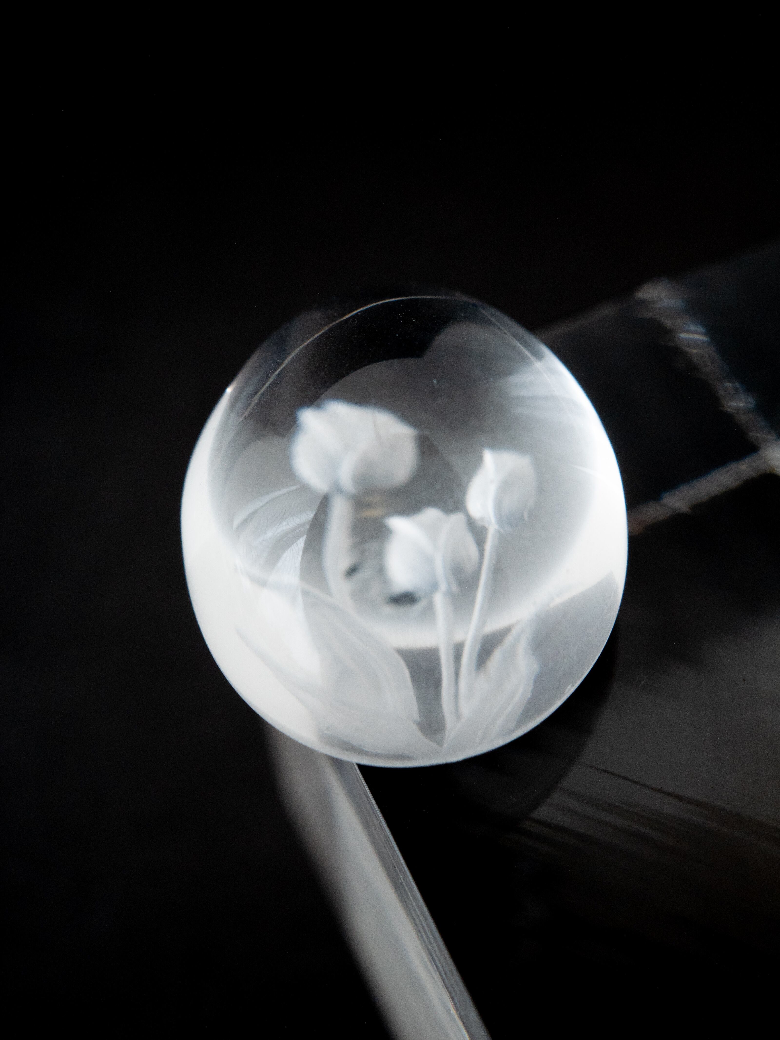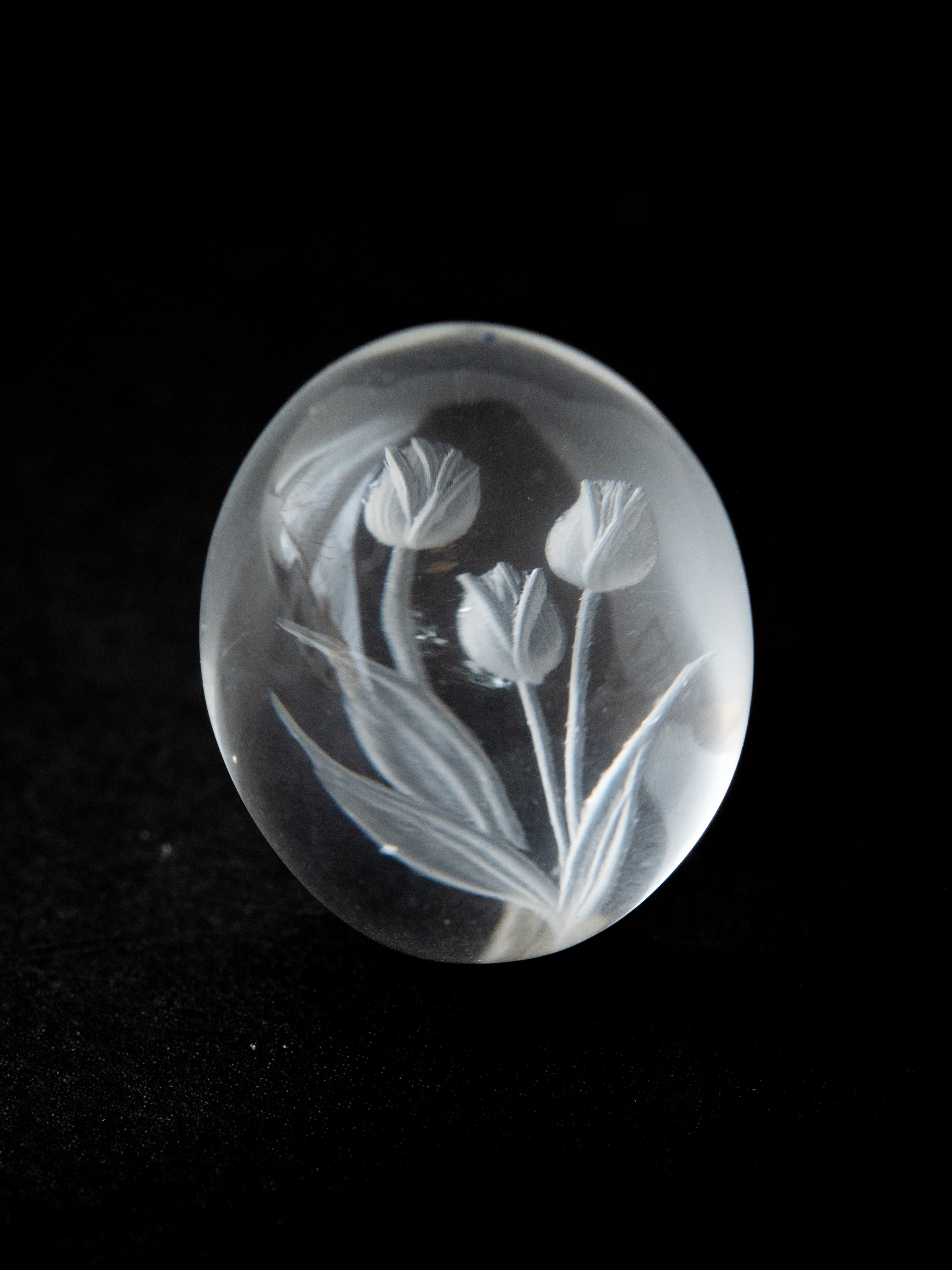 SELSHA では天然石の仕入れだけでなく、行く先々で出会った職人さんたちと一緒にものづくりをすることにも力を入れてきました。この花模様は SELSHA から図案を依頼し、一つ一つ彫ってもらっています。 手仕事の味わいをぜひお楽しみください。
