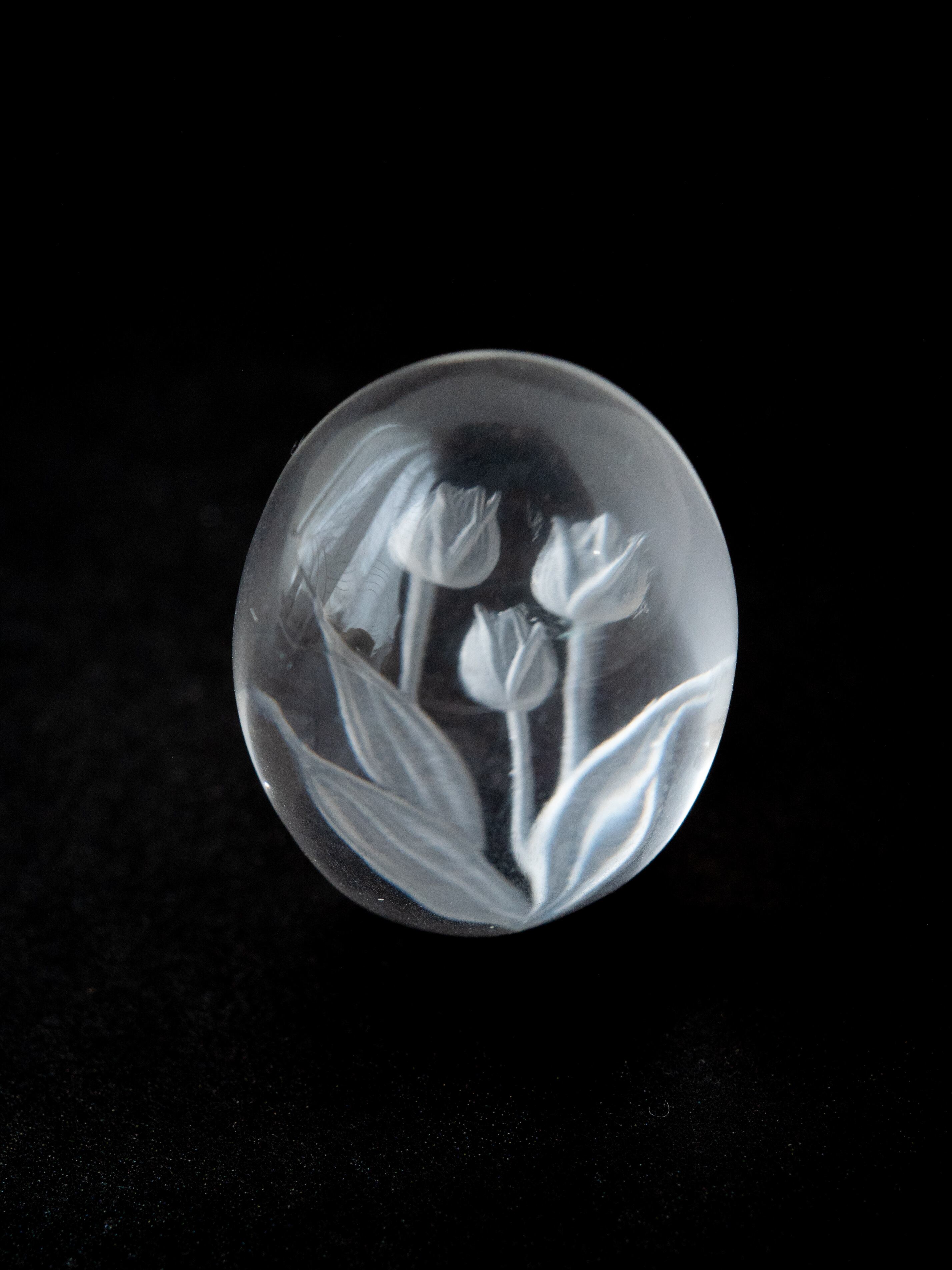 熟練の職人による手彫りの水晶カービングルースです。