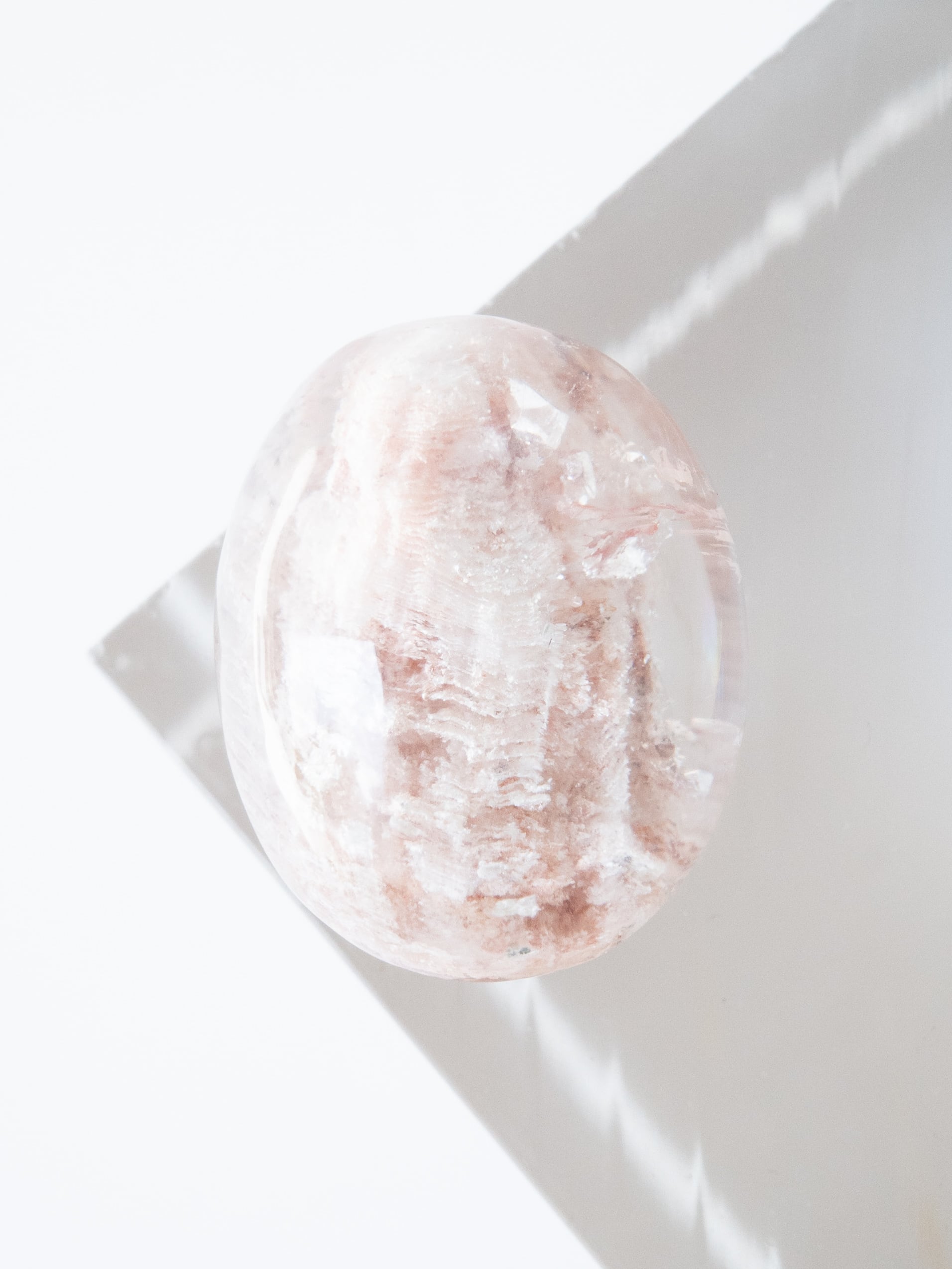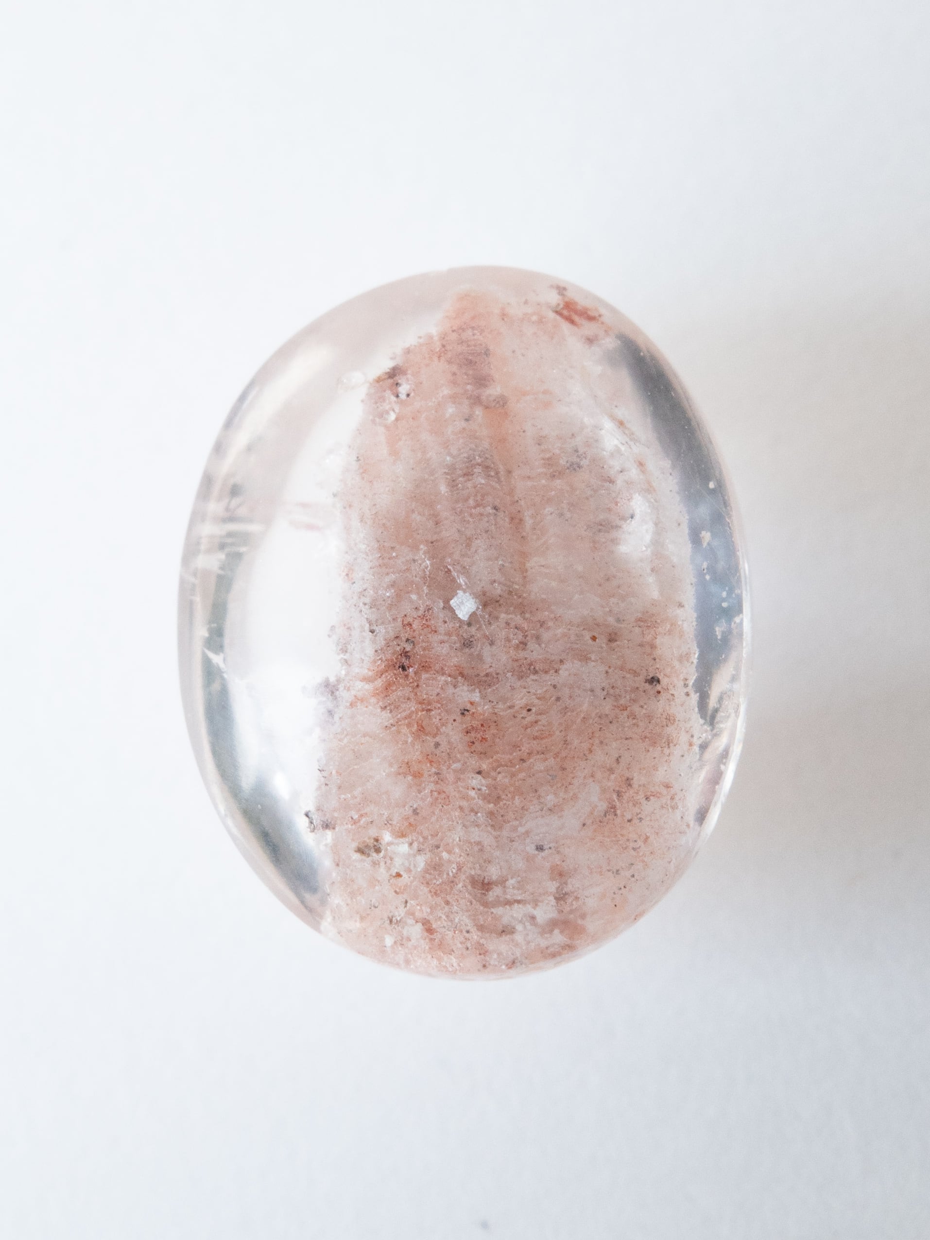まるでミルフィーユの様に、インクルージョンが積層したガーデンクォーツです。淡いピンク系〜ホワイト系の色合いも可愛らしく、探してもなかなか見つからない、珍しいタイプです。