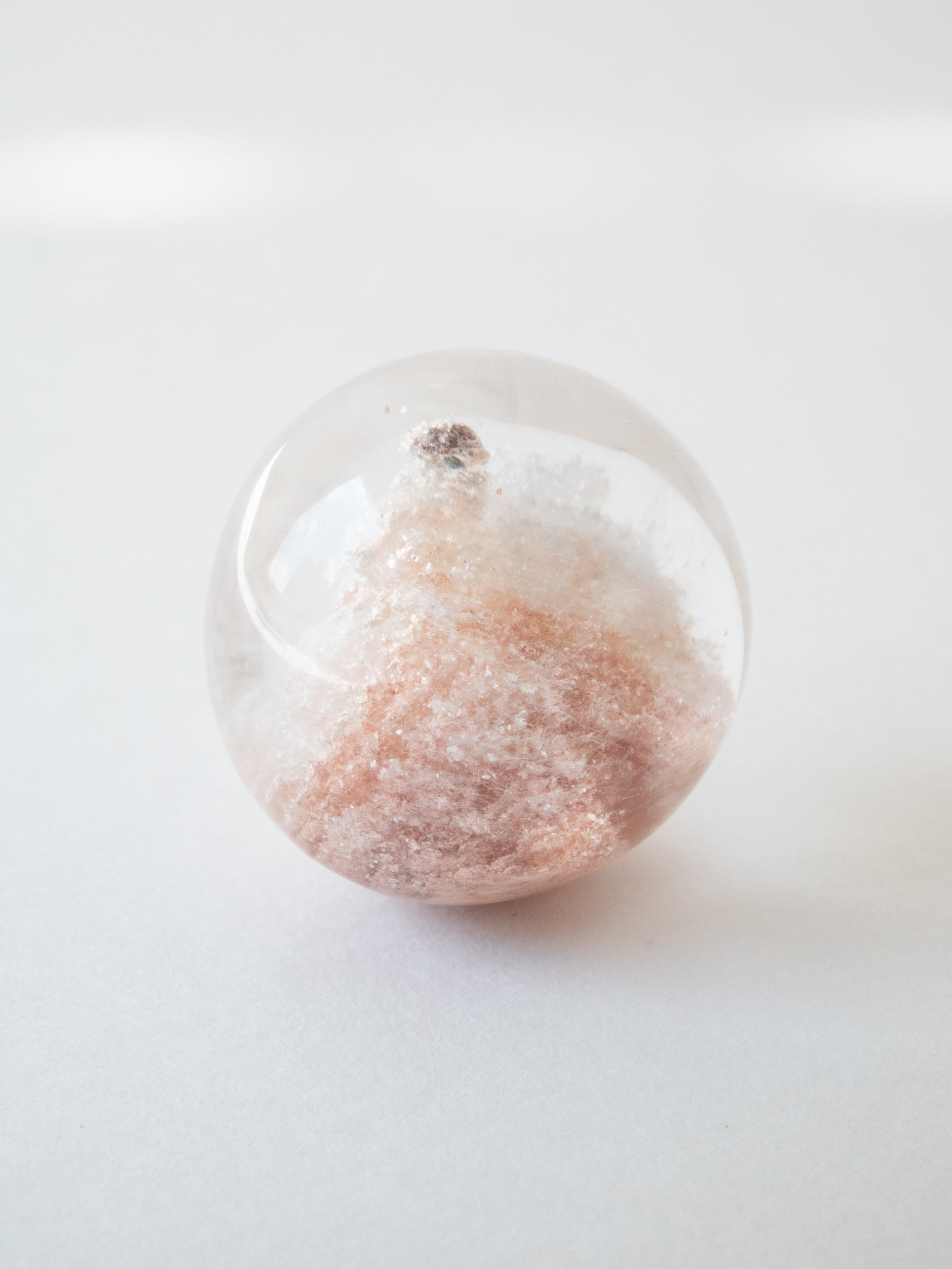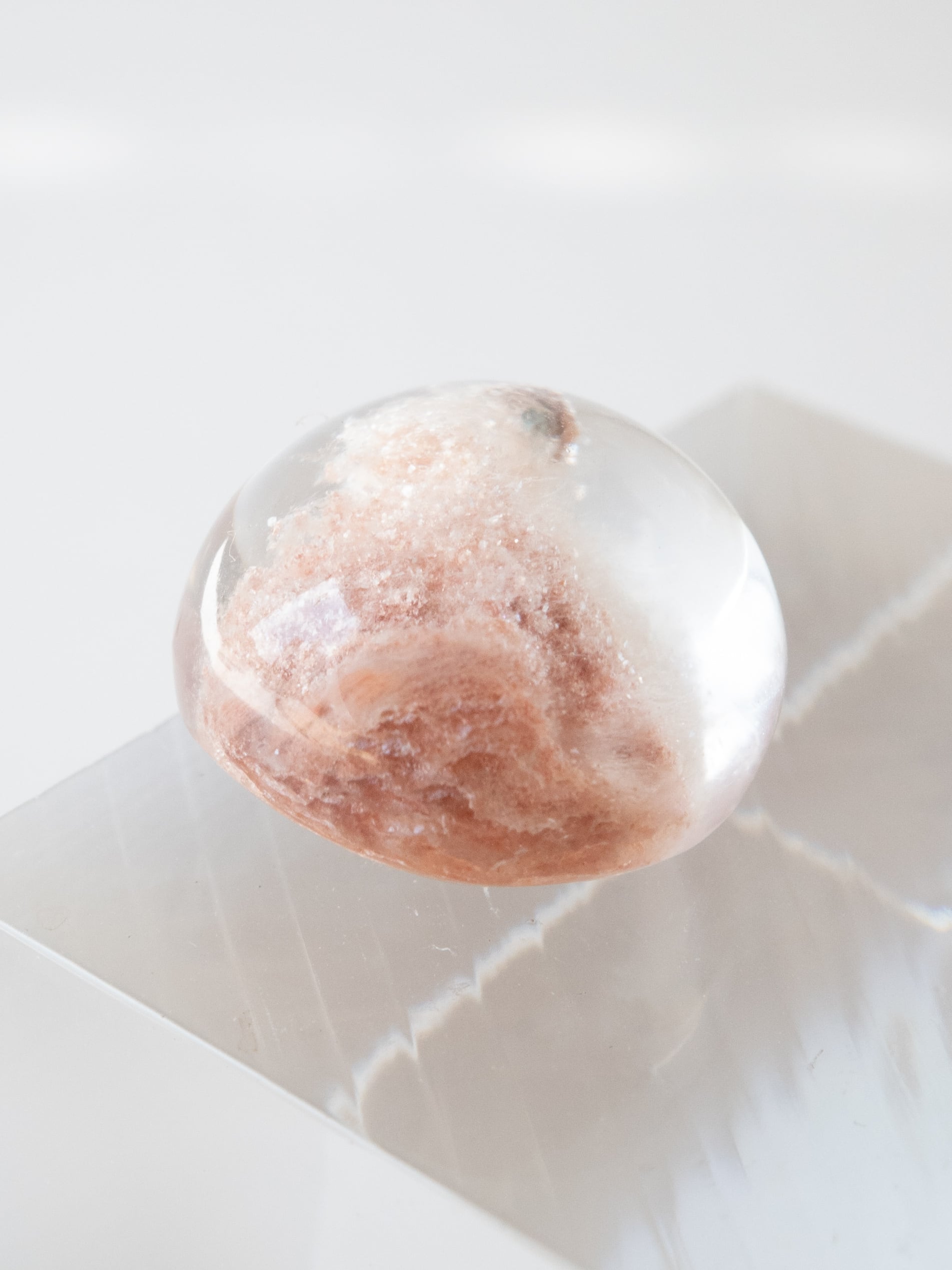 まるでミルフィーユの様に、インクルージョンが積層したガーデンクォーツです。淡いピンク系〜ホワイト系の色合いも可愛らしく、探してもなかなか見つからない、珍しいタイプです。