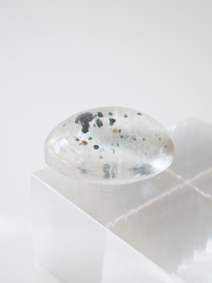 まるでミルフィーユの様に、インクルージョンが積層したガーデンクォーツです。淡いピンク系〜ホワイト系の色合いも可愛らしく、探してもなかなか見つからない、珍しいタイプです。