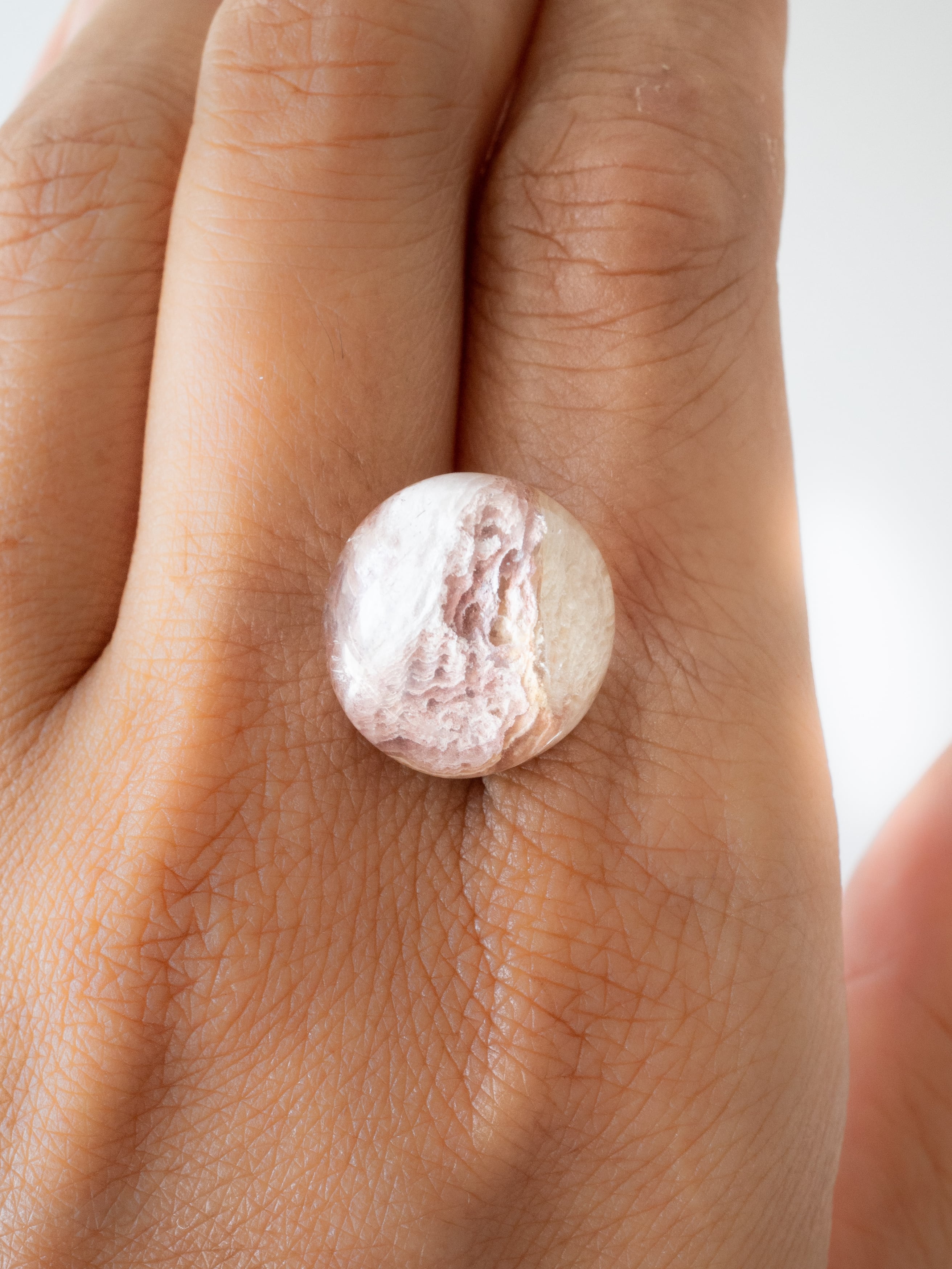 まるでミルフィーユの様に、インクルージョンが積層したガーデンクォーツです。淡いピンク系〜ホワイト系の色合いも可愛らしく、探してもなかなか見つからない、珍しいタイプです。