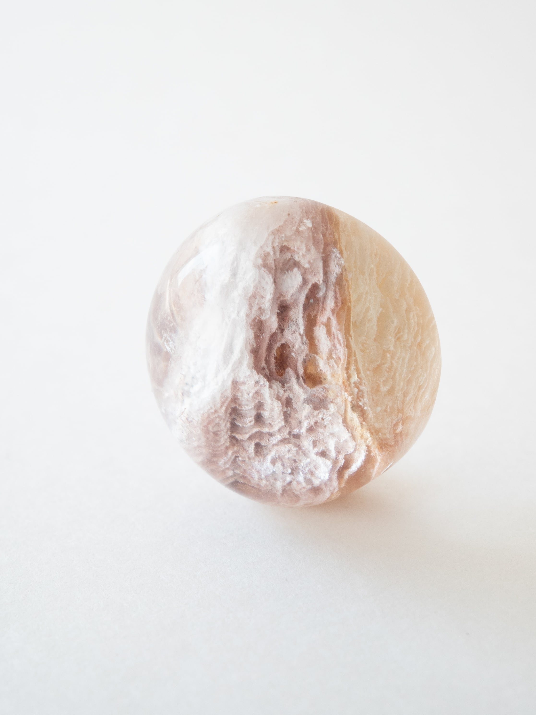 This Garden Quartz features inclusions layered like a mille-feuille. Its soft pink to white tones add a charming touch, making it a rare and hard-to-find type.