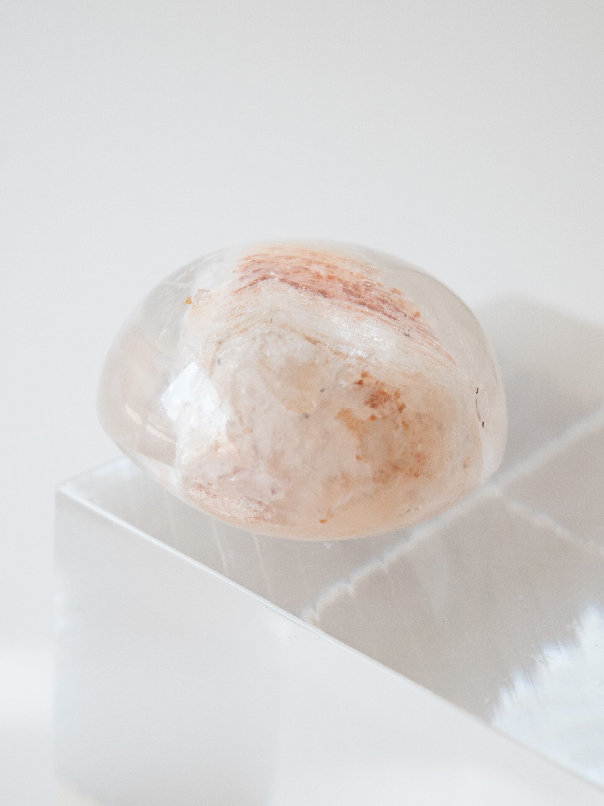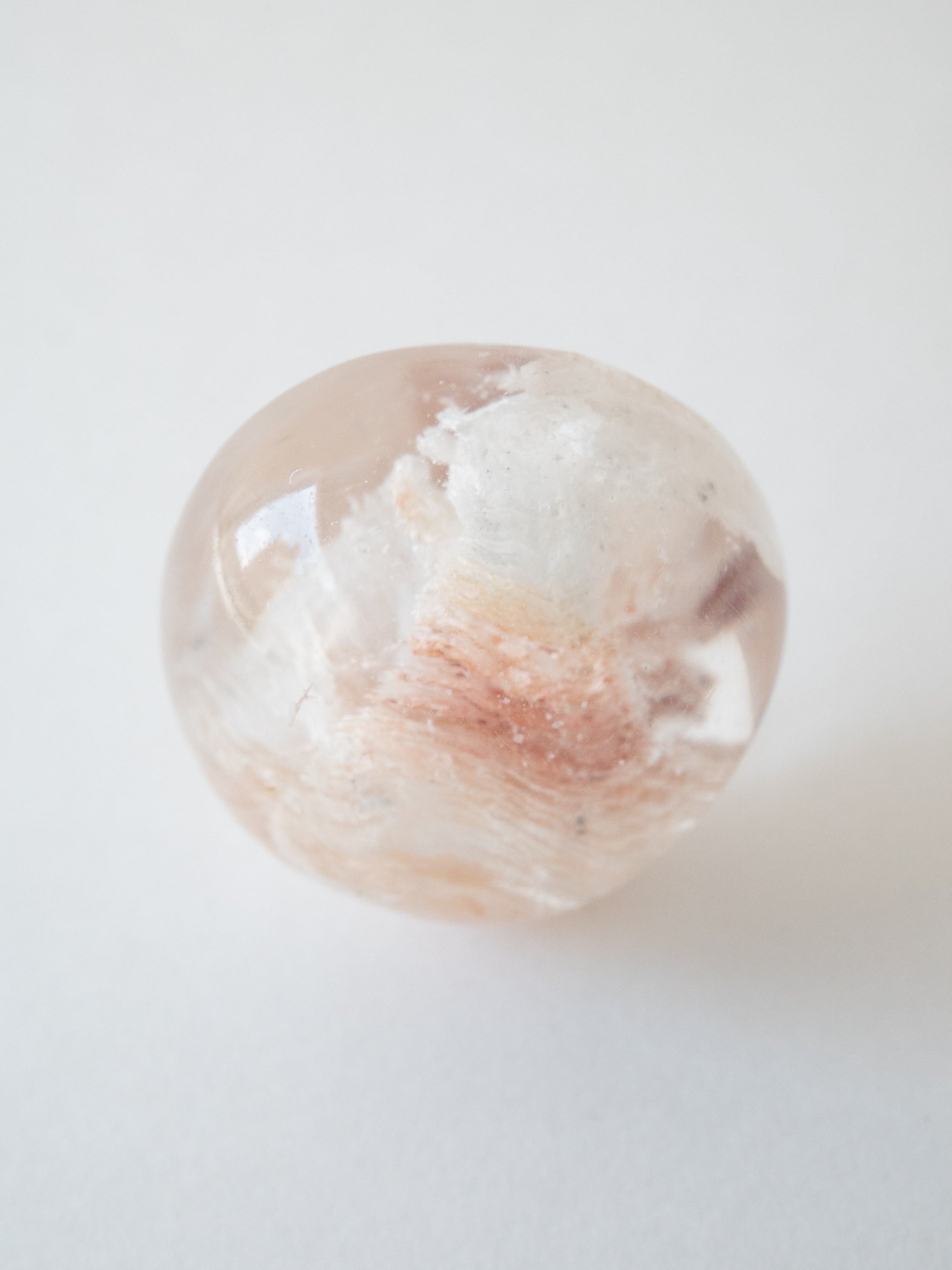 まるでミルフィーユの様に、インクルージョンが積層したガーデンクォーツです。淡いピンク系〜ホワイト系の色合いも可愛らしく、探してもなかなか見つからない、珍しいタイプです。