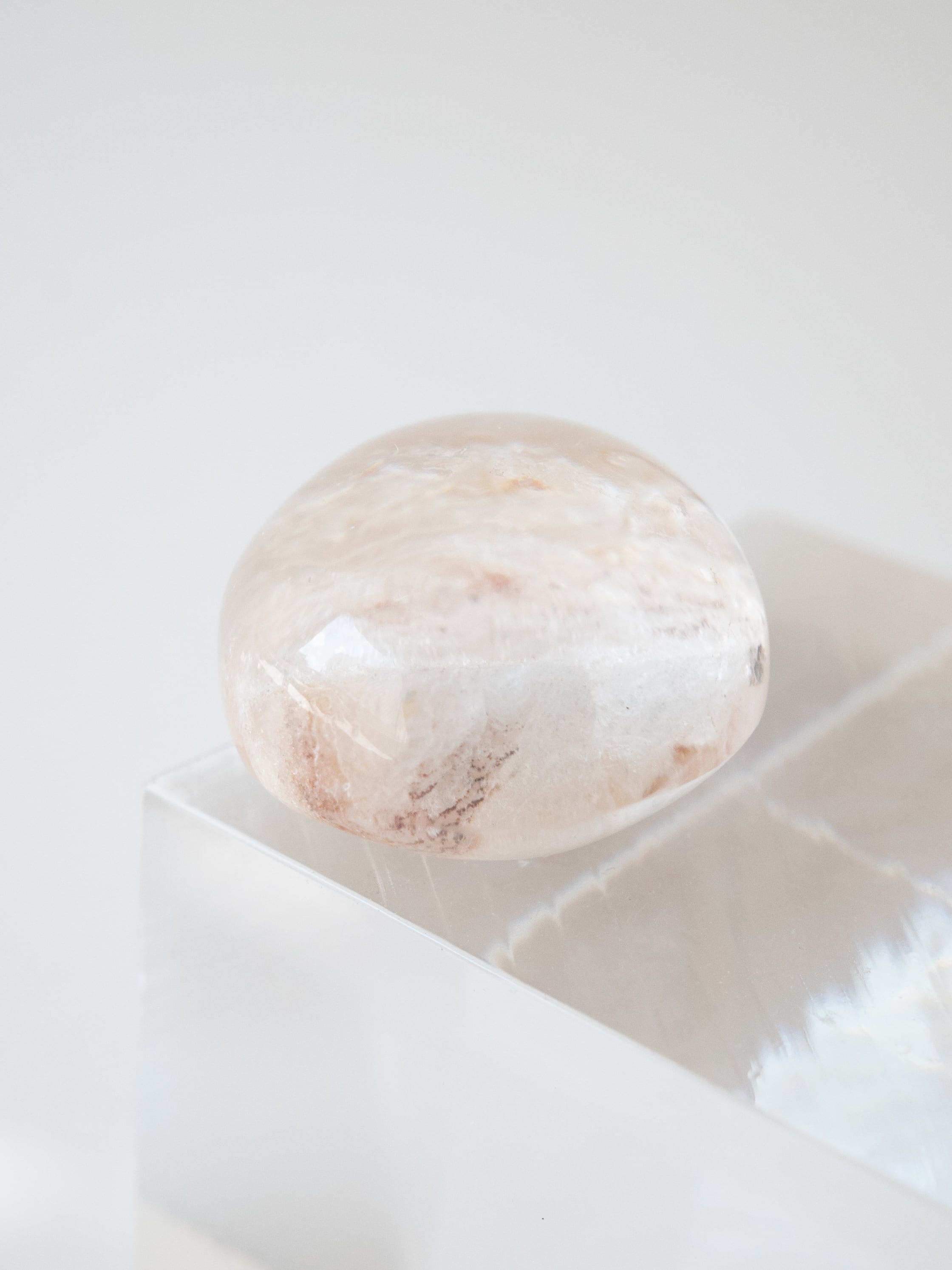 まるでミルフィーユの様に、インクルージョンが積層したガーデンクォーツです。淡いピンク系〜ホワイト系の色合いも可愛らしく、探してもなかなか見つからない、珍しいタイプです。