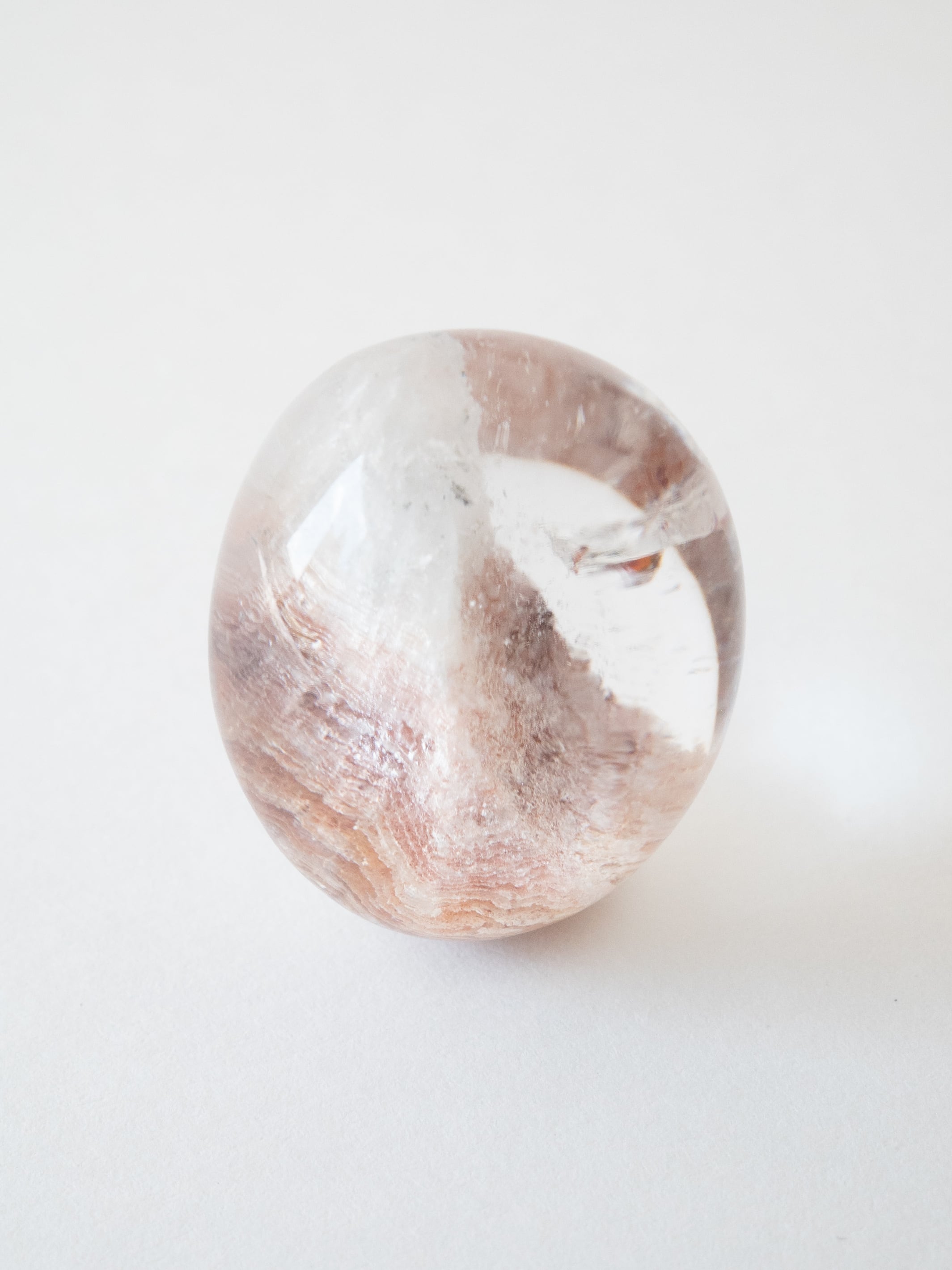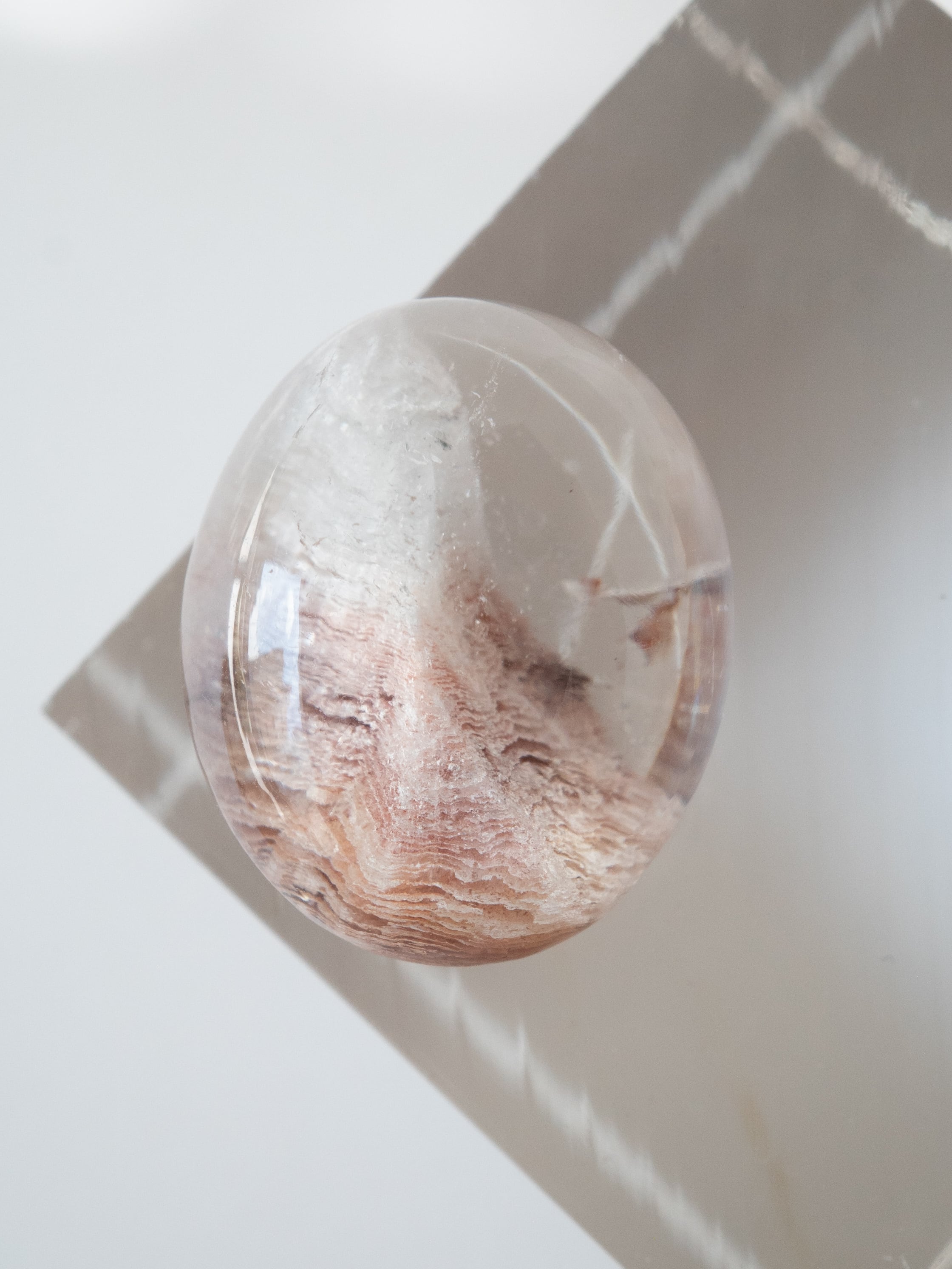 まるでミルフィーユの様に、インクルージョンが積層したガーデンクォーツです。淡いピンク系〜ホワイト系の色合いも可愛らしく、探してもなかなか見つからない、珍しいタイプです。