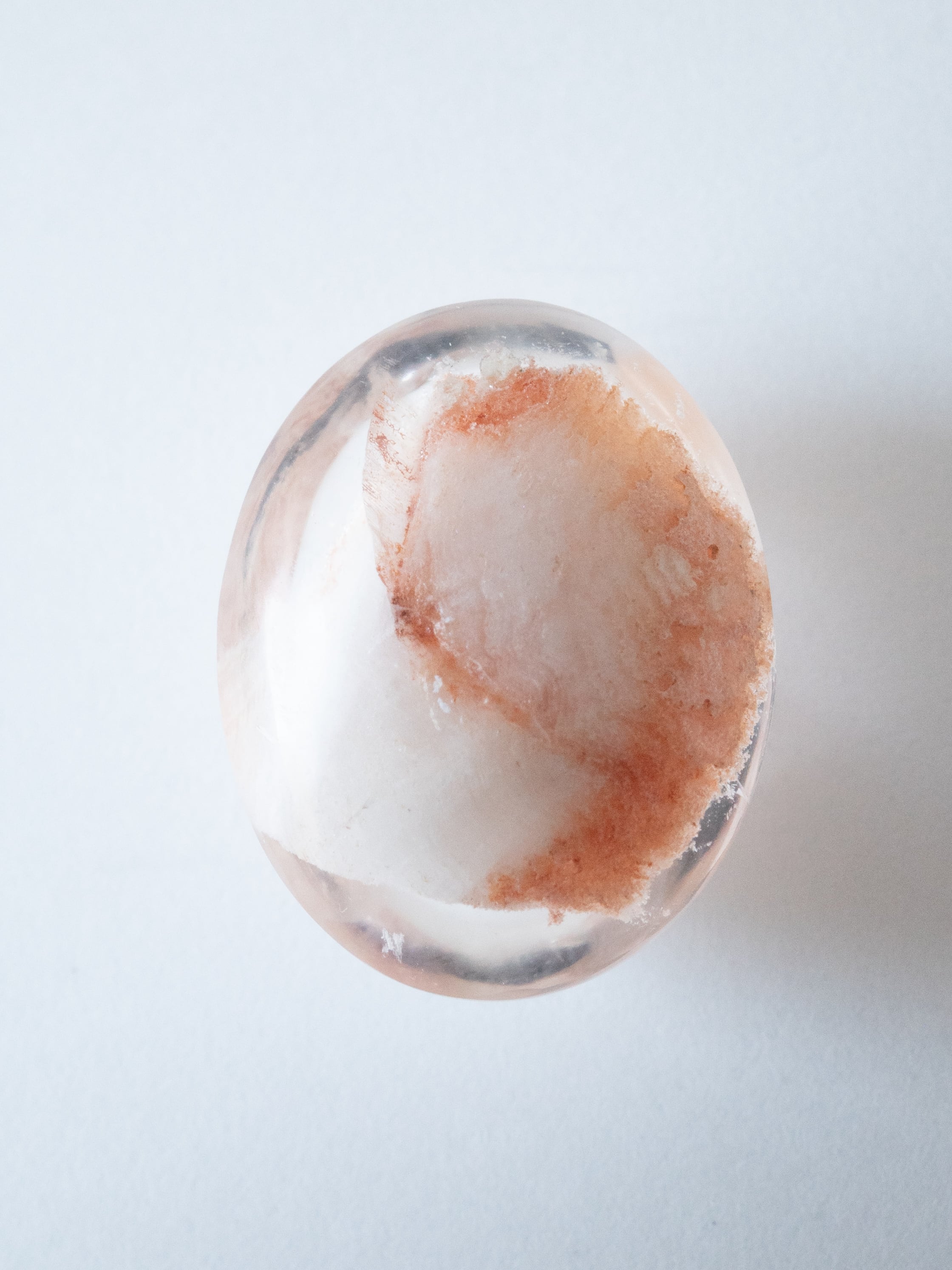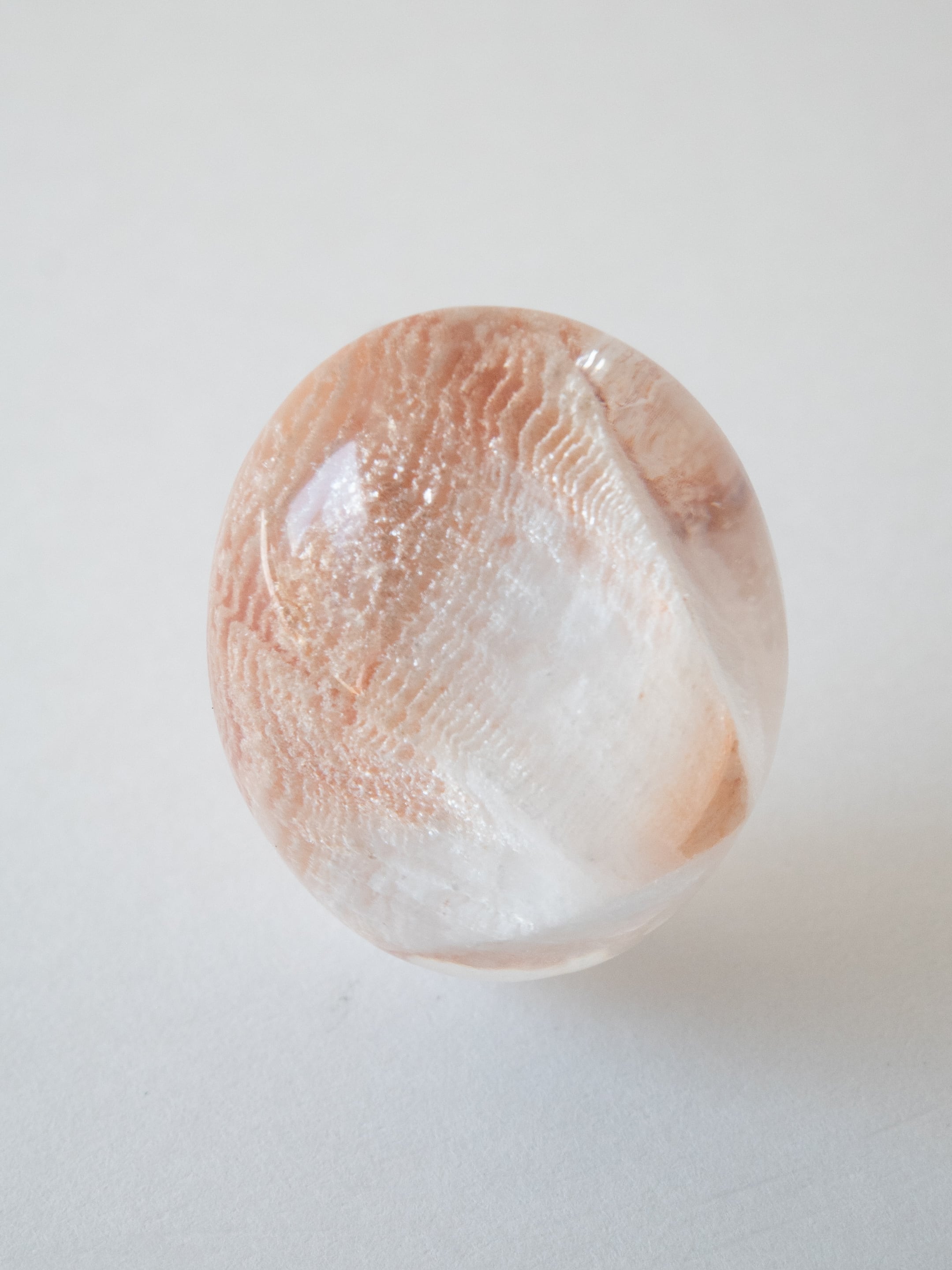 まるでミルフィーユの様に、インクルージョンが積層したガーデンクォーツです。淡いピンク系〜ホワイト系の色合いも可愛らしく、探してもなかなか見つからない、珍しいタイプです。