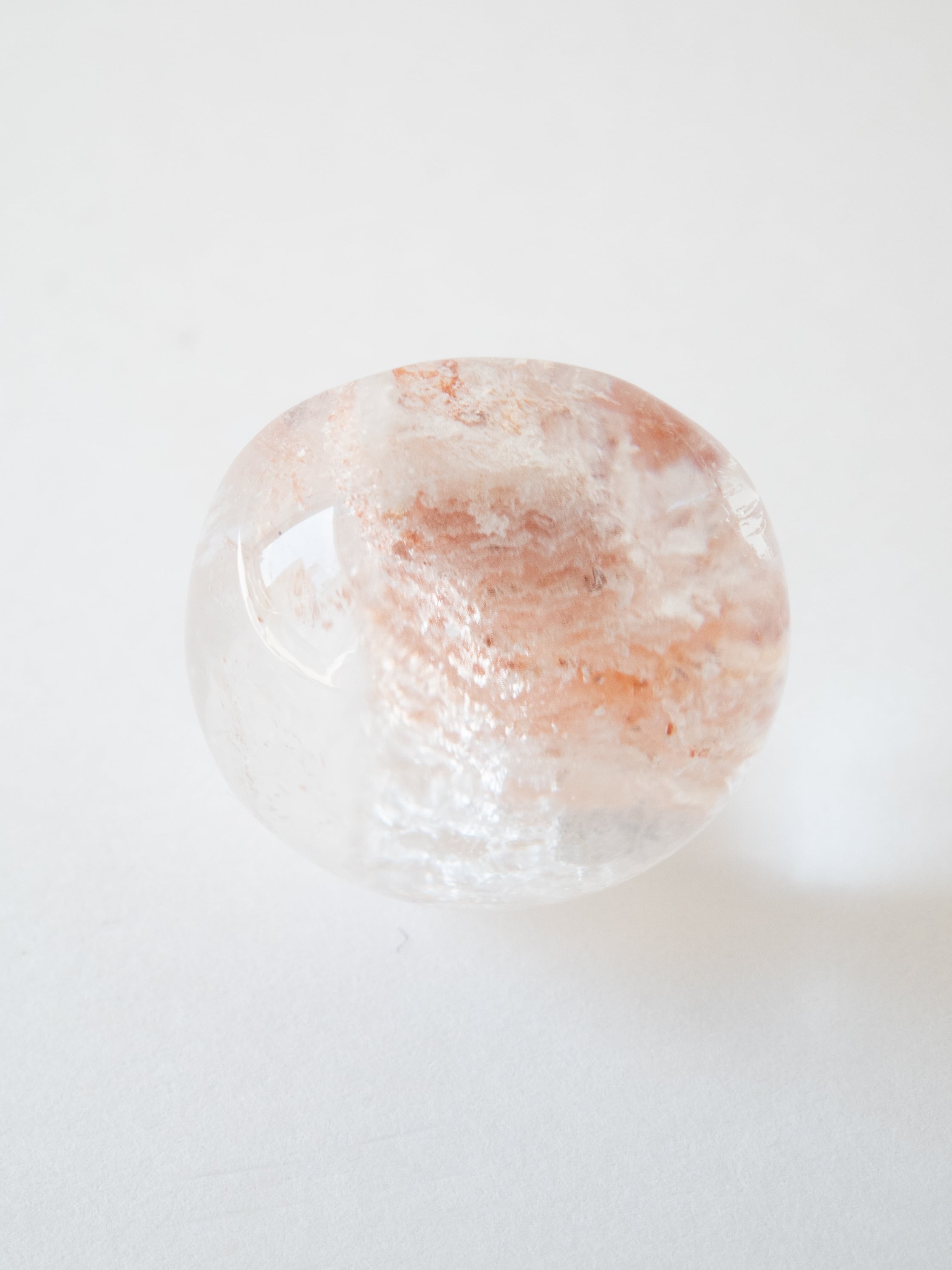 まるでミルフィーユの様に、インクルージョンが積層したガーデンクォーツです。淡いピンク系〜ホワイト系の色合いも可愛らしく、探してもなかなか見つからない、珍しいタイプです。