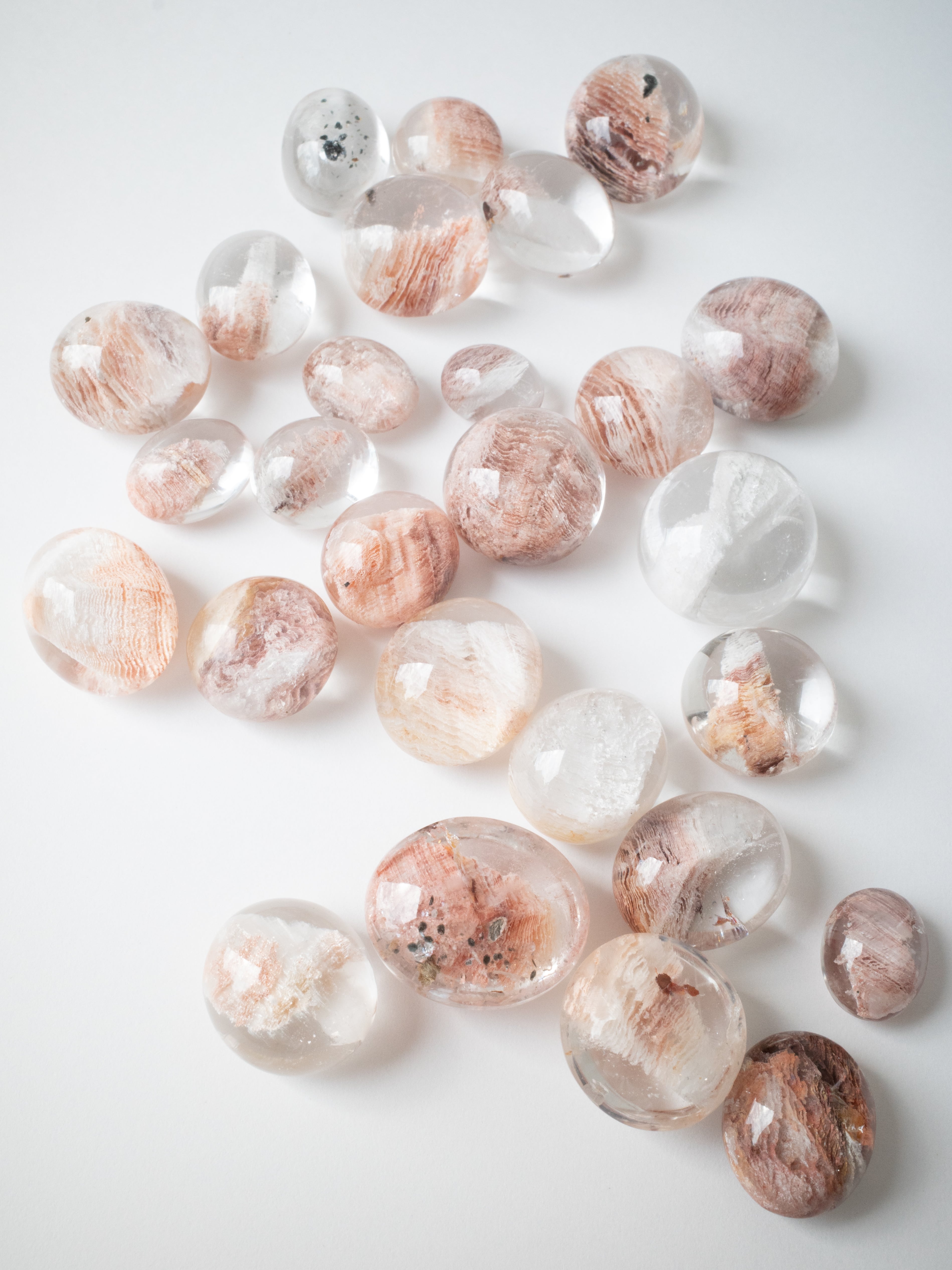 まるでミルフィーユの様に、インクルージョンが積層したガーデンクォーツです。淡いピンク系〜ホワイト系の色合いも可愛らしく、探してもなかなか見つからない、珍しいタイプです。