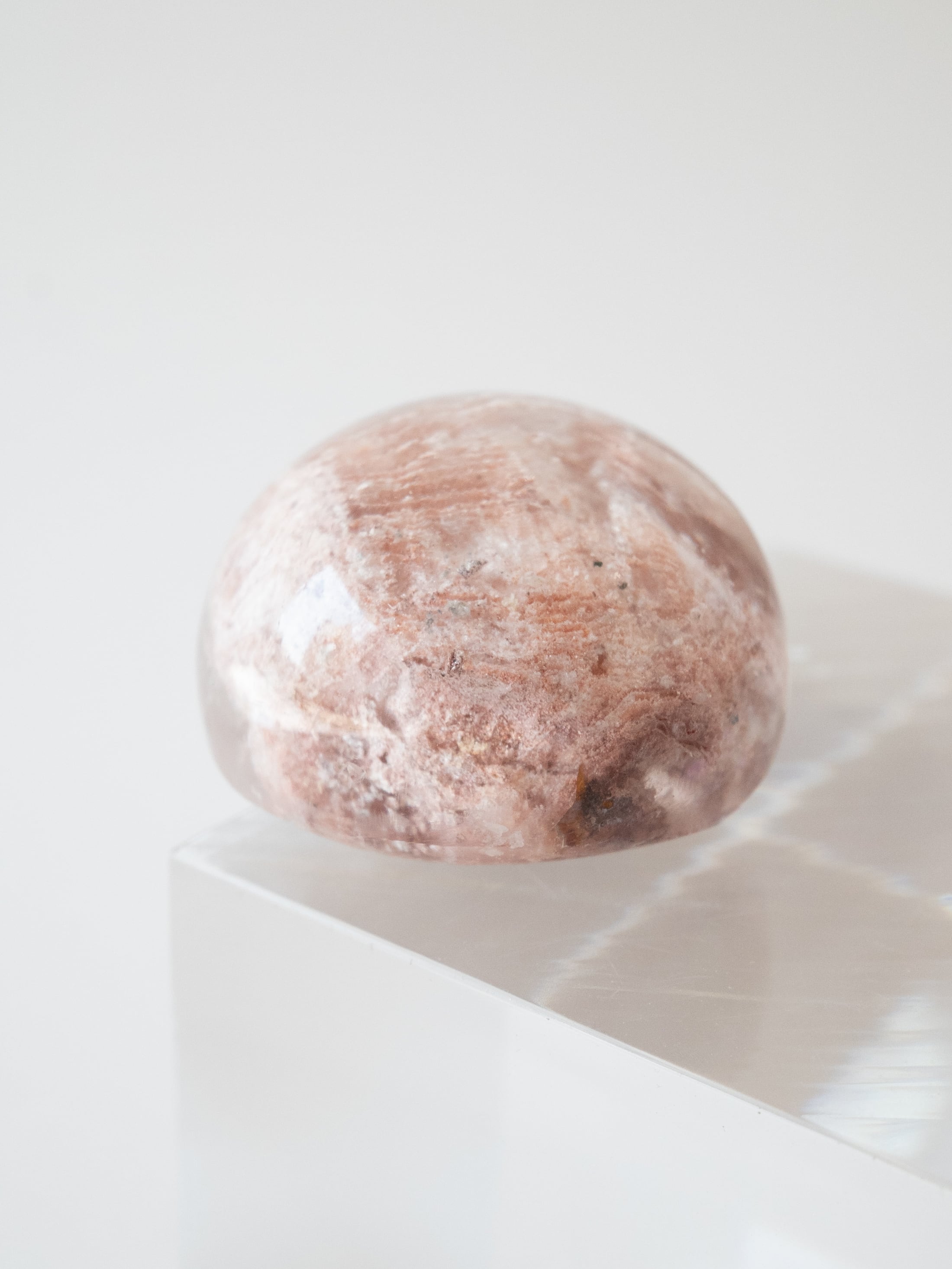This Garden Quartz features inclusions layered like a mille-feuille. Its soft pink to white tones add a charming touch, making it a rare and hard-to-find type.