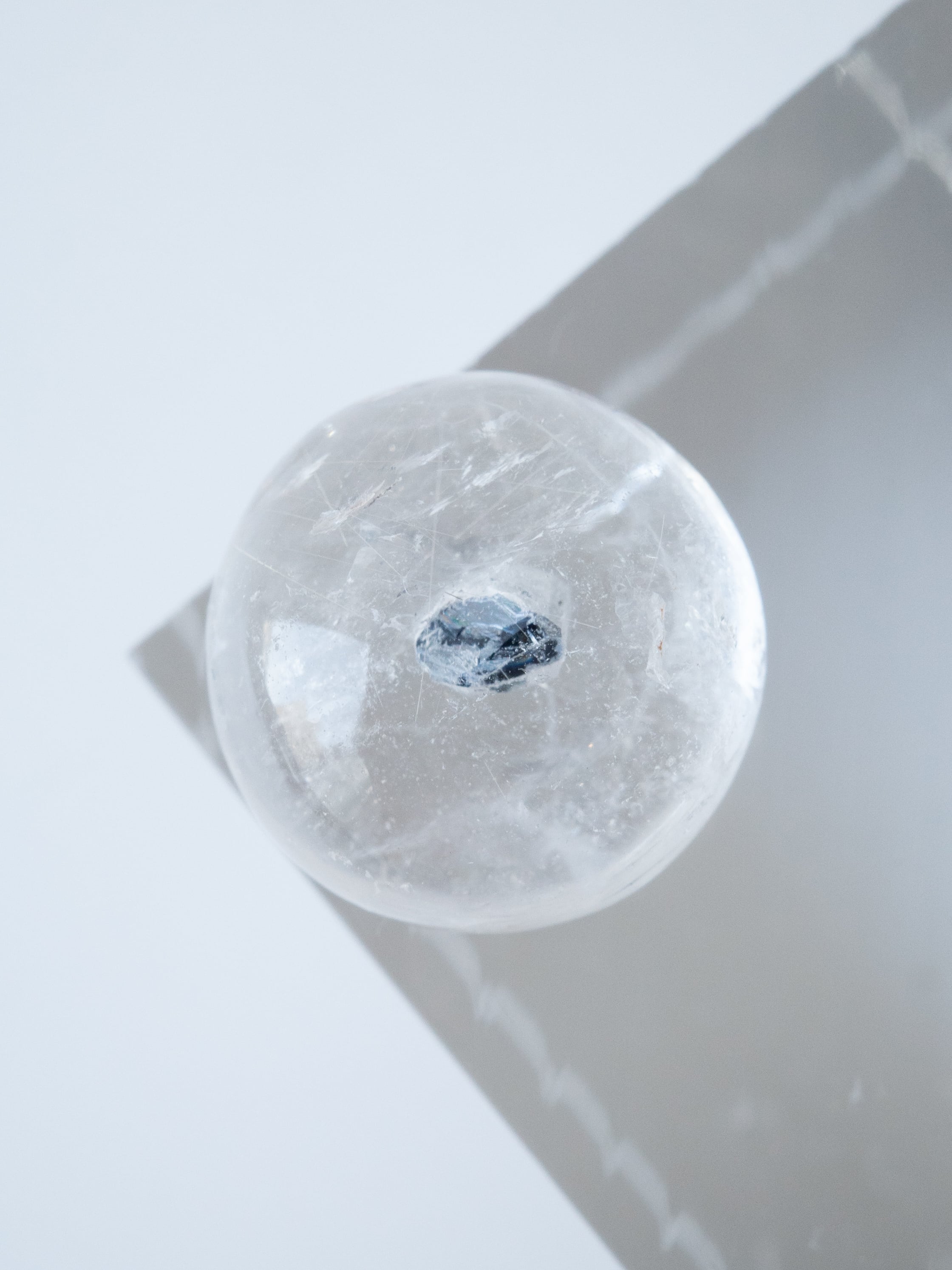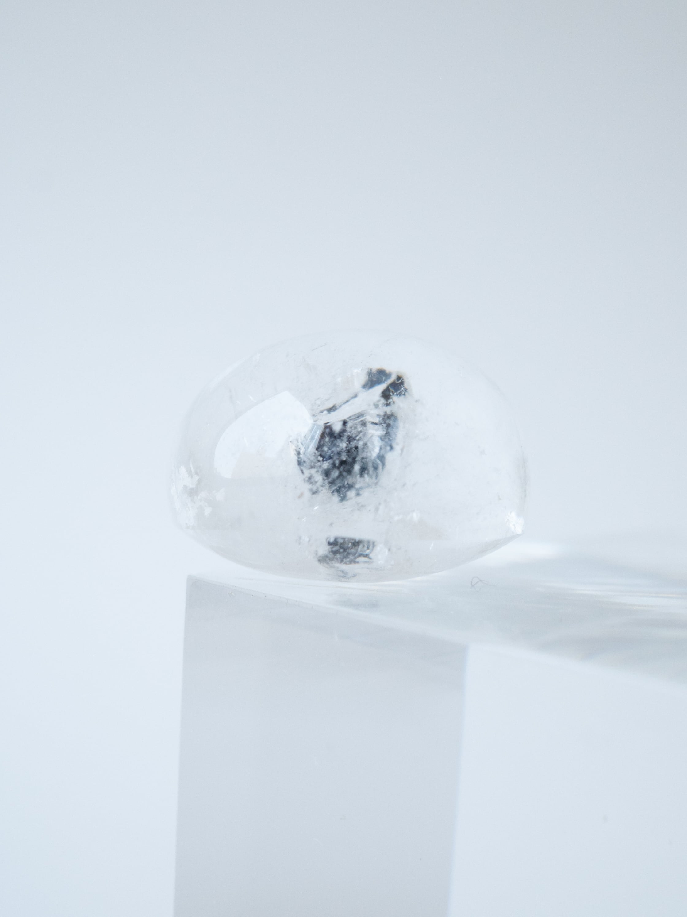 アナテース(鋭錐石)の結晶を内包した「アナテースインクォーツ」。アナテースはルチルやブルッカイトとの同じ酸化チタンから成り、形状の違う同質異像の鉱物です。産出量が少ないコレクターアイテム。是非内部の結晶を観察してお楽しみください。