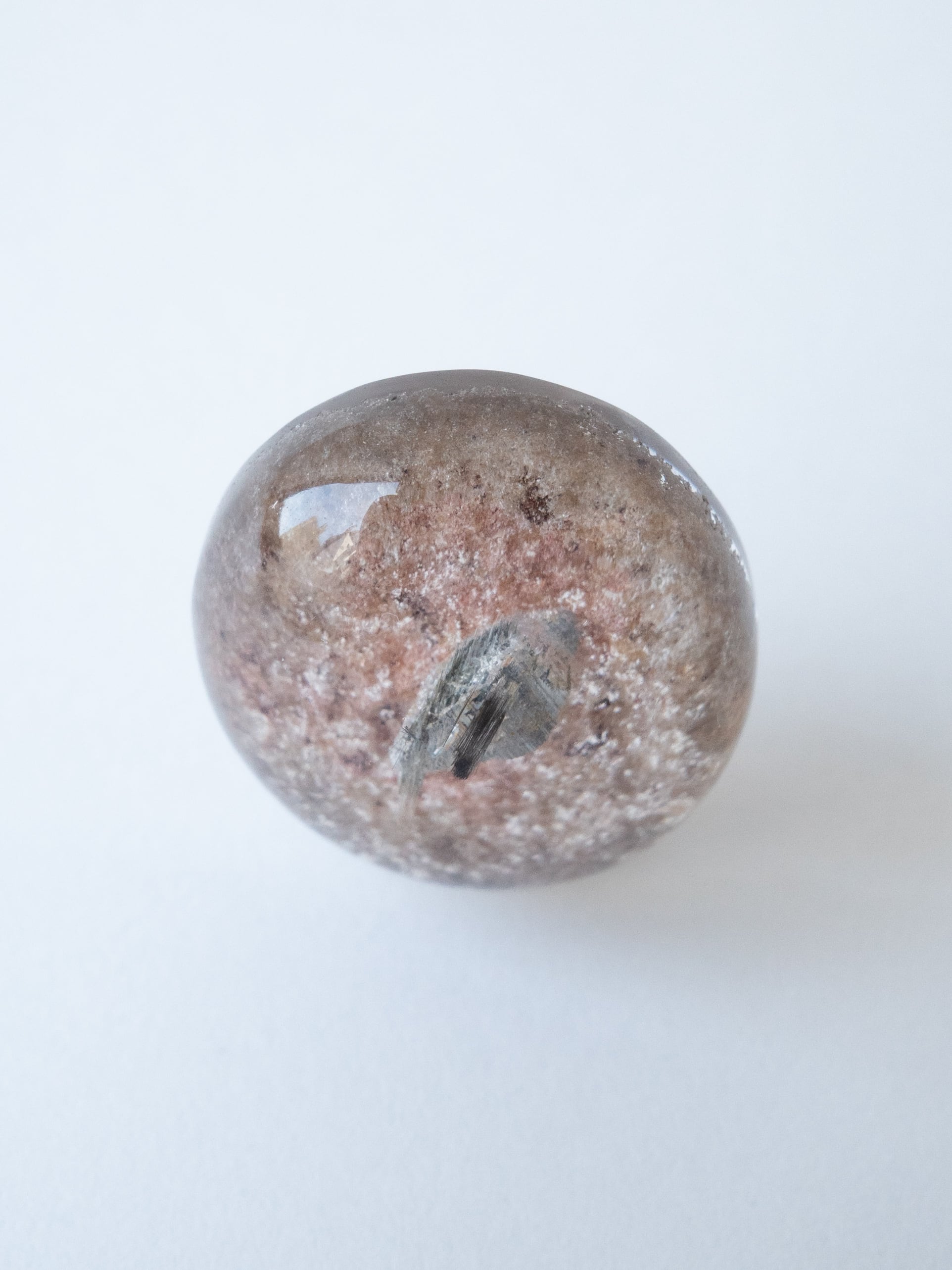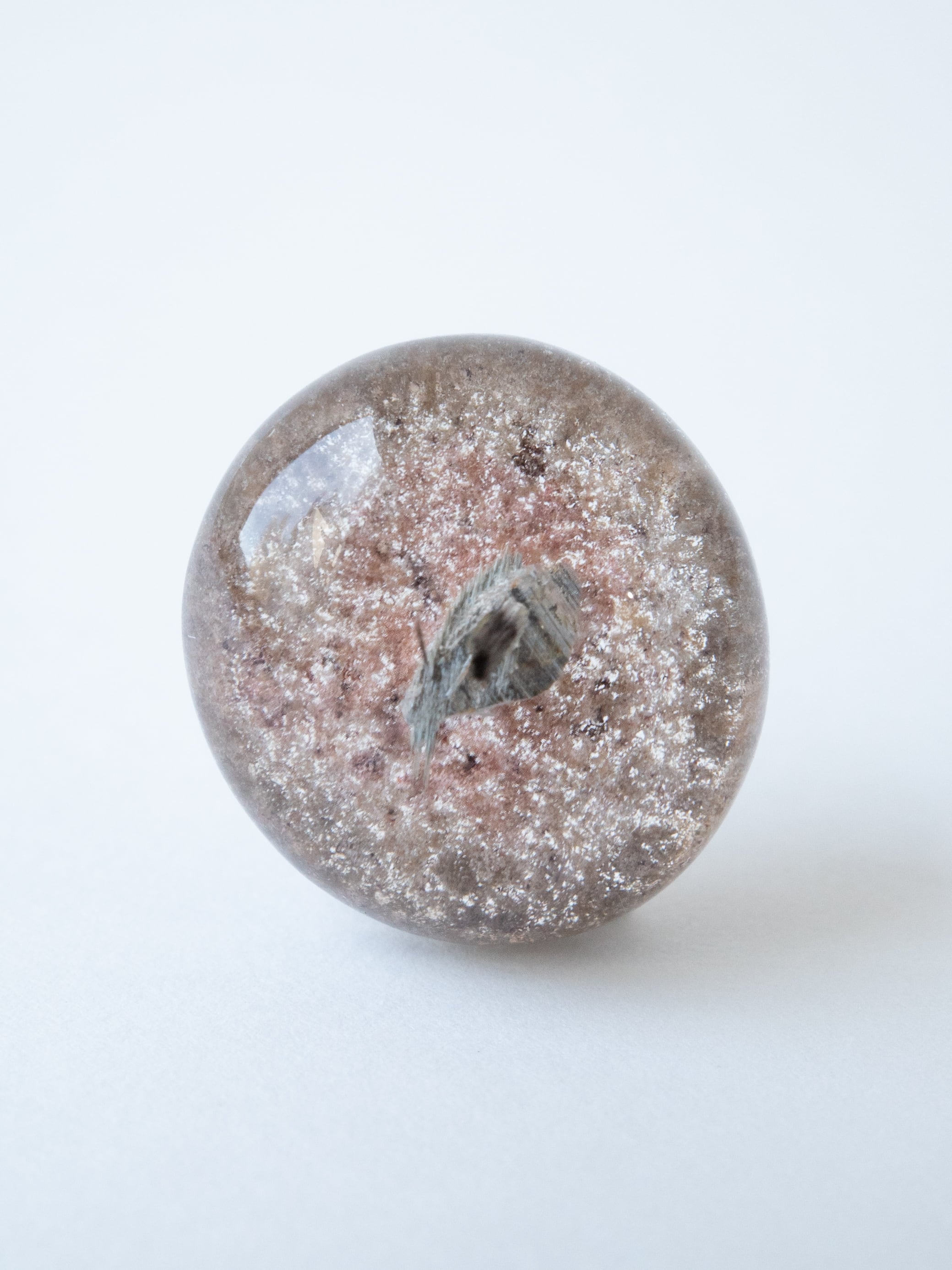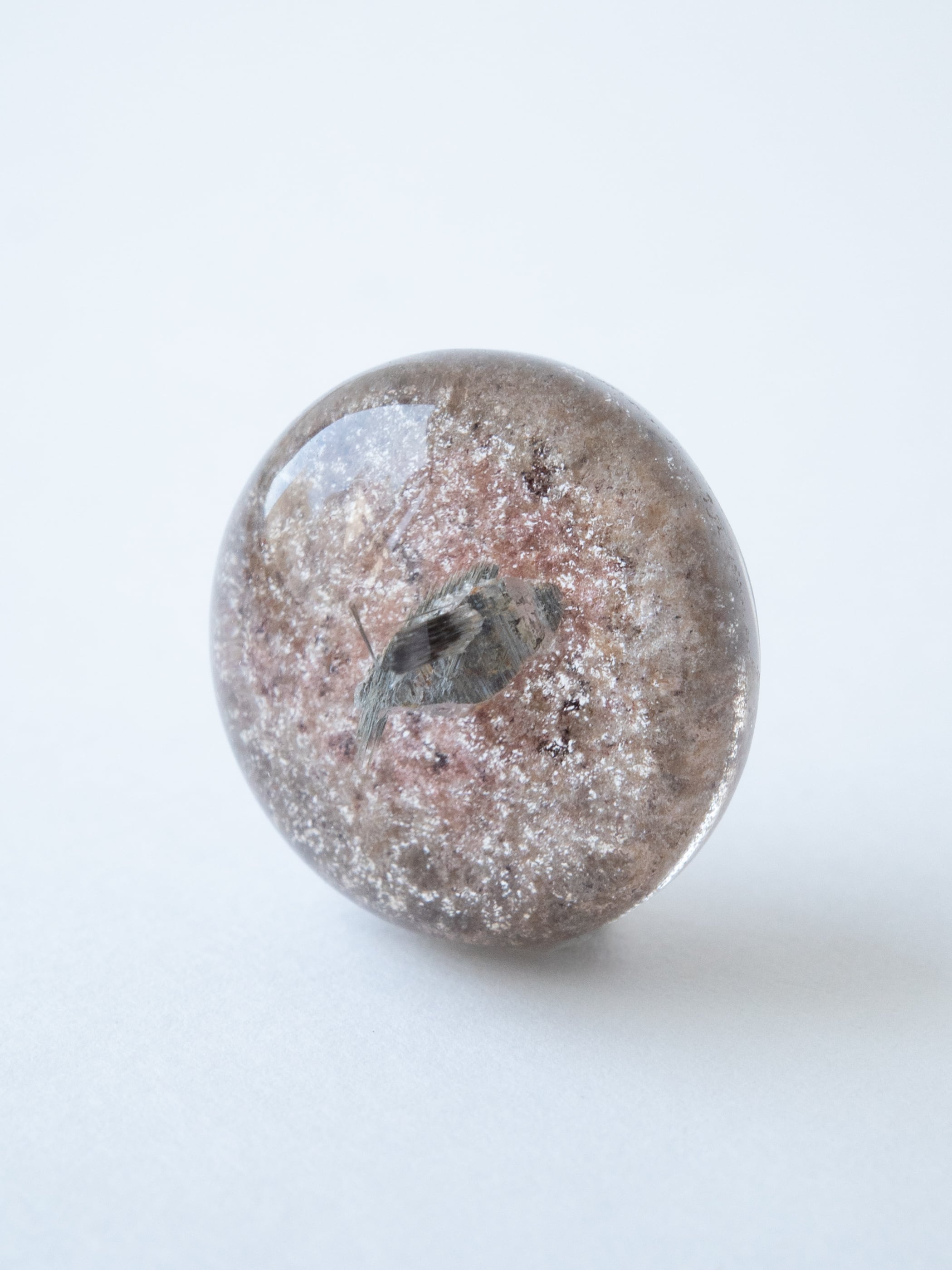 アナテース(鋭錐石)の結晶を内包した「アナテースインクォーツ」。アナテースはルチルやブルッカイトとの同じ酸化チタンから成り、形状の違う同質異像の鉱物です。産出量が少ないコレクターアイテム。是非内部の結晶を観察してお楽しみください。
