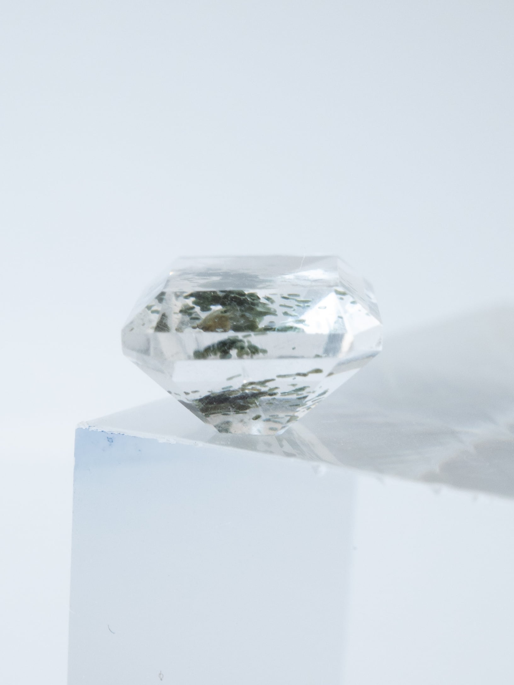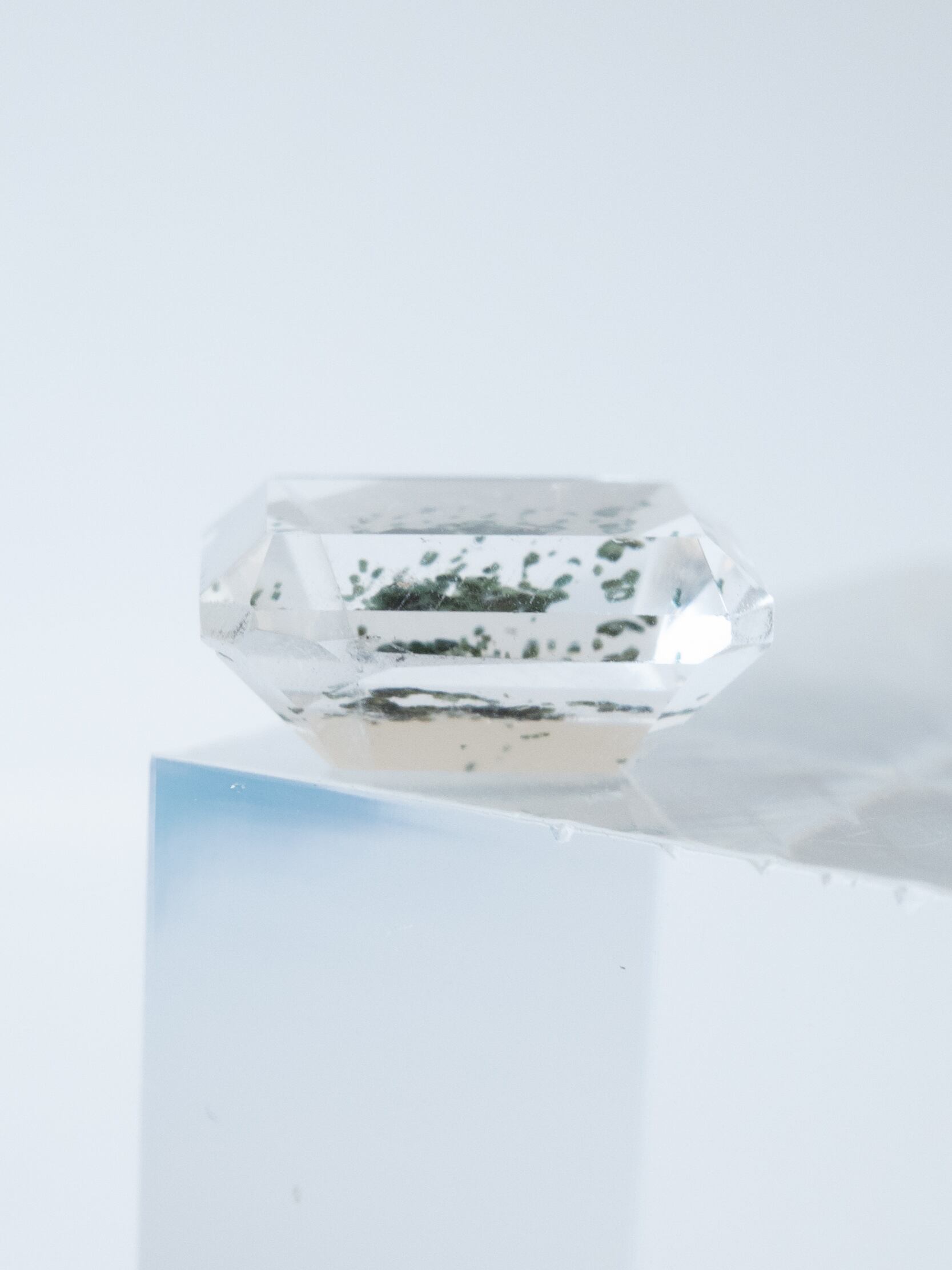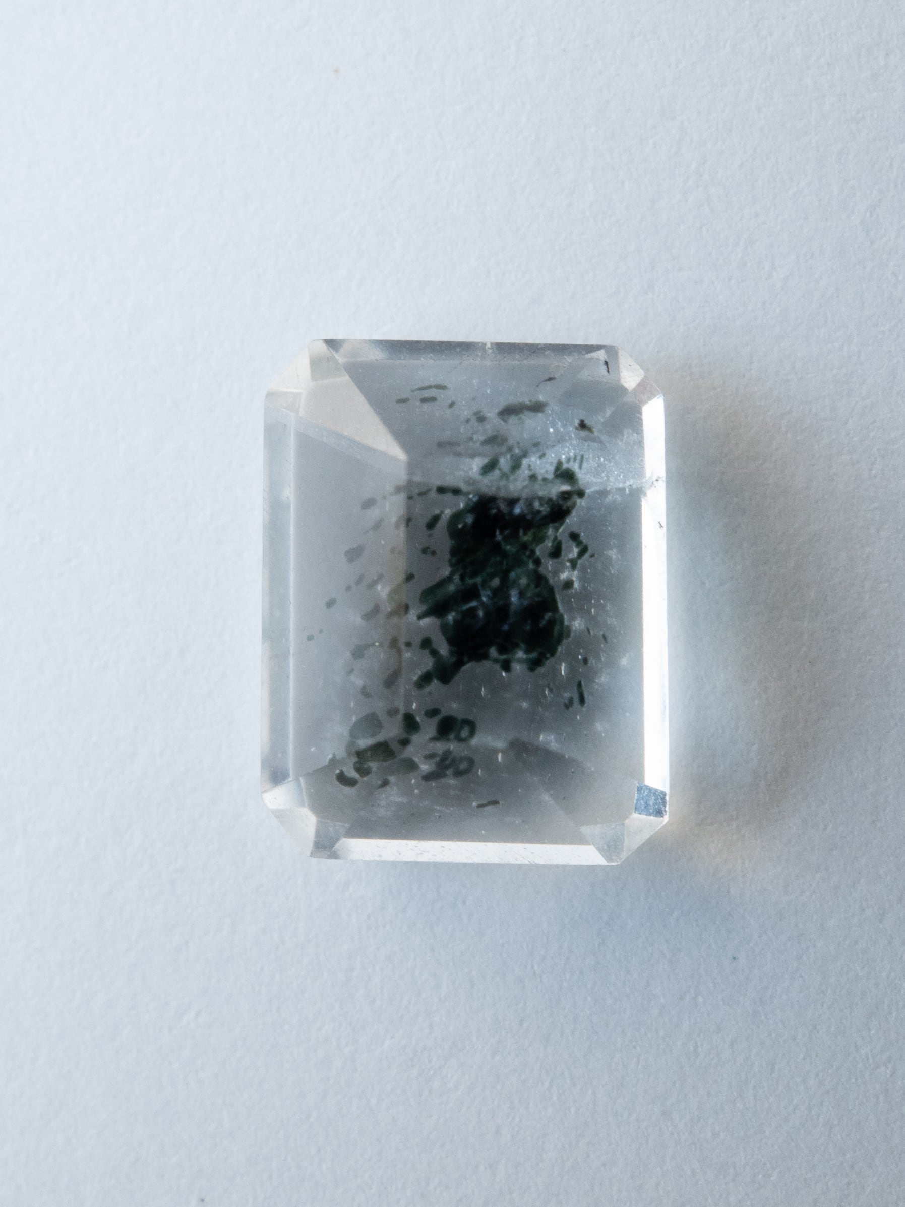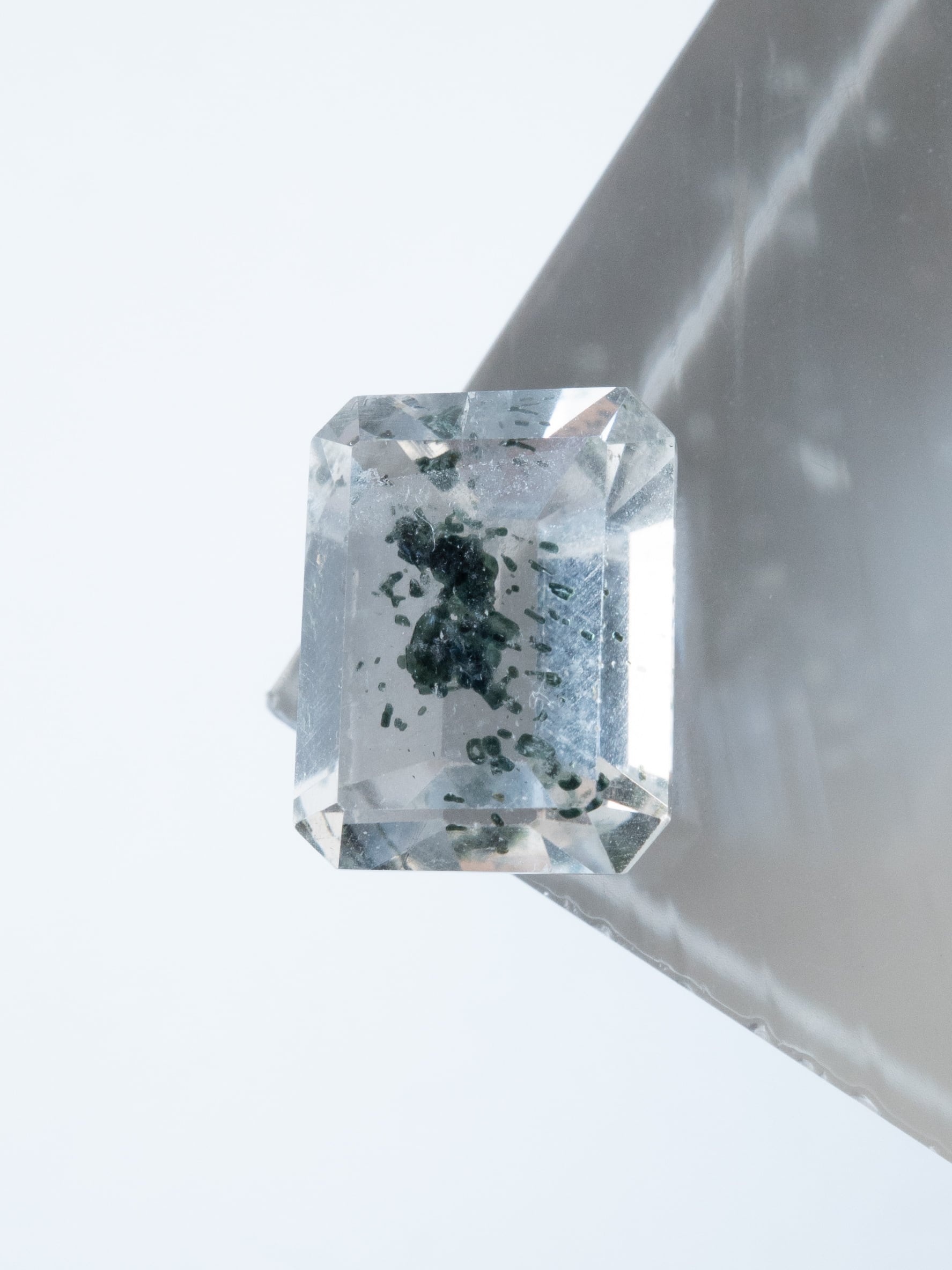 “This is a Tremolite Inclusion Quartz with captivating deep green inclusions.”