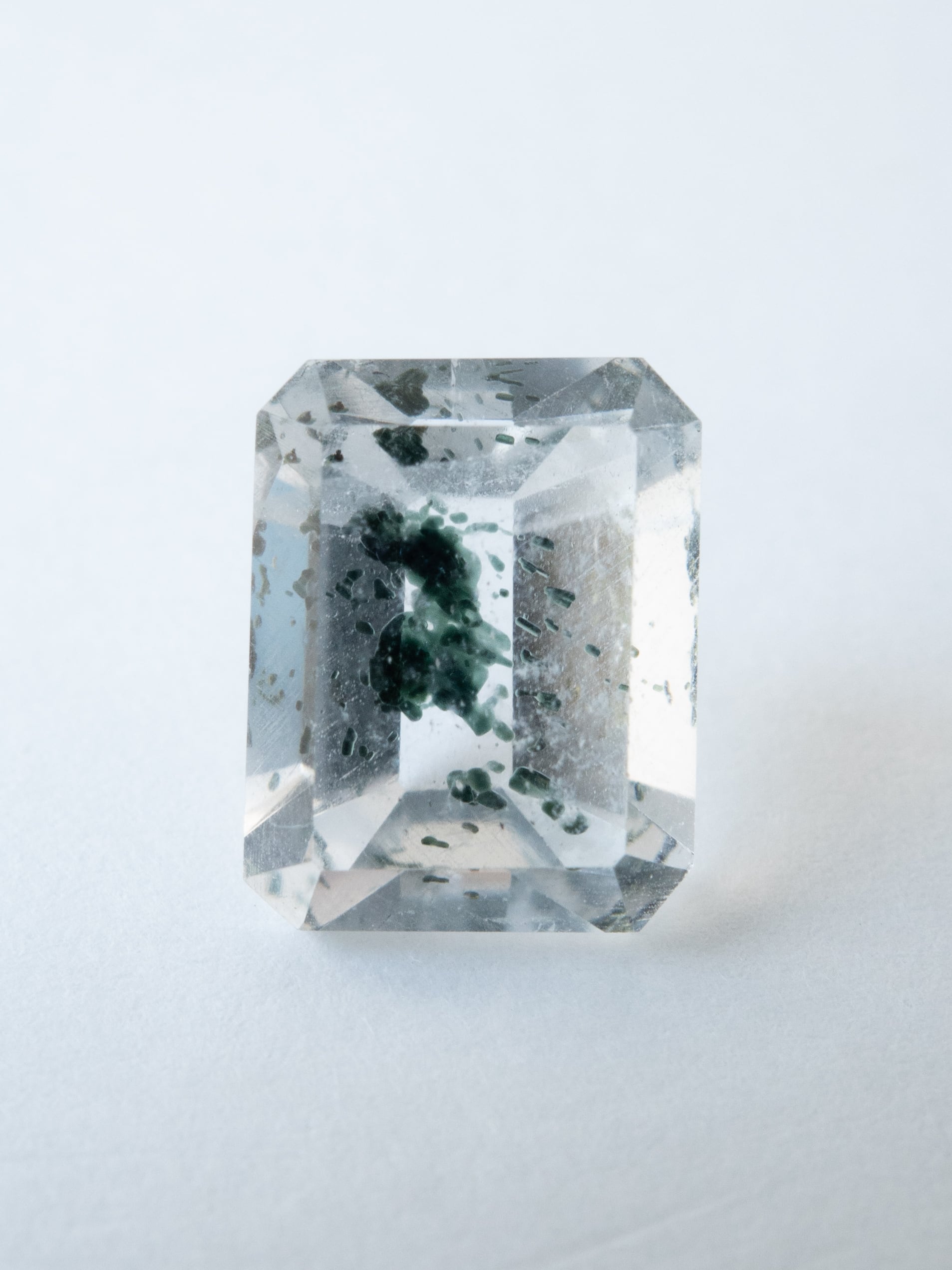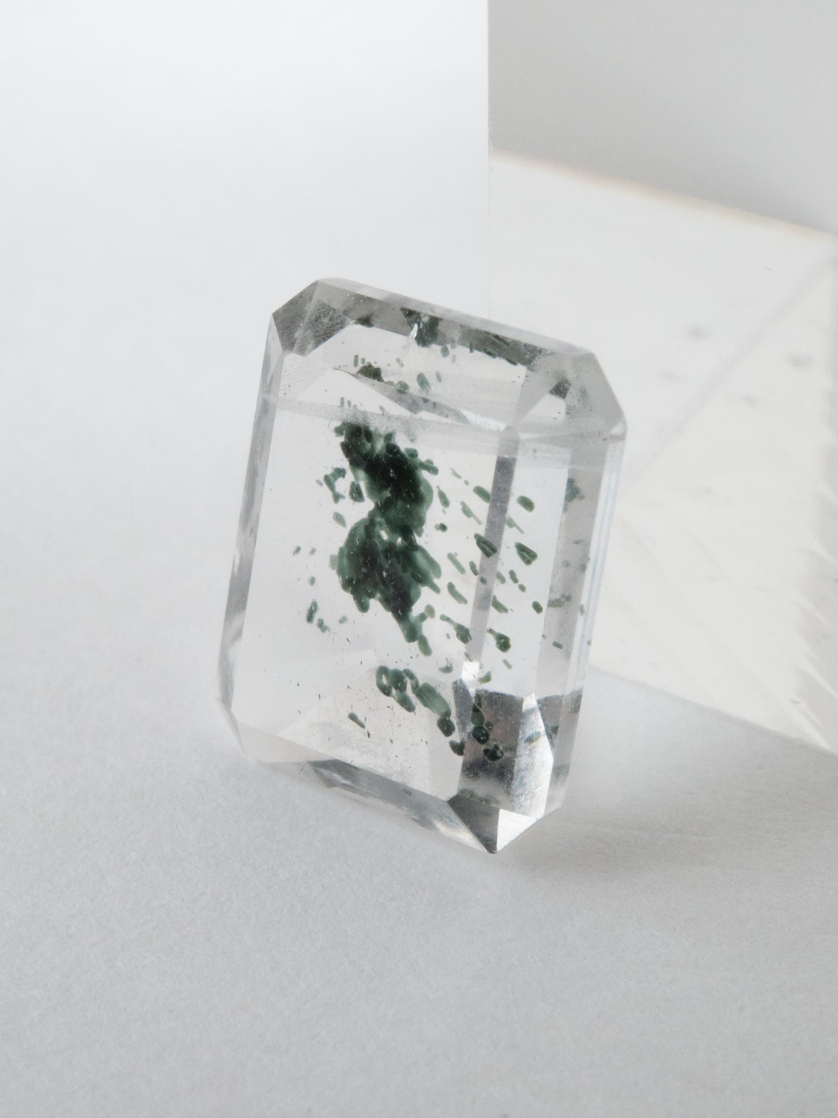 深いグリーンのインクルージョンが魅力のトレモライトインクォーツです。