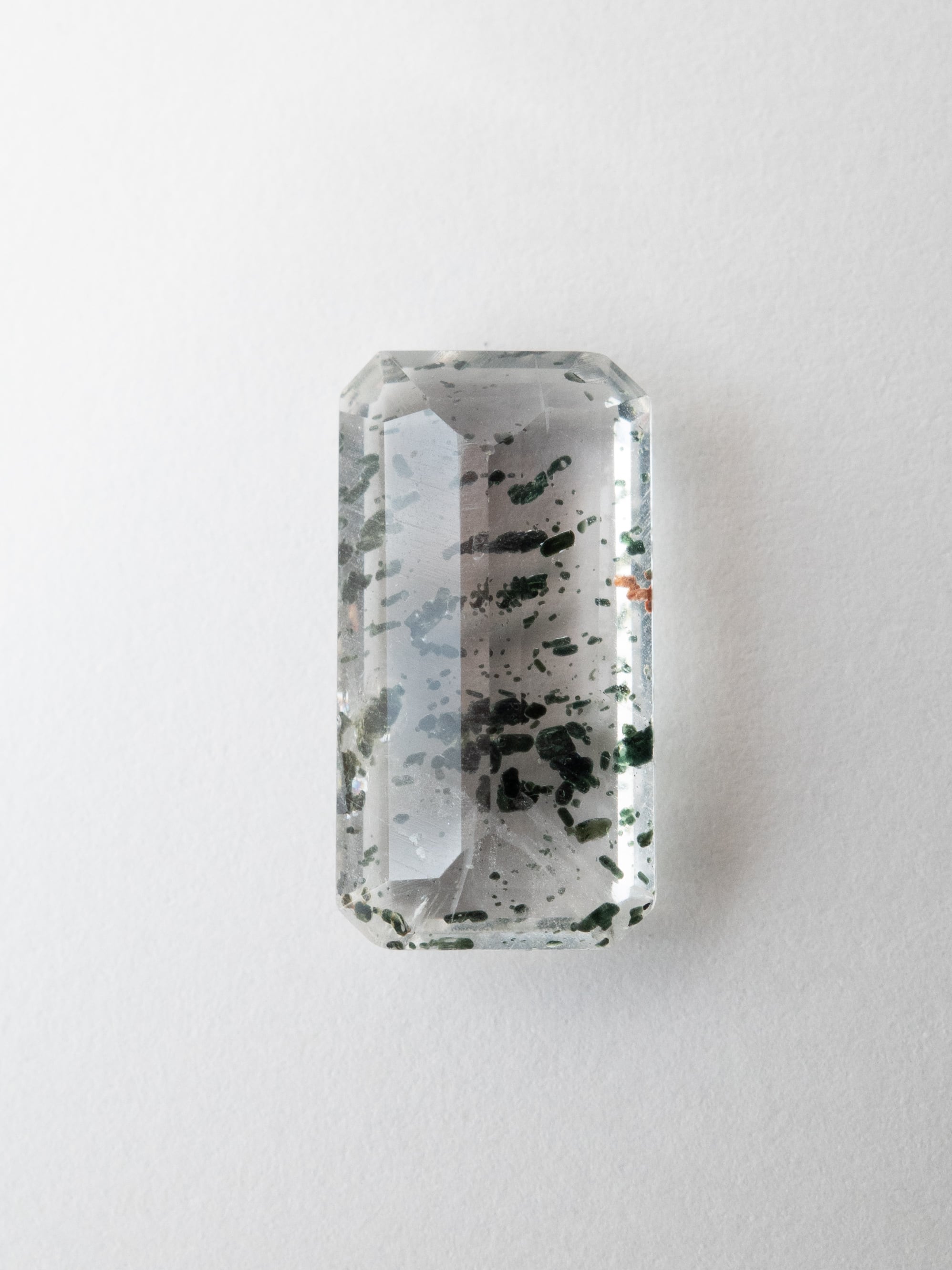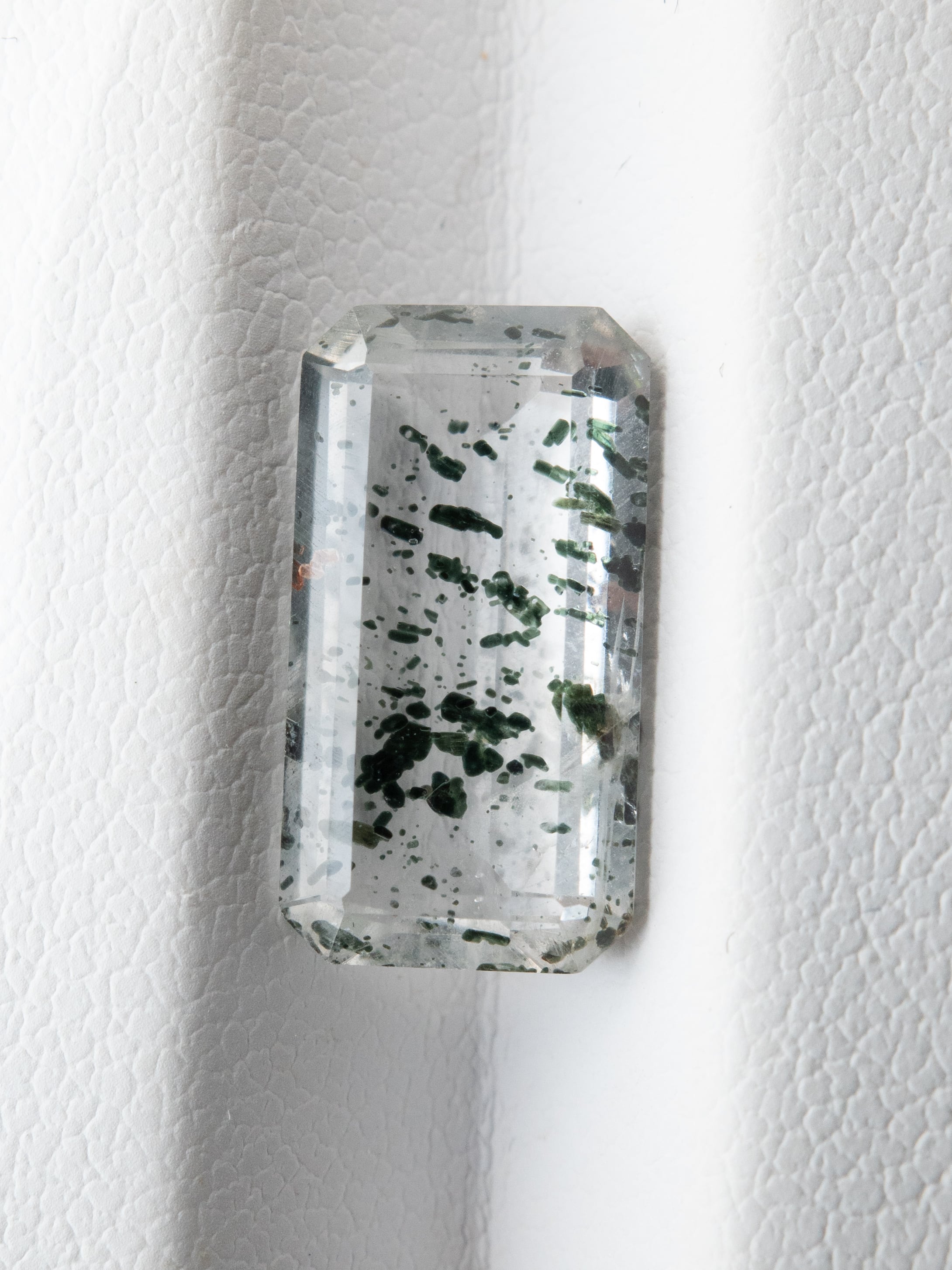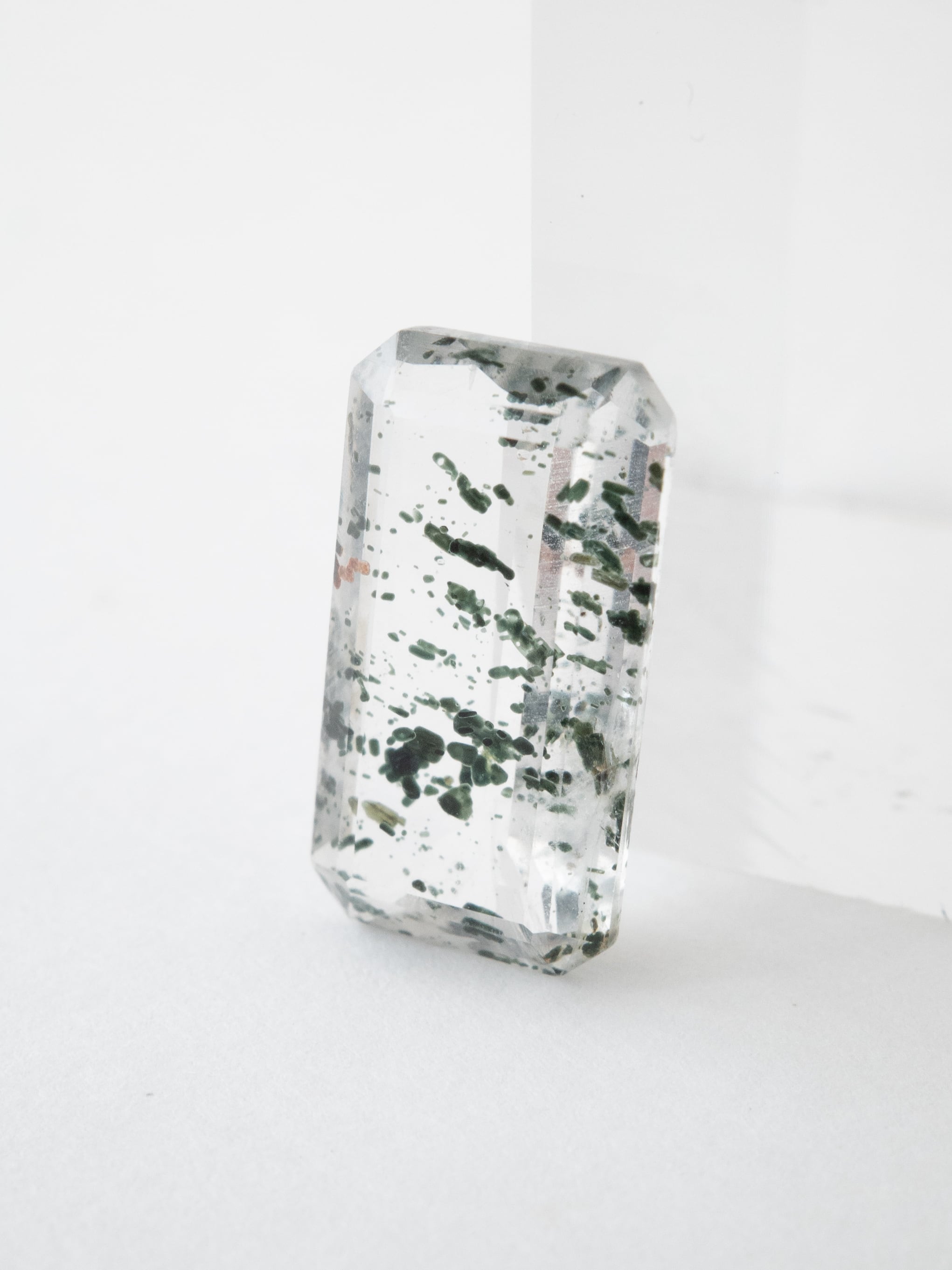 “This is a Tremolite Inclusion Quartz with captivating deep green inclusions.”