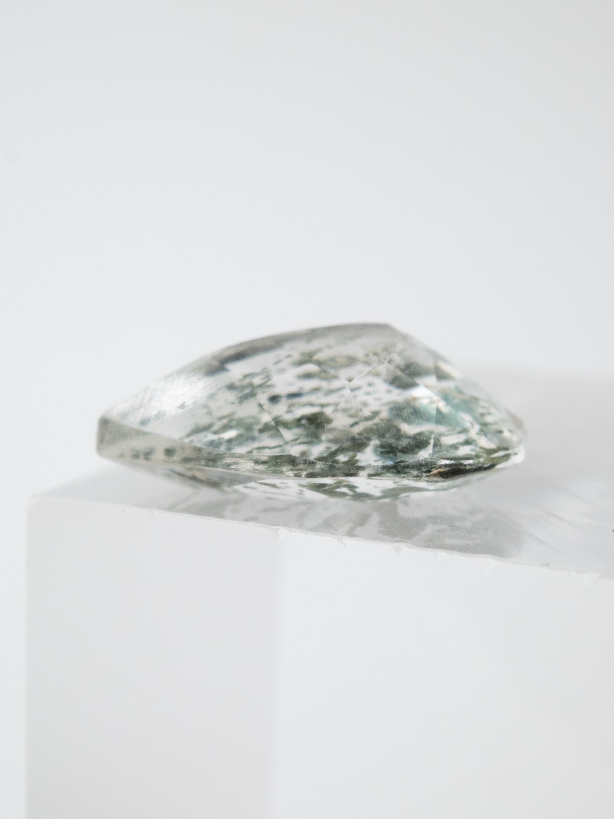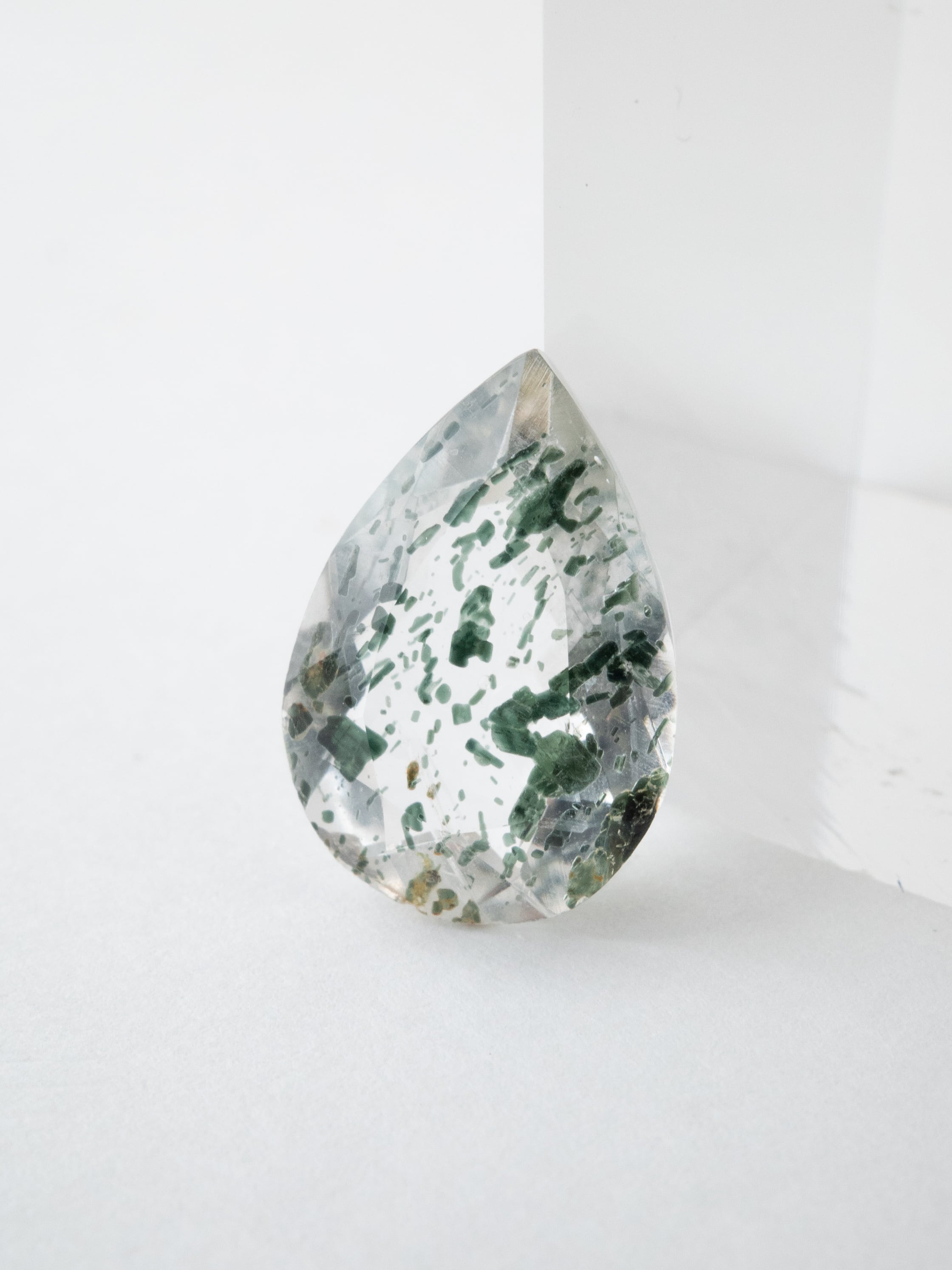 “This is a Tremolite Inclusion Quartz with captivating deep green inclusions.”