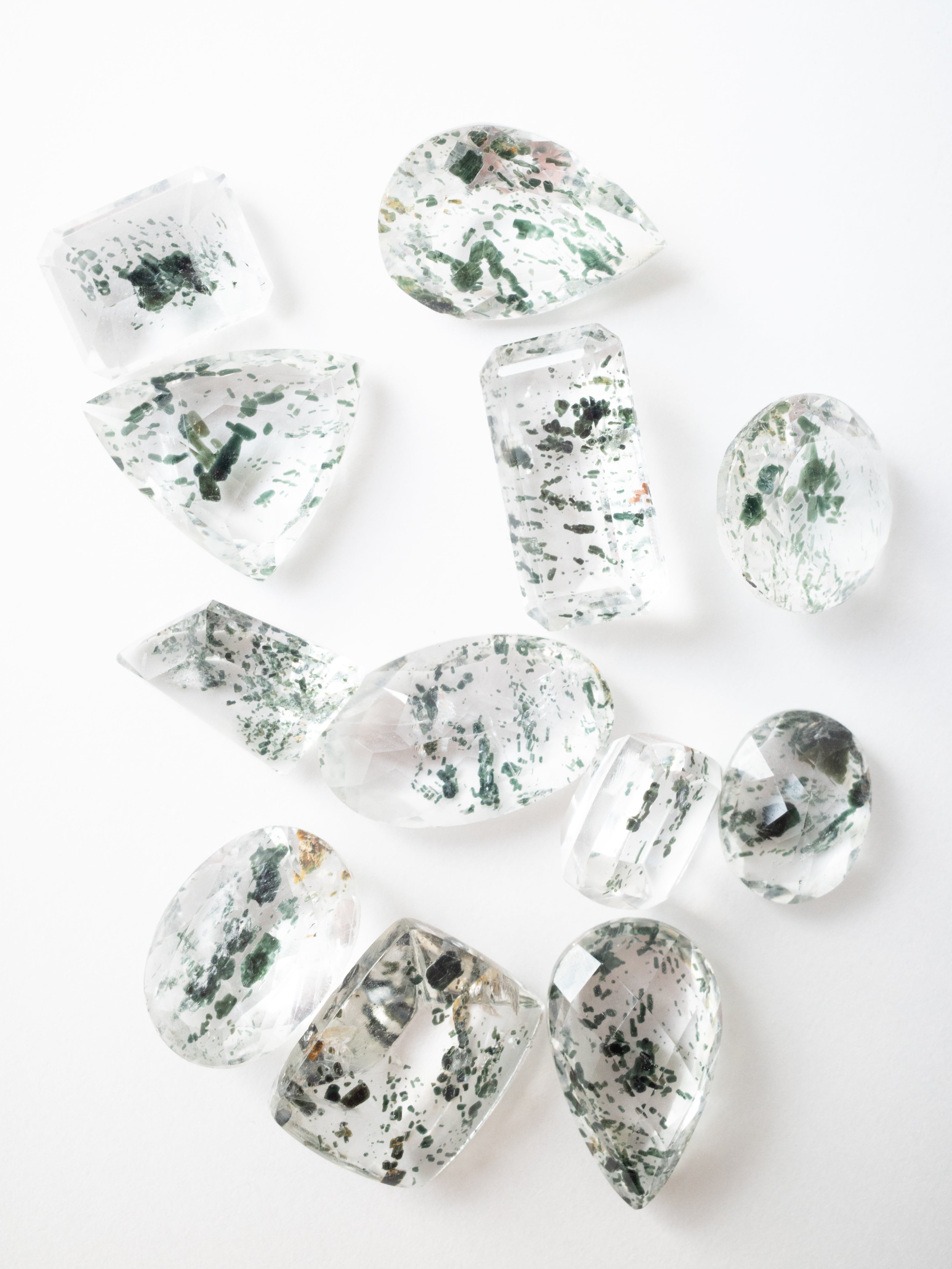 “This is a Tremolite Inclusion Quartz with captivating deep green inclusions.”