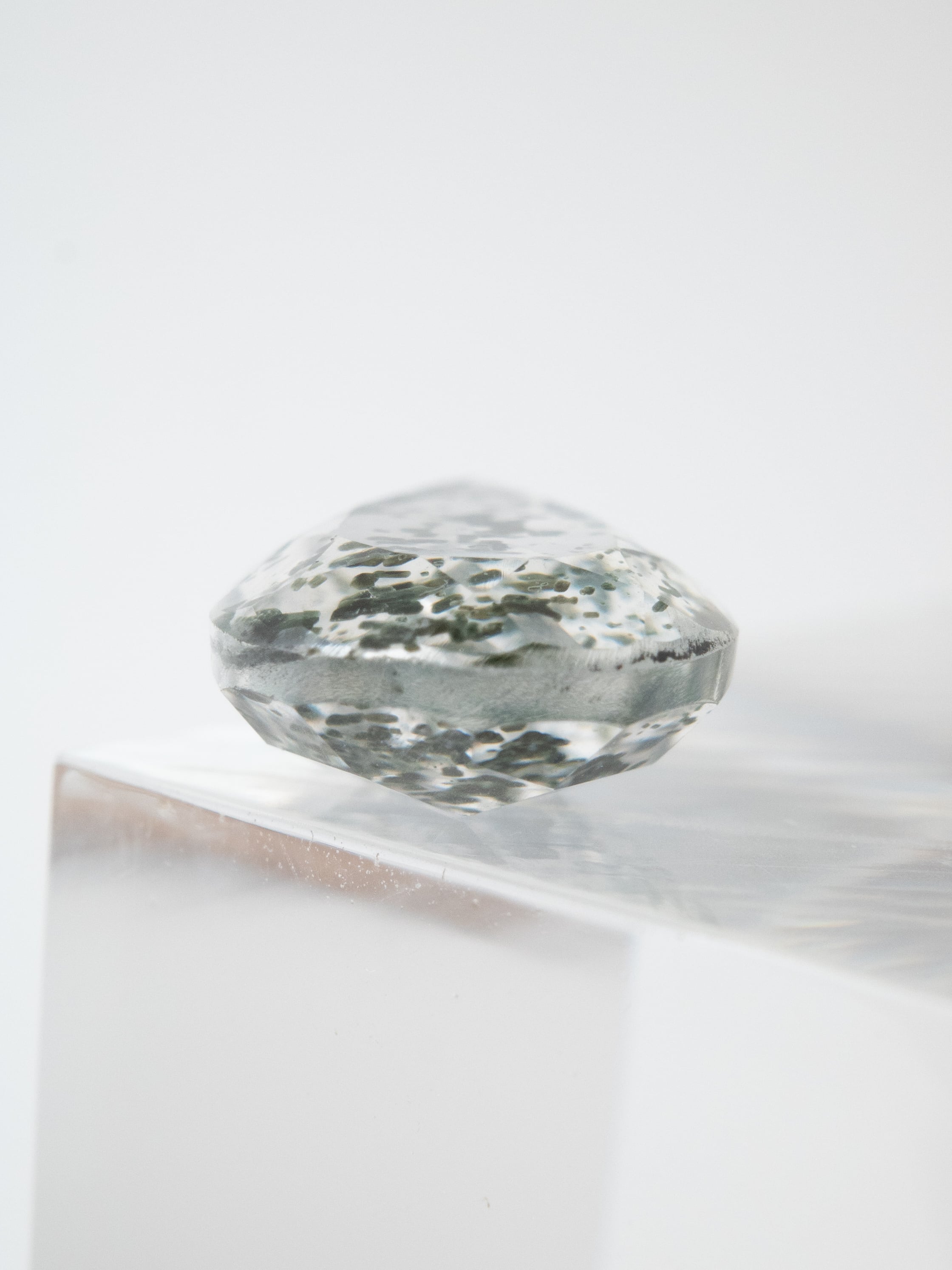 “This is a Tremolite Inclusion Quartz with captivating deep green inclusions.”