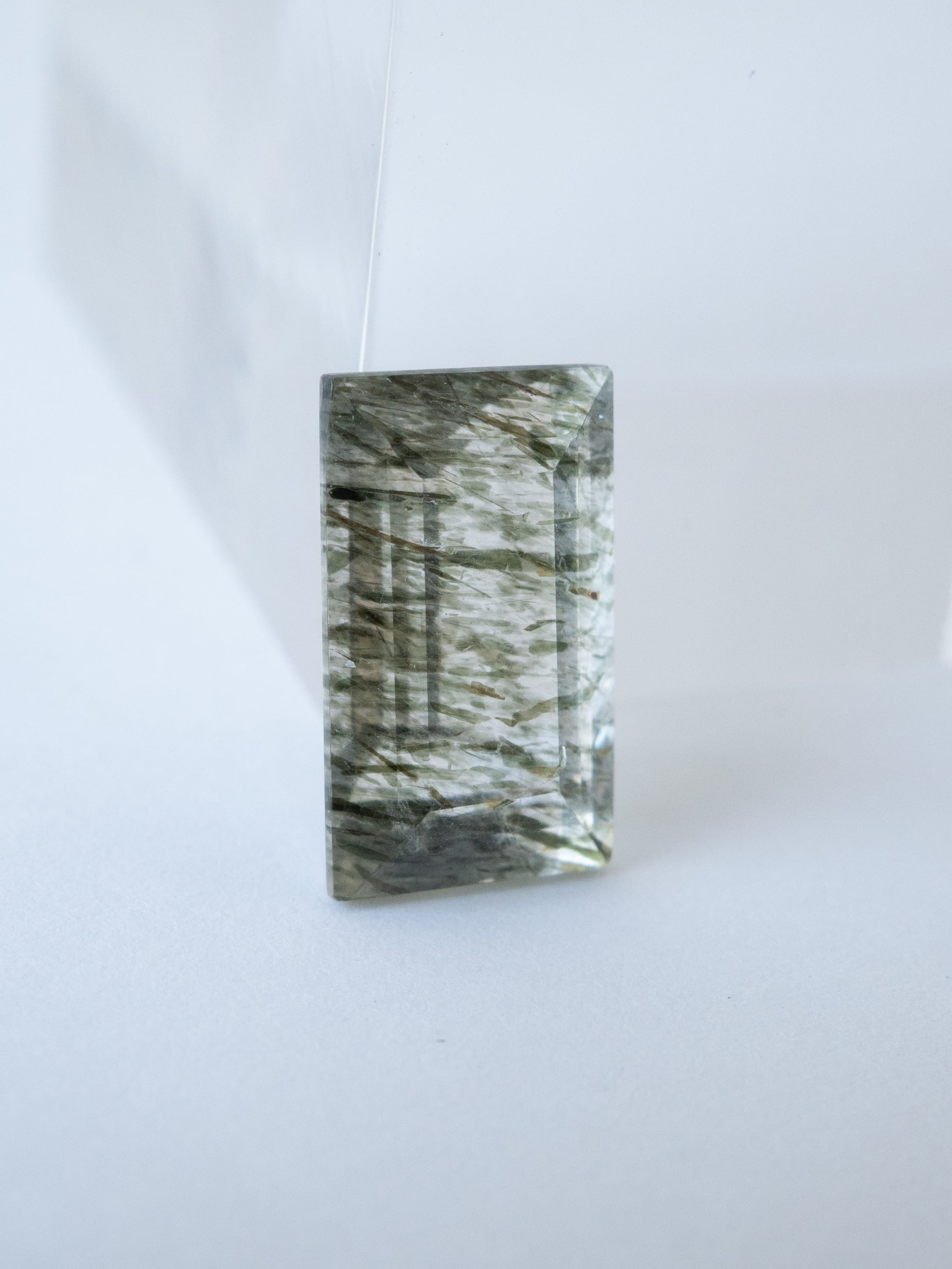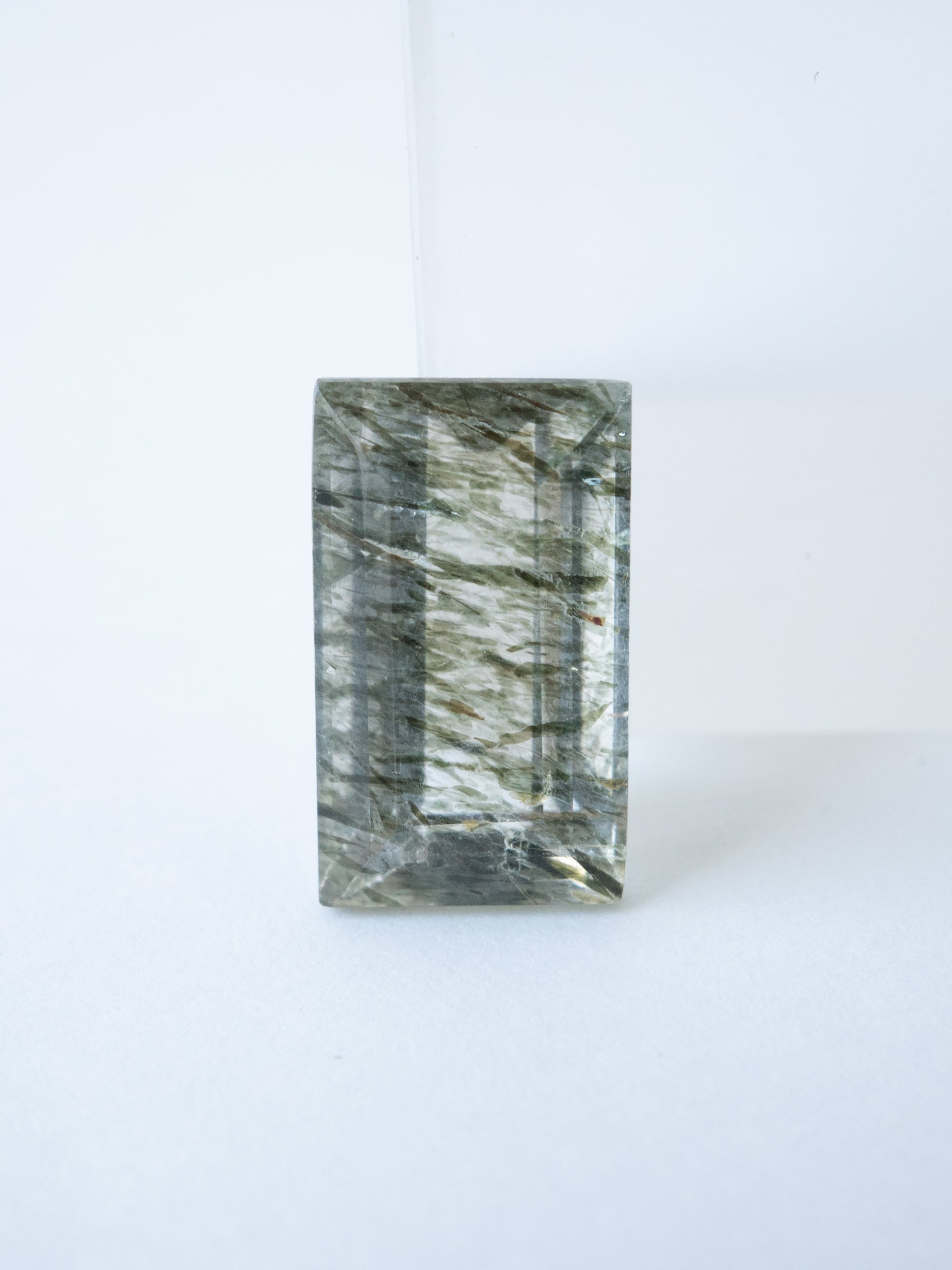和名で緑簾石と呼ばれるエピドートを内包したエピドートインクォーツ。太い結晶が入ったものは竹のように見えたり、細い結晶が多く入ったものは、その見た目から別名『草入り水晶』とも呼ばれています。