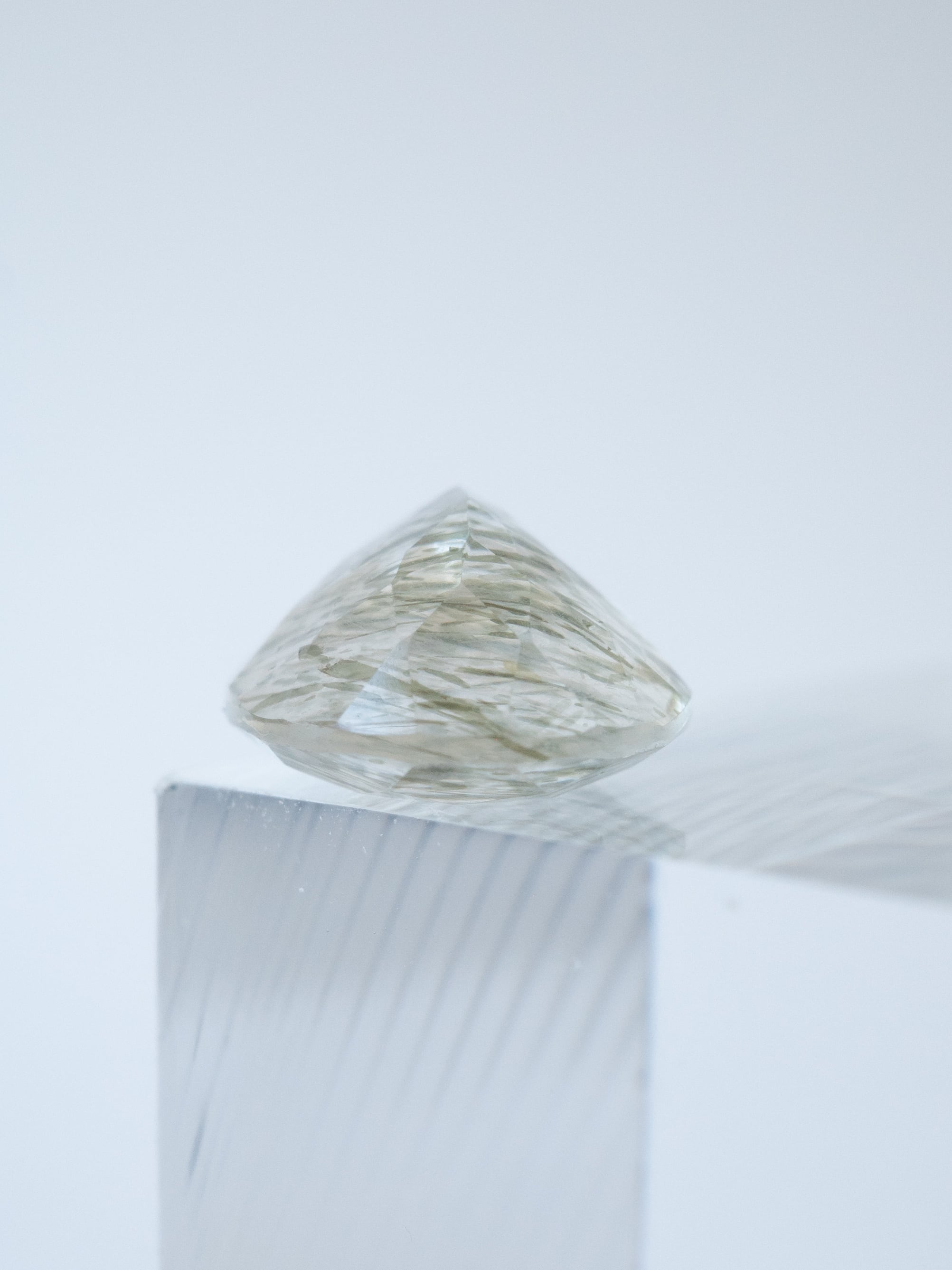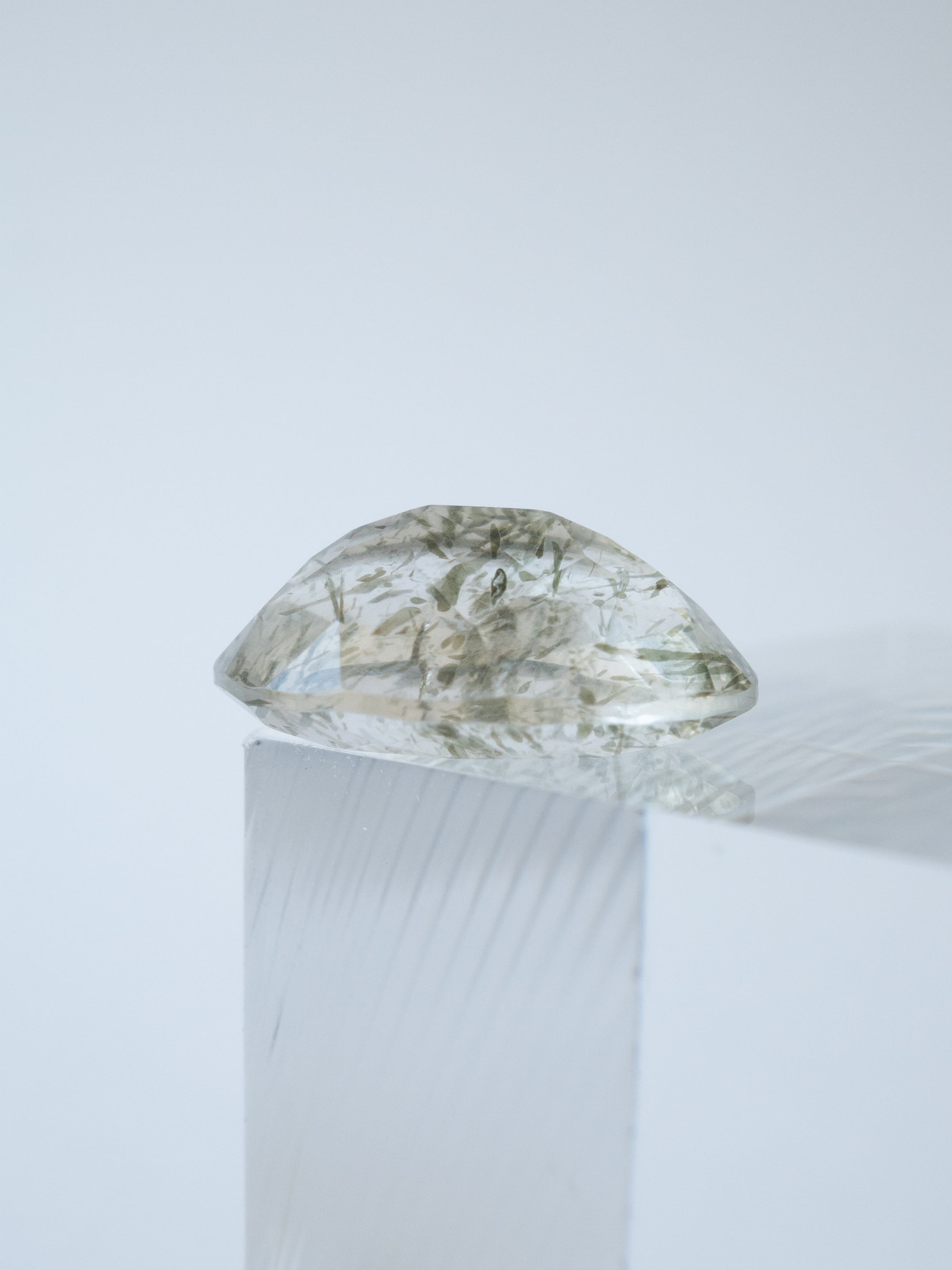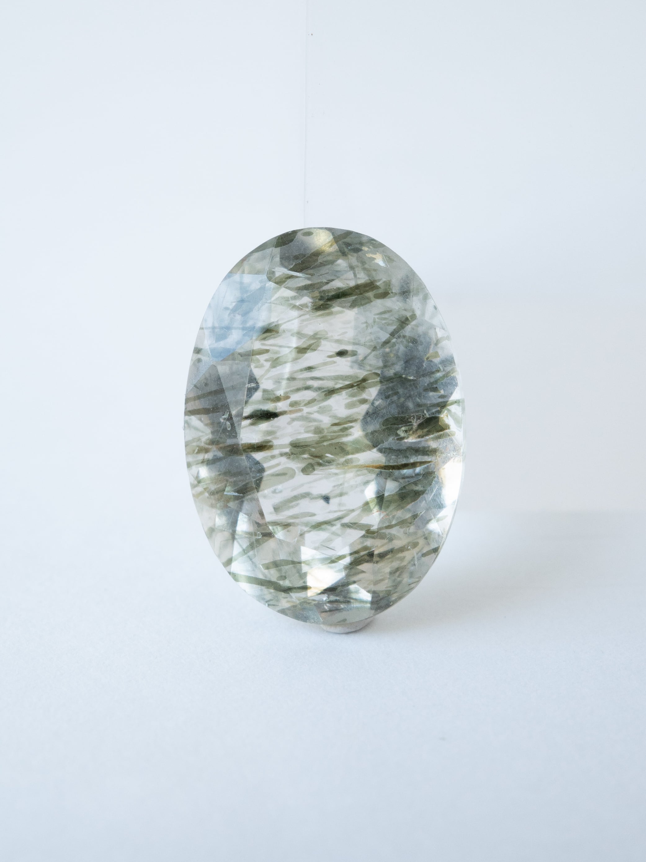 和名で緑簾石と呼ばれるエピドートを内包したエピドートインクォーツ。太い結晶が入ったものは竹のように見えたり、細い結晶が多く入ったものは、その見た目から別名『草入り水晶』とも呼ばれています。