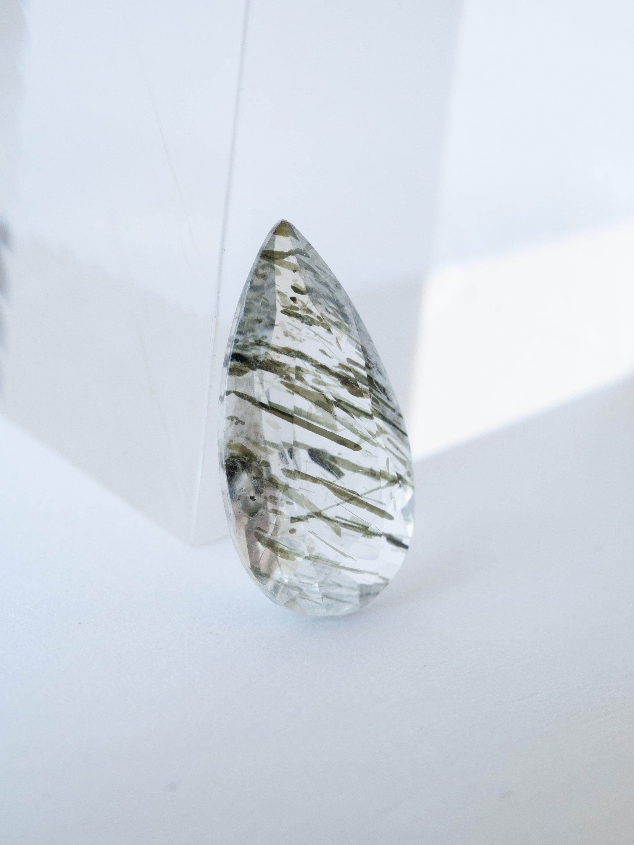 和名で緑簾石と呼ばれるエピドートを内包したエピドートインクォーツ。太い結晶が入ったものは竹のように見えたり、細い結晶が多く入ったものは、その見た目から別名『草入り水晶』とも呼ばれています。