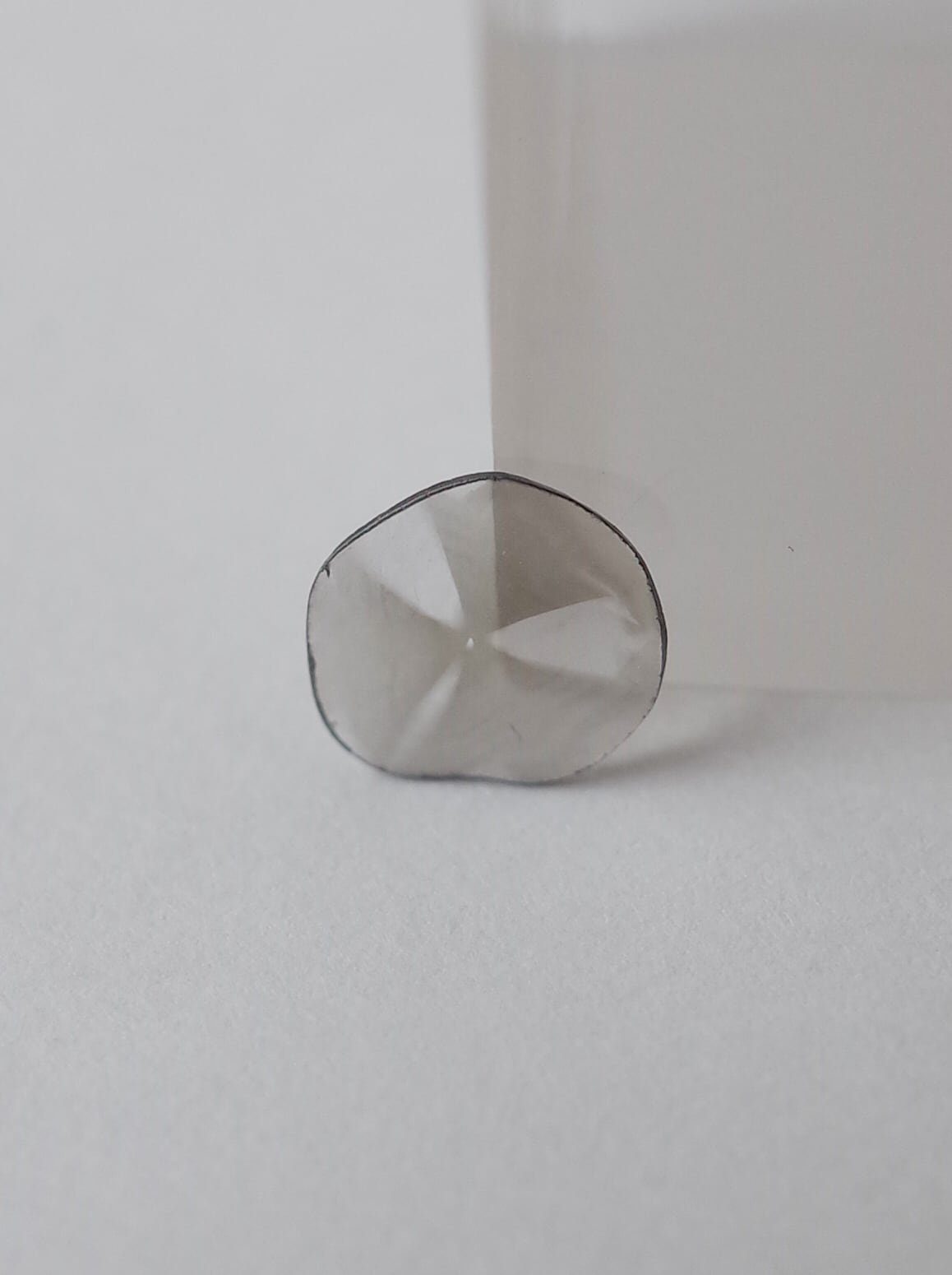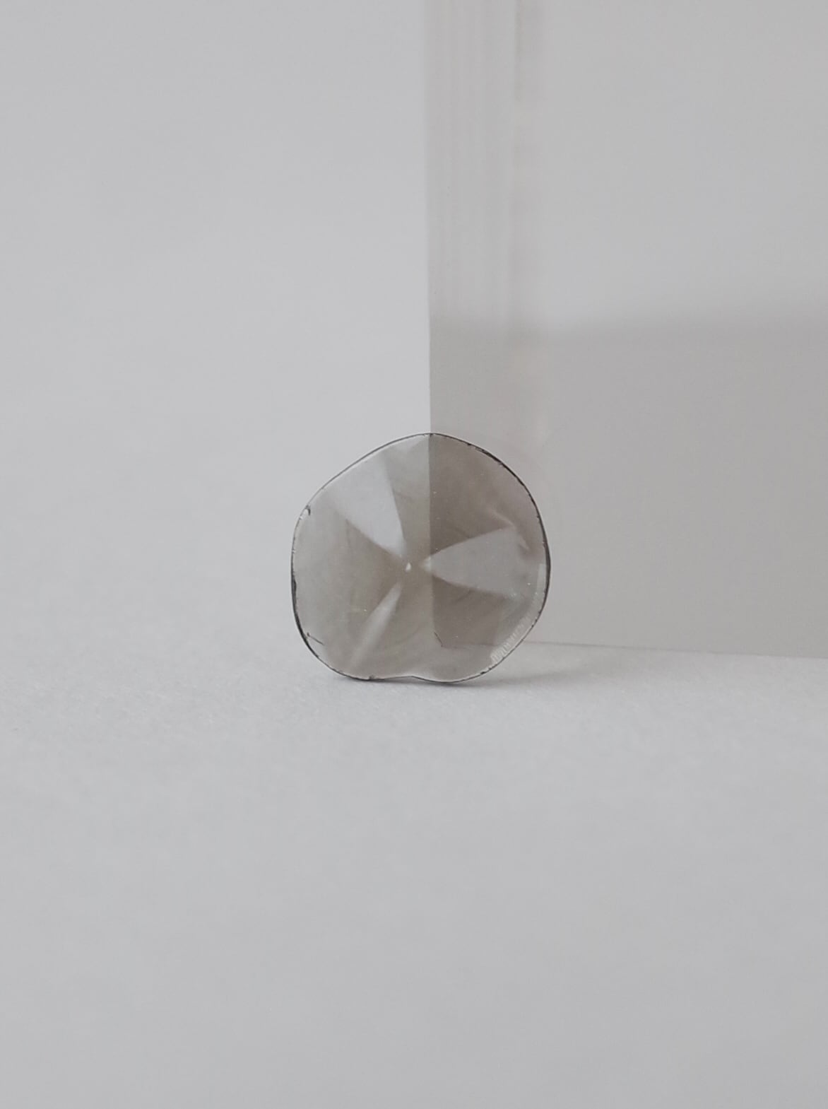 A “slice diamond” is a flat gemstone made by slicing a natural diamond into extremely thin pieces. Although it is not faceted, it retains the diamond’s distinctive brilliance and transparency, while showcasing the unique natural patterns formed within.