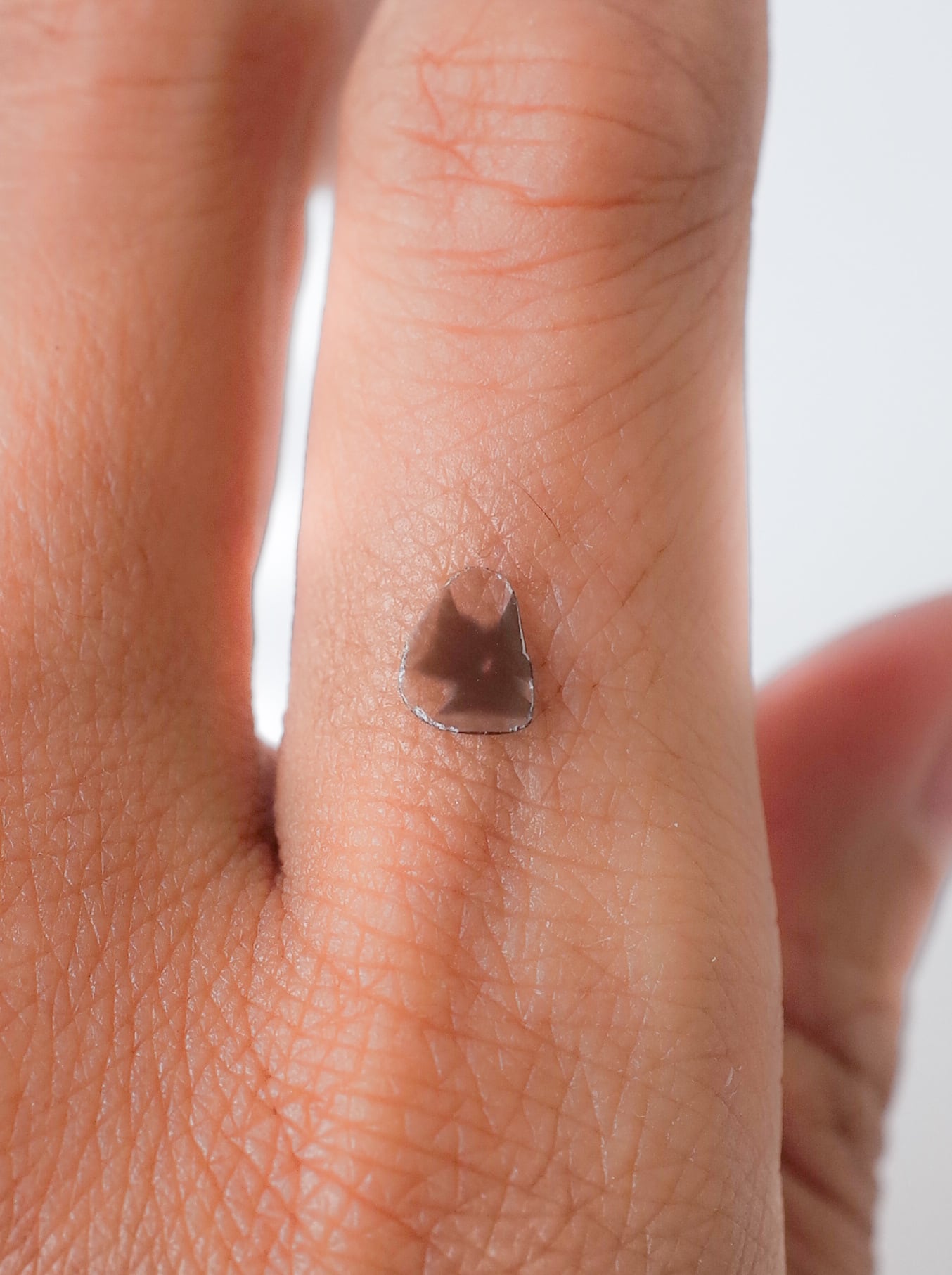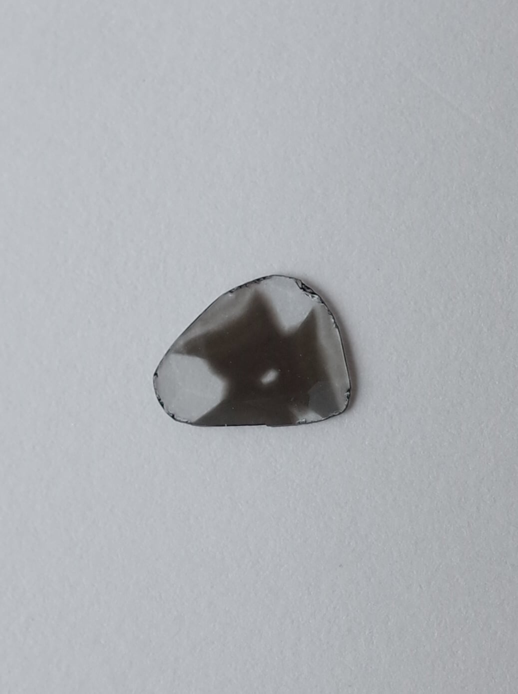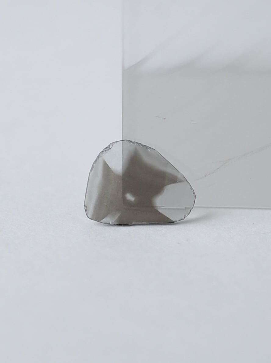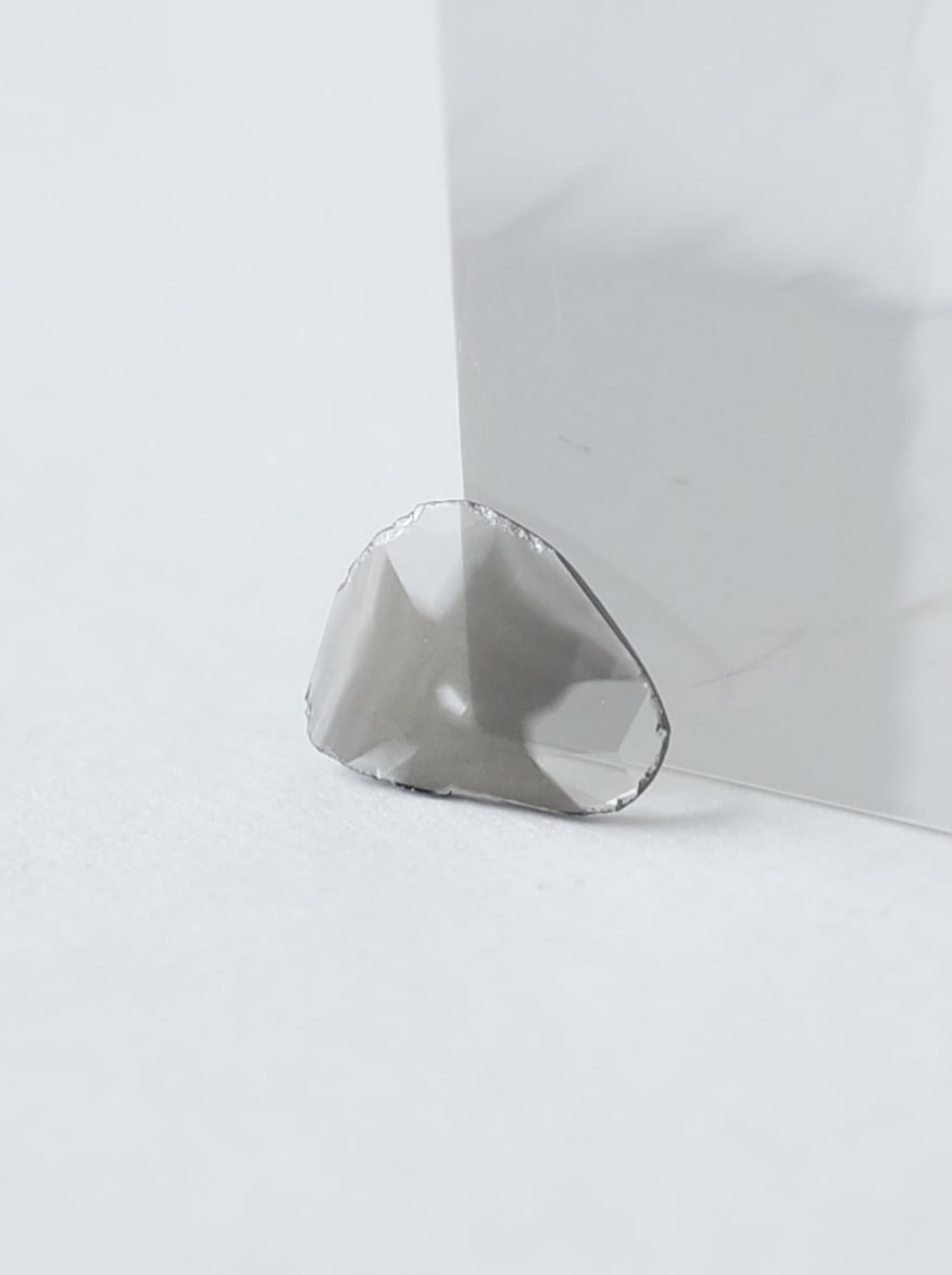 A “slice diamond” is a flat gemstone made by slicing a natural diamond into extremely thin pieces. Although it is not faceted, it retains the diamond’s distinctive brilliance and transparency, while showcasing the unique natural patterns formed within.