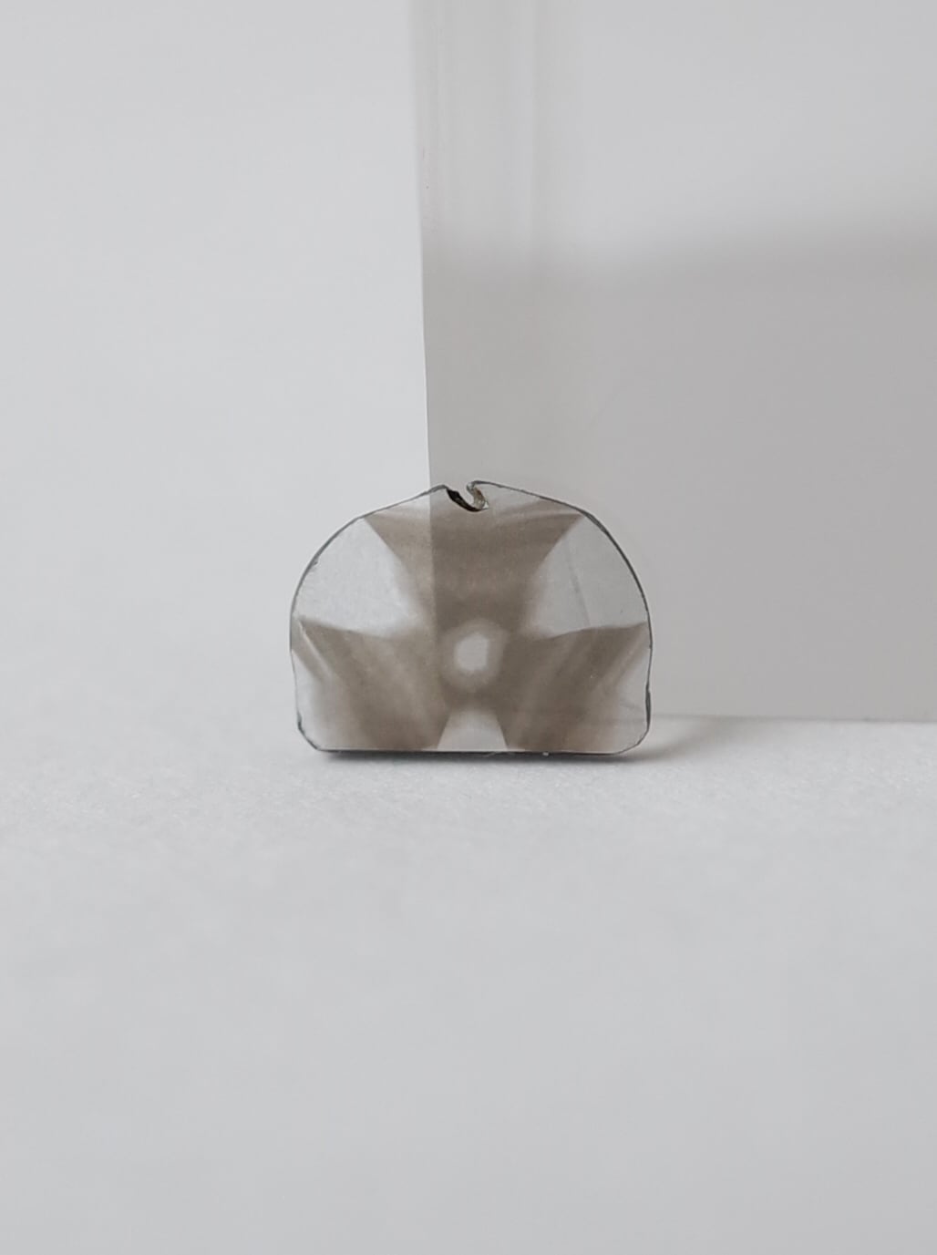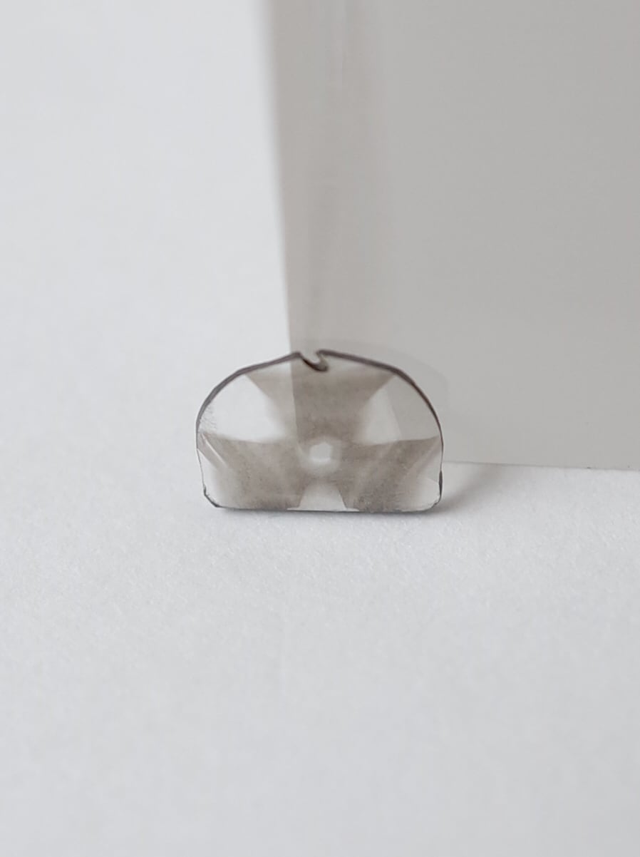 A “slice diamond” is a flat gemstone made by slicing a natural diamond into extremely thin pieces. Although it is not faceted, it retains the diamond’s distinctive brilliance and transparency, while showcasing the unique natural patterns formed within.