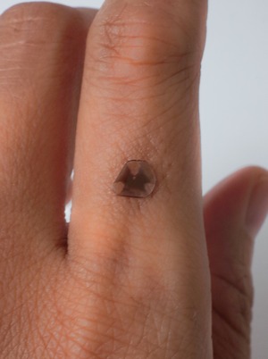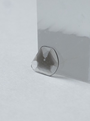 「スライスダイヤモンド」は天然ダイヤモンドを非常に薄くスライスしたフラットなルースで、ファセットカットではないものの、ダイヤモンド特有の強い光沢と透明感、そして自然に作り上げられた特徴的な模様を楽しめる宝石です。