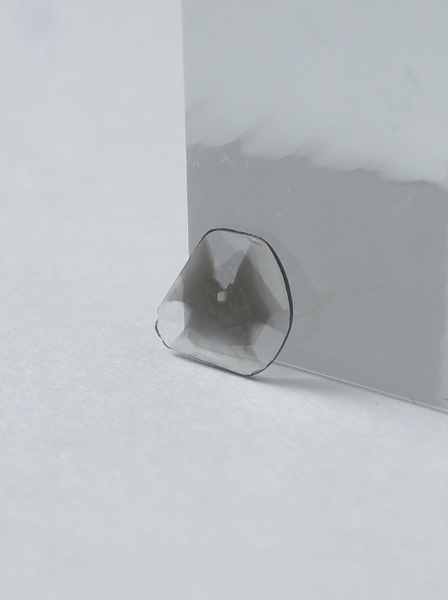 A “slice diamond” is a flat gemstone made by slicing a natural diamond into extremely thin pieces. Although it is not faceted, it retains the diamond’s distinctive brilliance and transparency, while showcasing the unique natural patterns formed within.